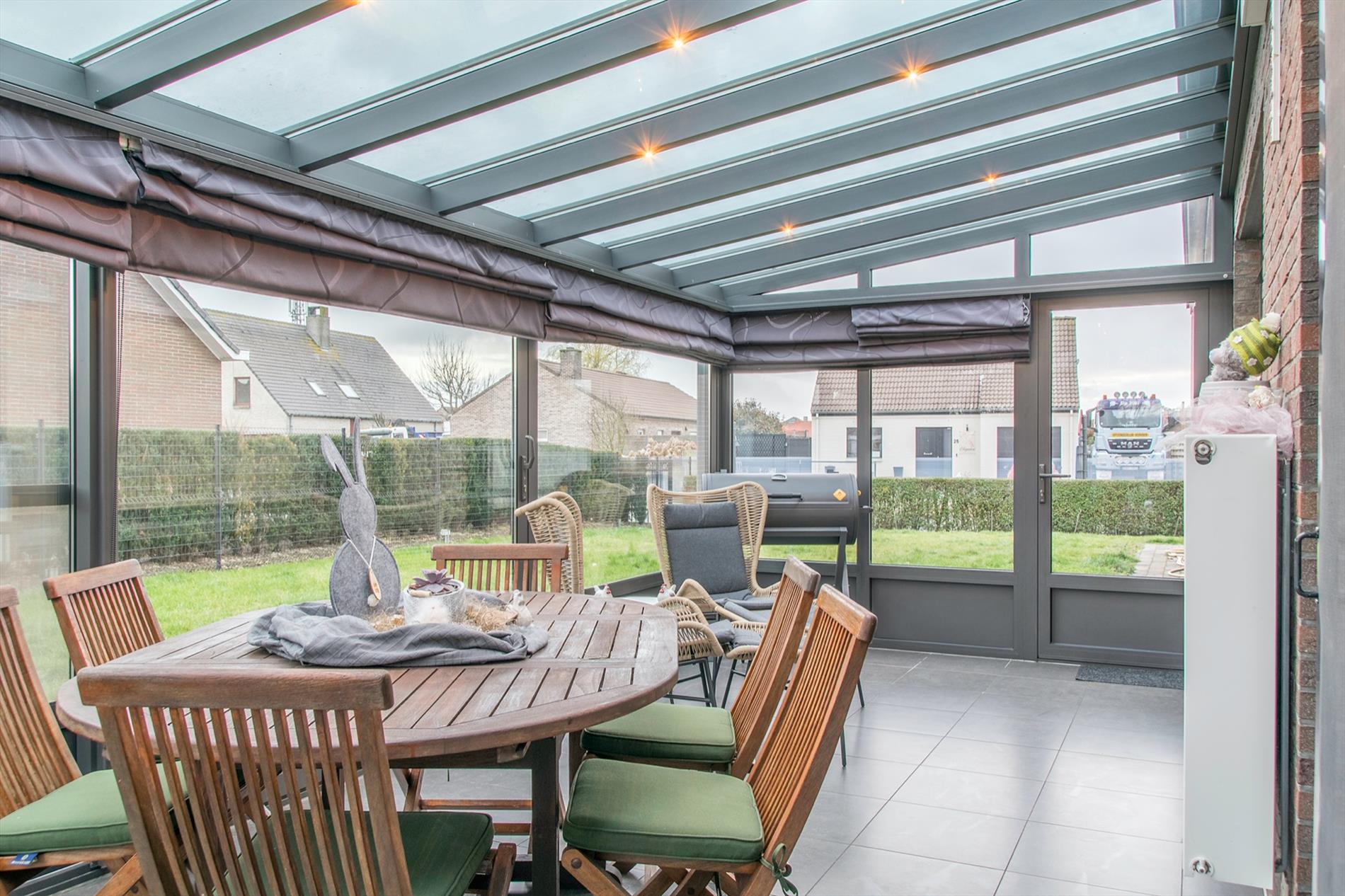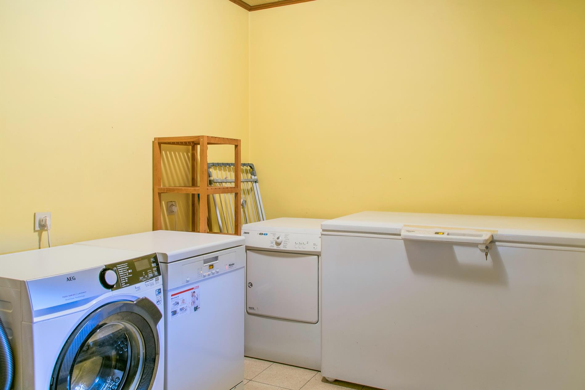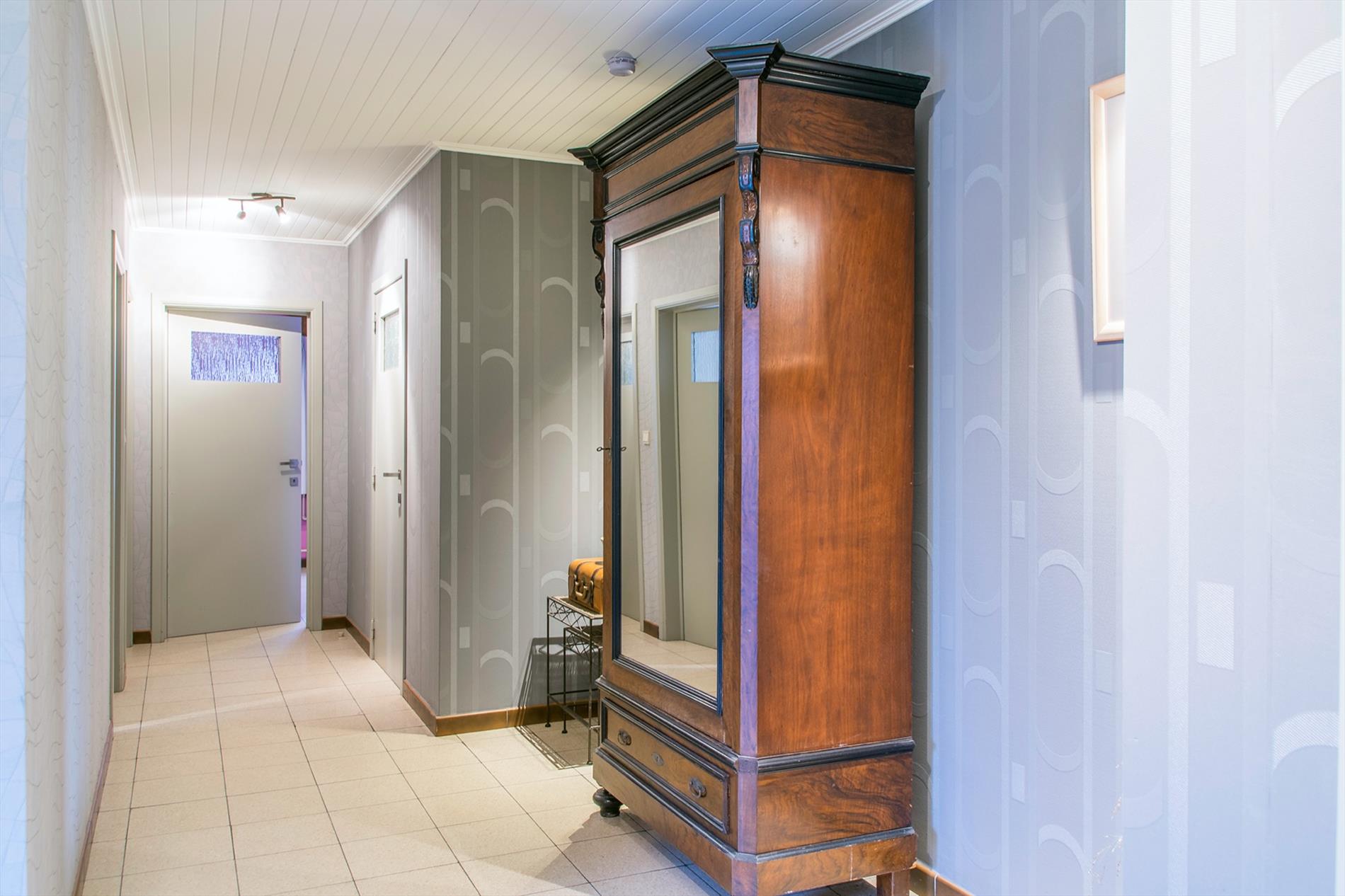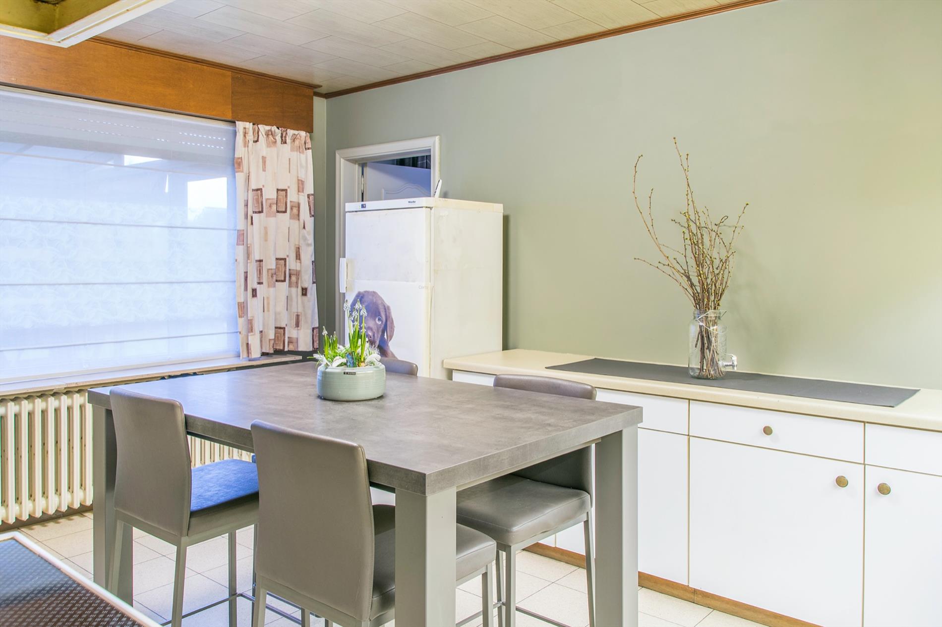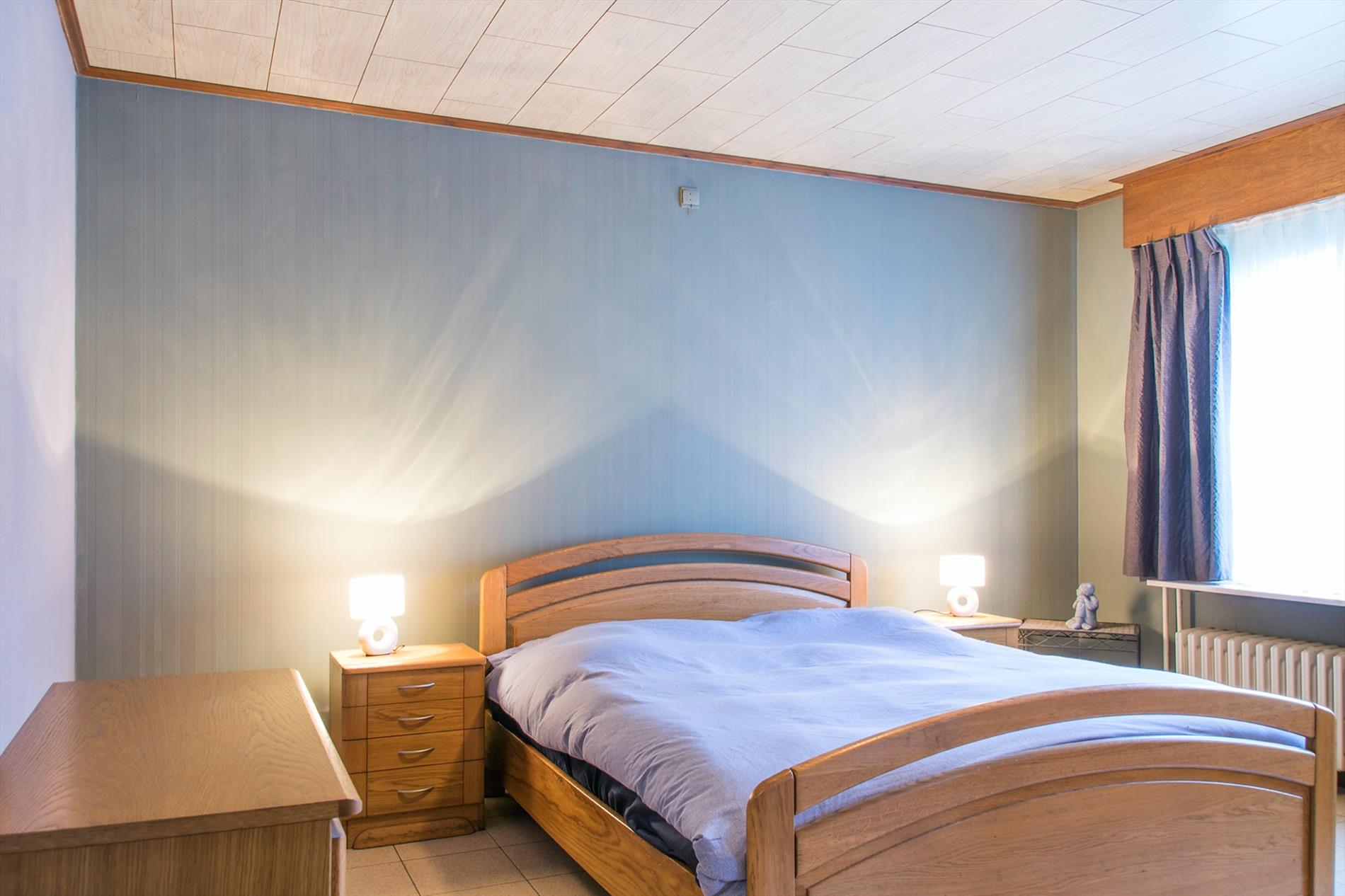 Deze perfect gelegen OB (1058 m2, met maar liefst een bew. opp van 399 m2) vormt een echte opportuniteit voor wie op zoek is naar ruimte en die naar eigen smaak de bovenverdieping verder kan inrichten. Het gelijkvloers is opgebouwd rond de centraal gelegen inkomhal, voorzien van ingemaakte kasten. Deze verwelkomt je in een open sfeer, met toegang tot bijna alle ruimtes van het gelijkvloers. Te beginnen met het gastentoilet en de leefruimte, maar uiteraard ook tot de drie ruime slaapkamers en de mooi gerenoveerde badkamer (met een tweede toilet, modern badkamermeubel en een groot ligbad mét bubbels !). De ruime woonkamer baadt in het licht door de grote raampartijen en de ingewerkte houtkachel zorgt voor nog meer gezelligheid. Aansluitend bevindt zich de ruime keuken met daarnaast een koele berging. Via een brede gang (incl. ingemaakte kasten) bereik je de wasplaats en de sfeervolle veranda waarin het op elke dag van het jaar heerlijk vertoeven is. De extra bonus bevindt zicht op de eerste verdieping : hier is een gigantische open ruimte, waar door de oerdegelijke constructie (overal betonnen gewelven, massieve dakconstructie) de weg open ligt voor al je dromen (praktijkruimte, extra kamers,2de badkamer...) Er is een trapgat voorzien dat uitkomt in de inkomhal ! Momenteel bereik je deze verdieping via een industriële metalen trap vanuit de dubbele garage (met 2 elektrische poorten). De grote, zuidgerichte tuin is volledig afgesloten. Grondwater 13M /regenput 15 000 L /rolluiken.