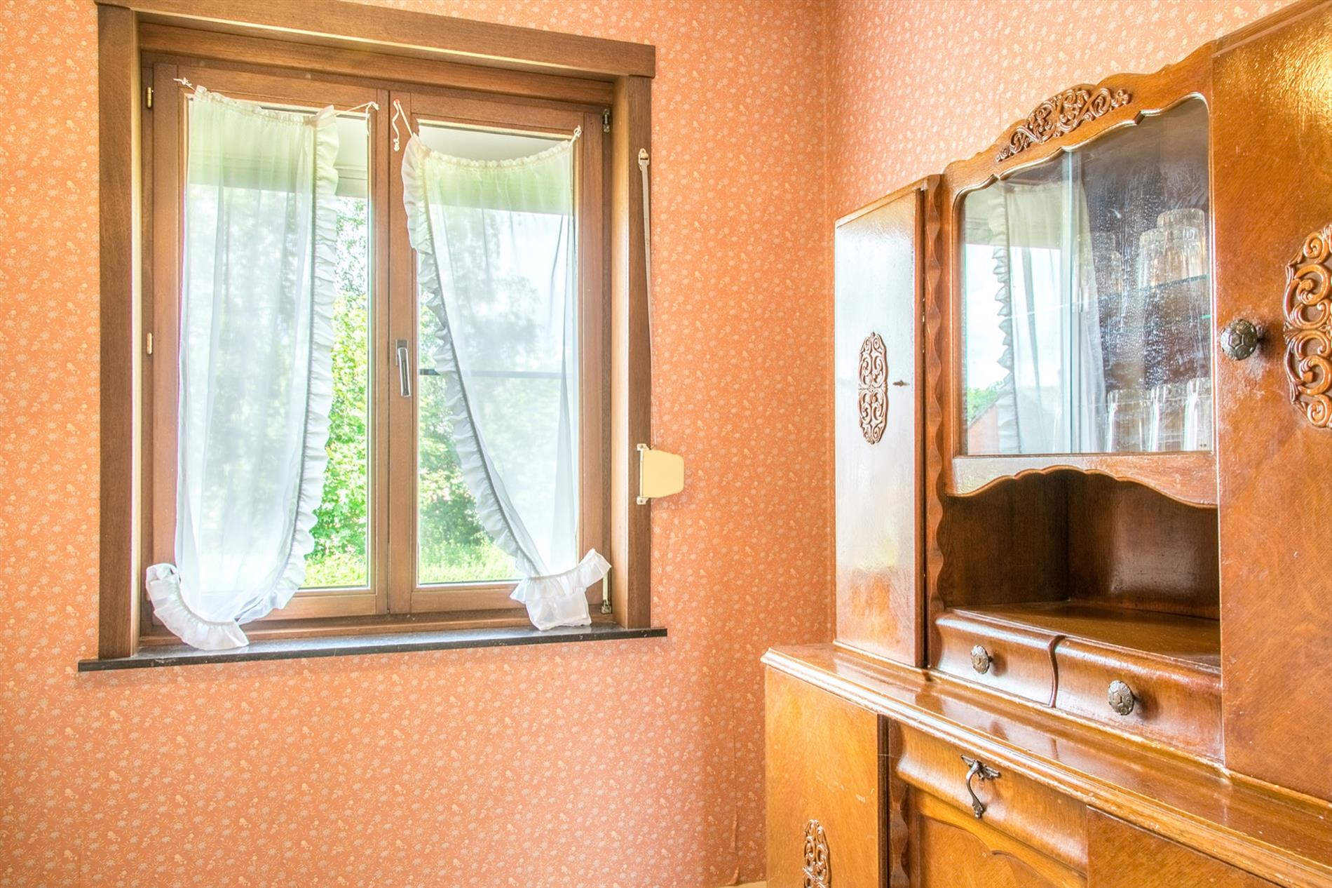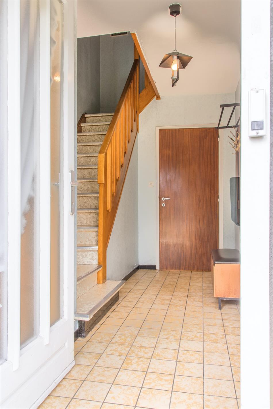 Op de benedenverdieping bevindt zich een ruime inkomhal (met gastentoilet) die je rechtstreeks naar zowel de leefruimte als de keuken brengt. Vanuit de lichtrijke living heb je direct contact met de zonovergoten, gezellige tuin. Onder de trap is er nog extra bergruimte in de mini-kelder.