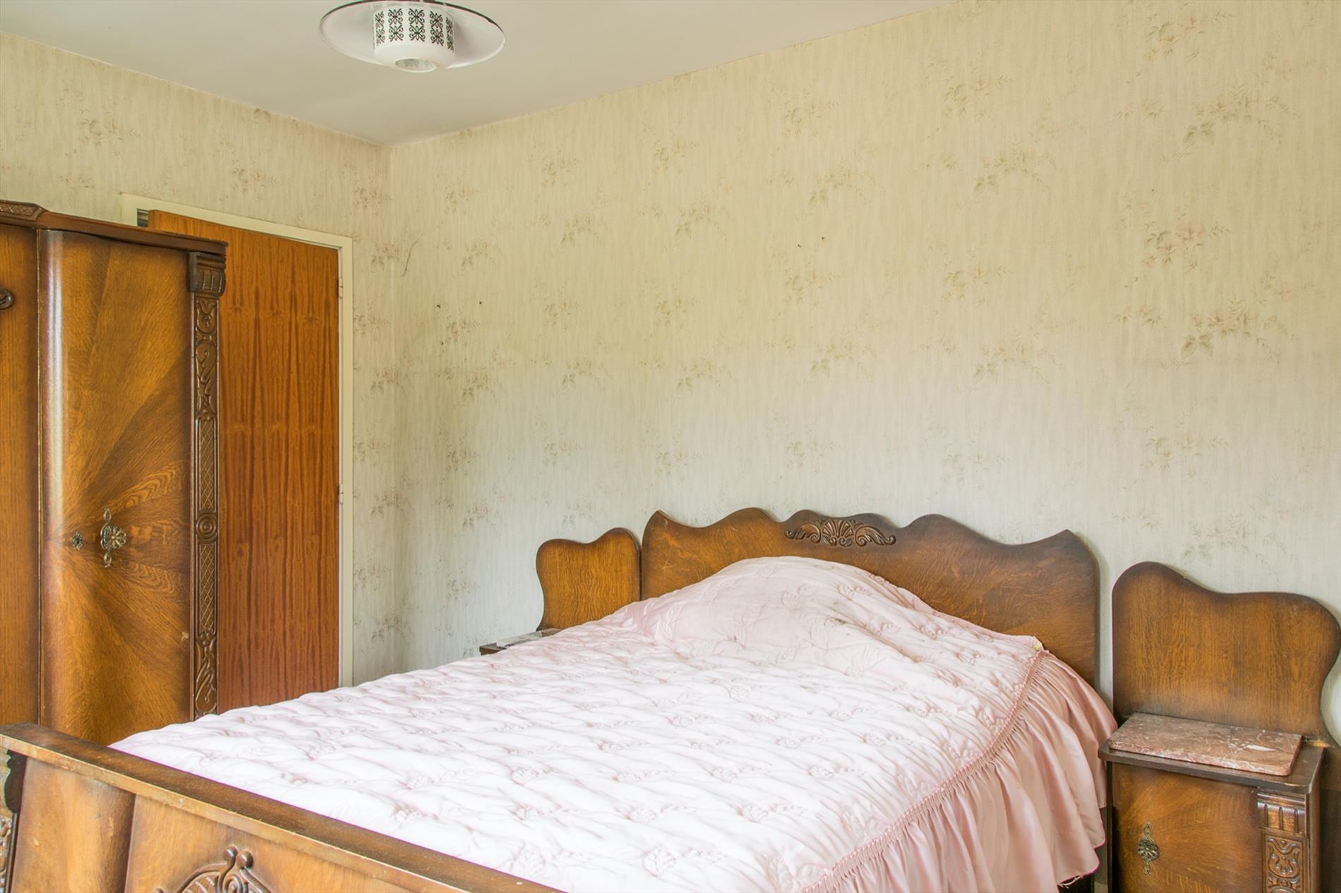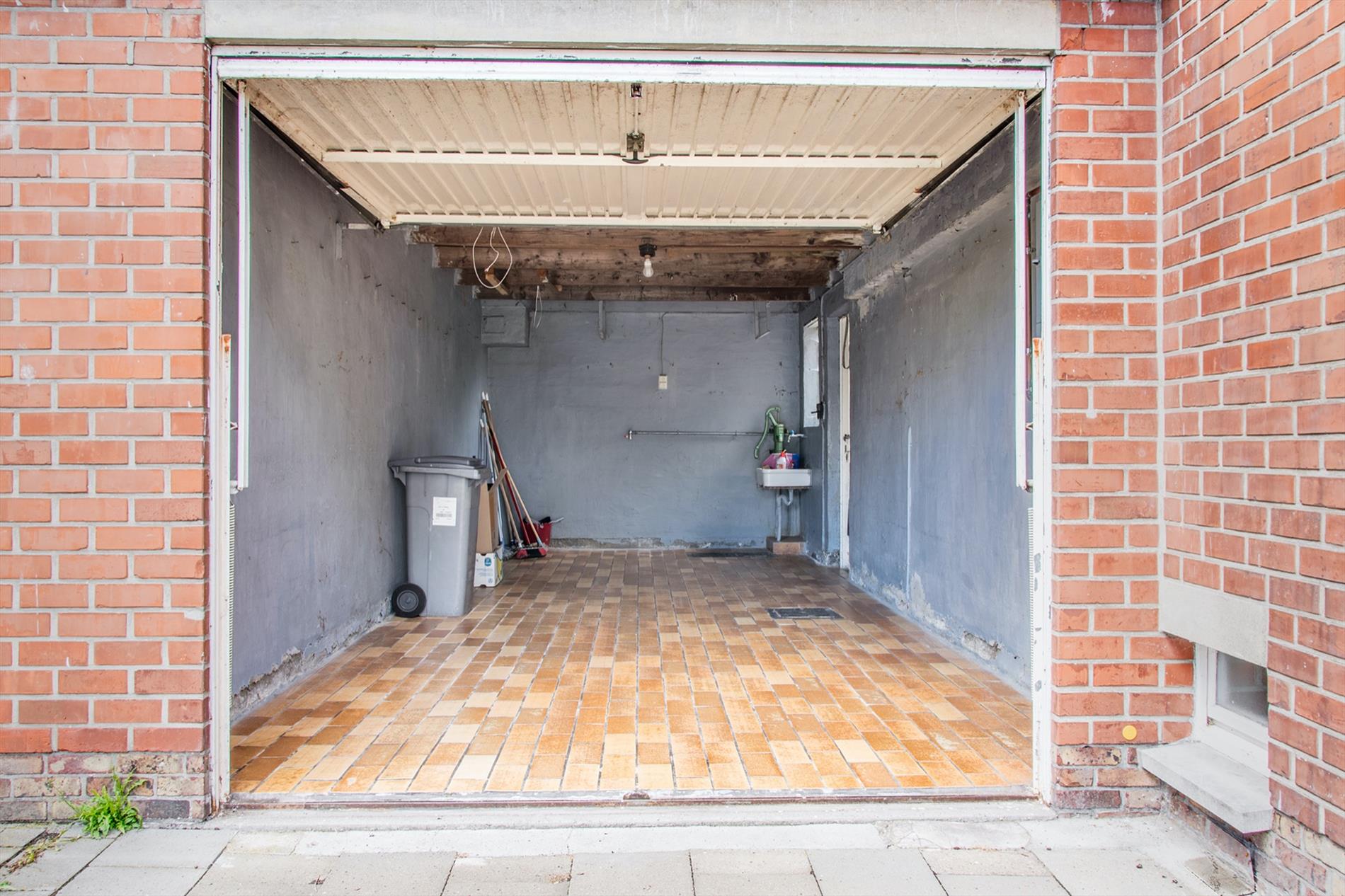 De grote garage bereik je via het overdekte terras of de oprit en biedt meer dan genoeg ruimte voor een wagen en extra opslagplaats. Op de eerste verdieping bevinden zich twee ruime en één kleinere slaapkamer, alsook de badkamer.