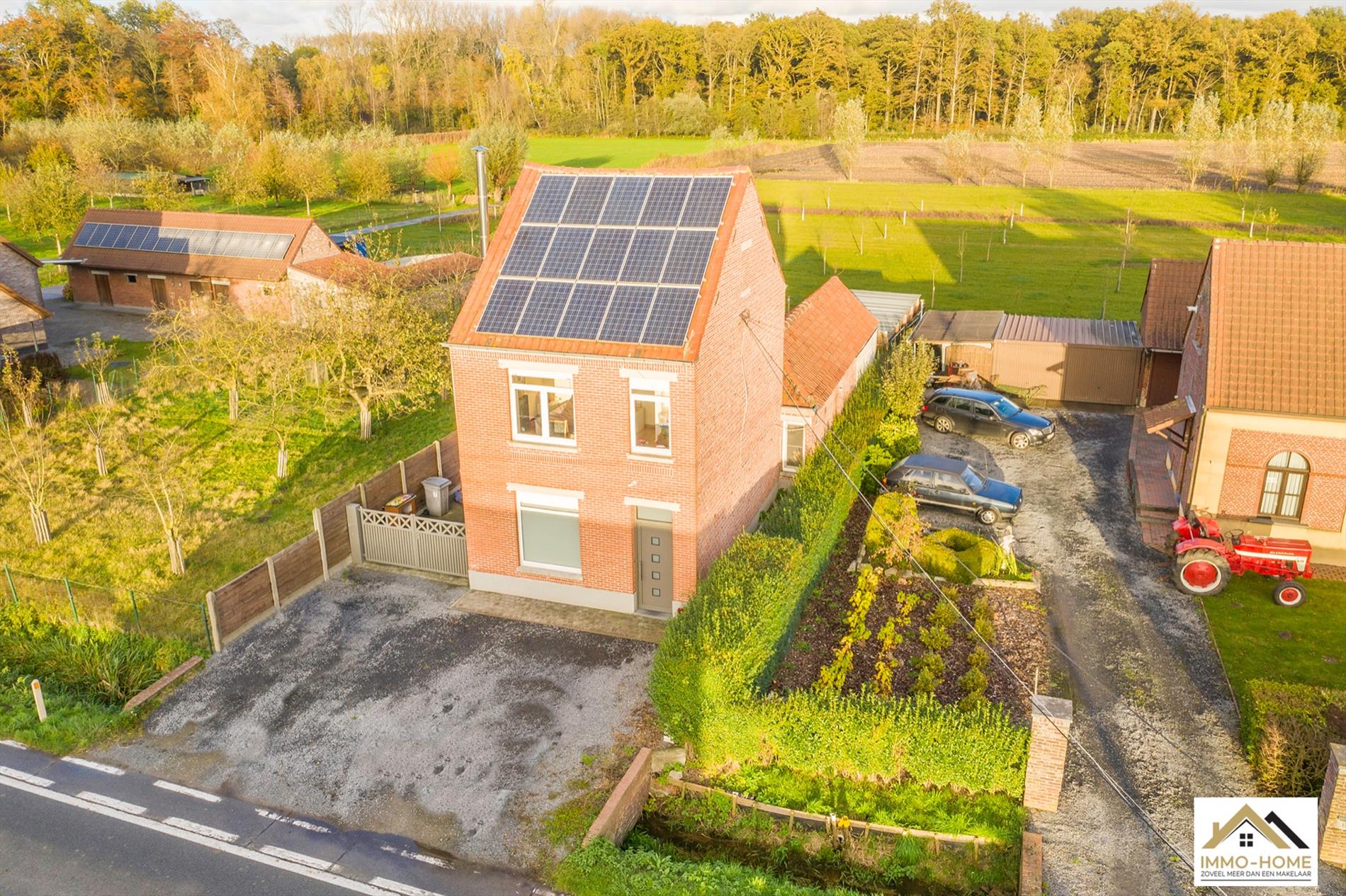 Deze volledig gerenoveerde en instapklare woning is gelegen in een prachtige landelijke omgeving. De lichte inkomhal brengt je in de centraal gelegen, smaakvol ingerichte keuken die voorzien is van alle moderne comfort. Achteraan heb je via een zeer ruime wasplaats / berging (met een afzonderlijk gastentoilet) doorgang naar de evenzeer grote badkamer met ligbad en inloopdouche, dubbel lavabomeubel én een tweede toilet. De lichtrijke leefruimte heeft met zijn vele raampartijen een heel open gevoel, en via het raam achteraan bereik je eveneens het terras (dat ook via de berging bereikbaar is). Op de eerste verdieping bevinden zich twee grote slaapkamers, en onder het dak is er een zeer ruime master bedroom. In de tuin is er nog een garage, en achteraan kan je genieten van de natuur rondom vanuit de overdekte lounge.