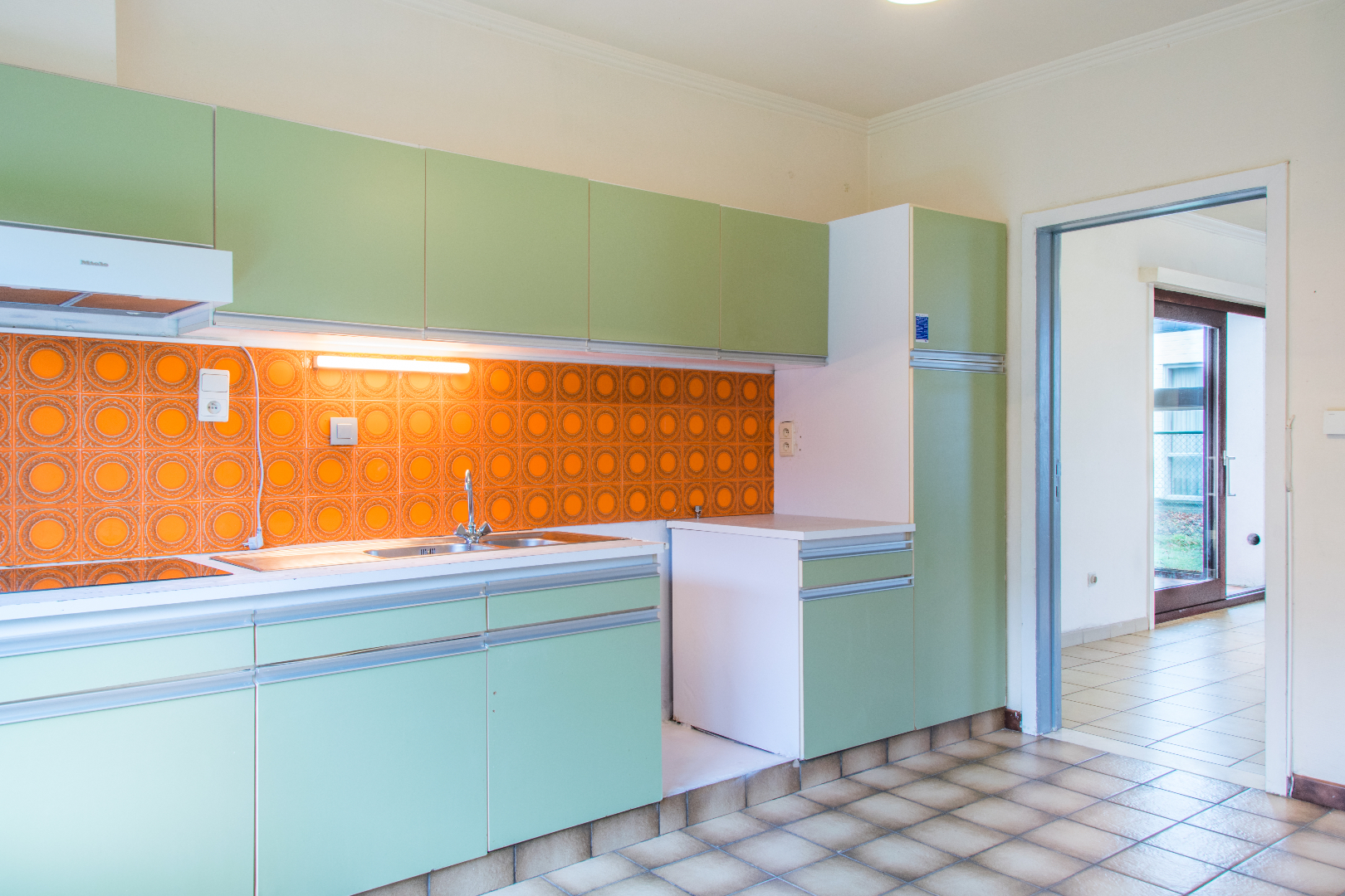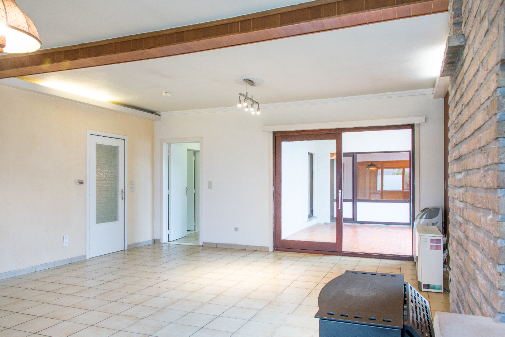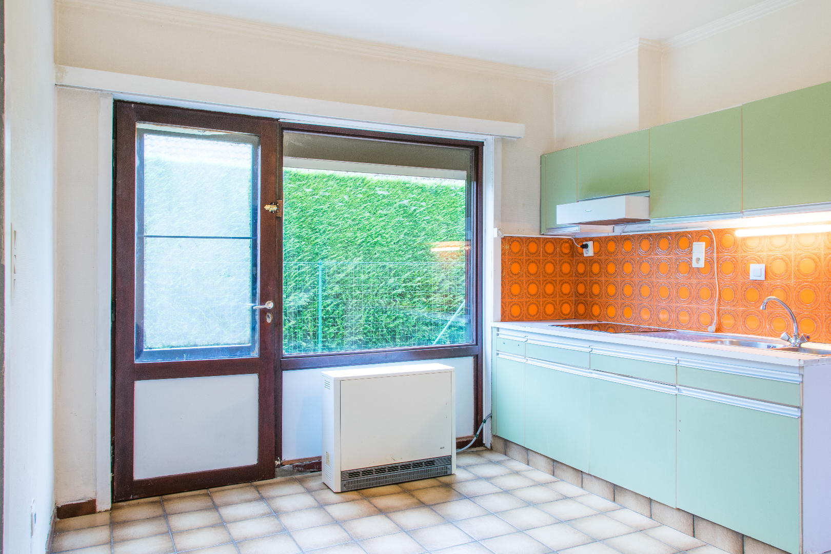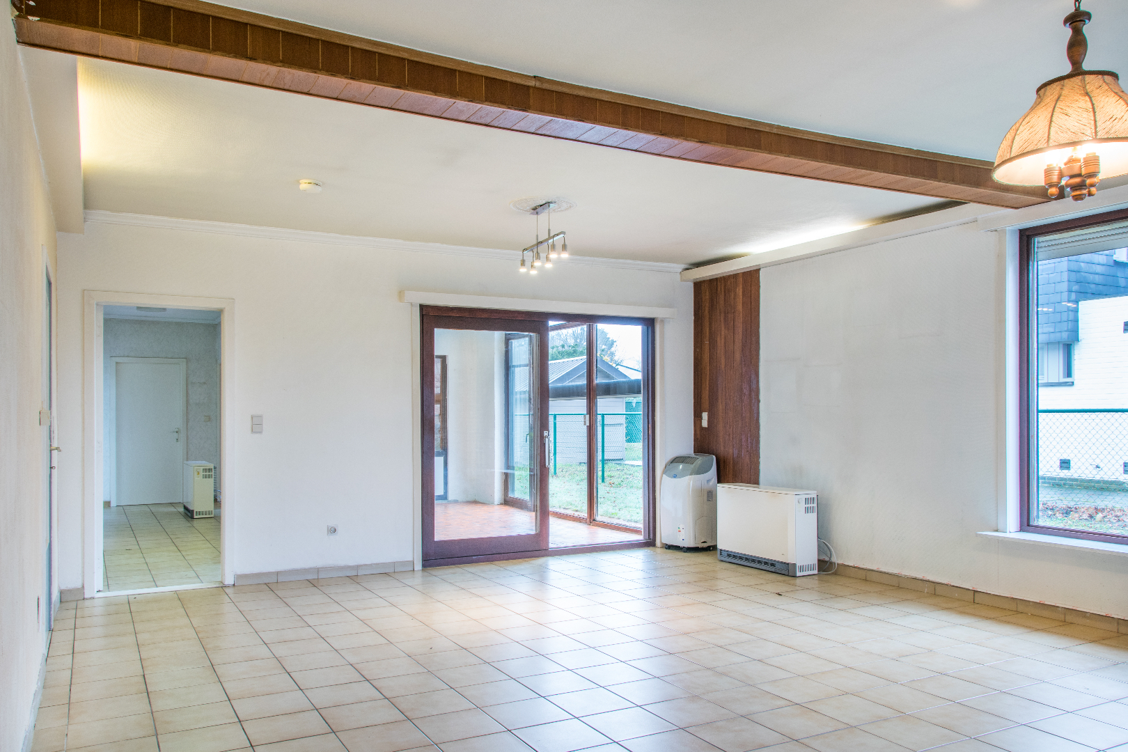 Deze op te frissen bungalow ontvangt je in een praktische inkomhal (met gastentoilet) langswaar je in de grote lichtrijke leefruimte komt. Via een groot schuifraam kom je in de winterveranda (voorzien van elektrische rolluiken en toegang tot de tuin), waardoor je eigenlijk een verlengde living hebt. Een brede gang brengt je naar de badkamer, de drie mooie slaapkamers en de berging. Naast de leefruimte bevindt zich de grote keuken, ook met toegang tot de tuin. Vooraan bevindt zich nog een volumineuze garage, met ruimte voor extra bergplaats en dergelijke, Incl kruipkelder. De woning is gelegen op een heel mooi perceel grond, vlot bereikbaar en dichtbij alle voorzieningen van Lochristi.