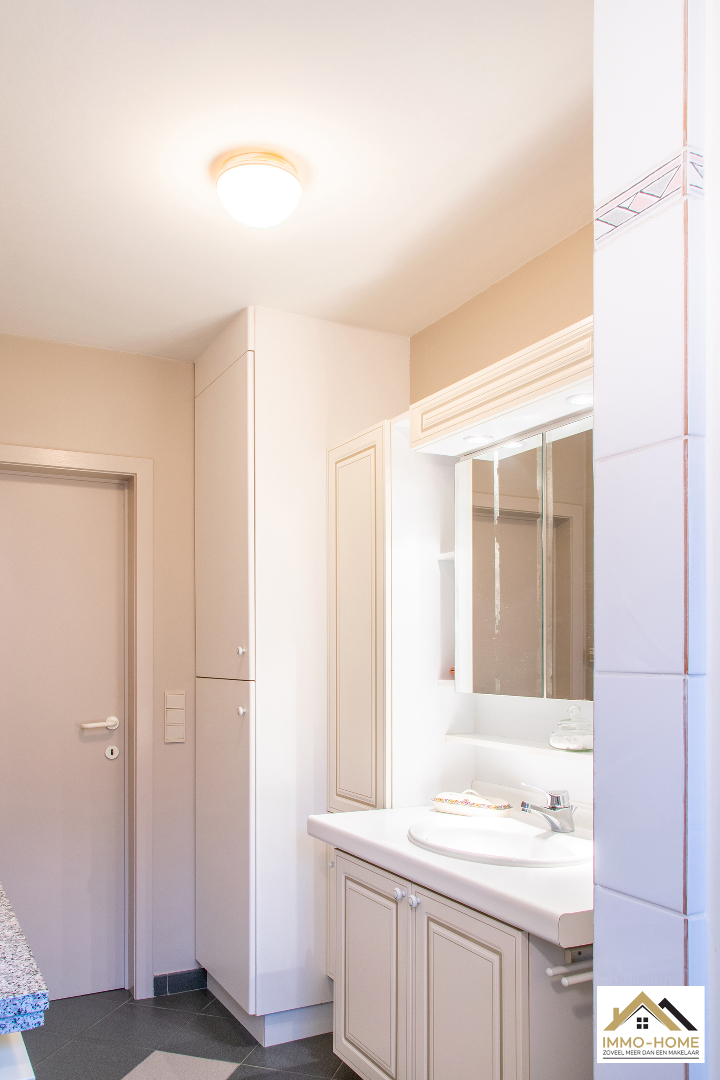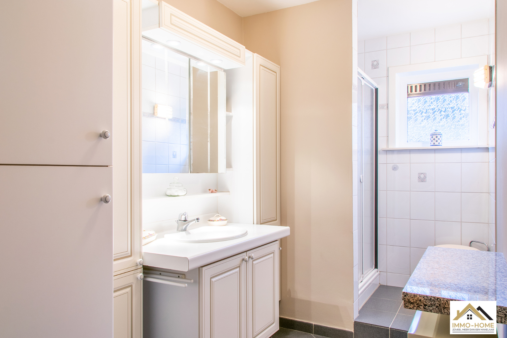 Schrijf u inDeze mooie OB is perfect onderhouden en instapklaar. De ruime inkomhal vormt het centrale punt van de woning. Aan de ene zijde bereik je het gastentoilet met daarnaast de garage, een handige berging, een slaapkamer en een badkamer. Aan de andere zijde kom je terecht in de leefruimte. De leefruimte is heel lichtrijk door de vele glaspartijen en kijkt via grote schuiframen uit op de mooie tuin en het aangename terras. Naast de leefruimte bevindt zich de keuken. De keuken heeft alle comfort en geniet van vele opbergruimtes. Tijdens het kokerellen kan je genieten van een mooi zicht op de tuin. Via een kleine gang kom je in de handige wasplaats/berging en heb je ook toegang tot de tuin. Op de eerste verdieping bevinden zich nog twee riante slaapkamers en een tweede badkamer (met een tweede toilet). Bergruimte is er ook in overvloed in de twee grote opslagkamers. De tuin is prachtig aangelegd en onderhouden en een grote troef is het zicht op het kleine bos achter de woning. Bezoekdag zaterdag 16/04: inschrijvingen via mail naar info@immo-home.be, geen telefonische inschrijvingen! Volg ons op Fb en insta. Voor meer info: www.immo-home.be