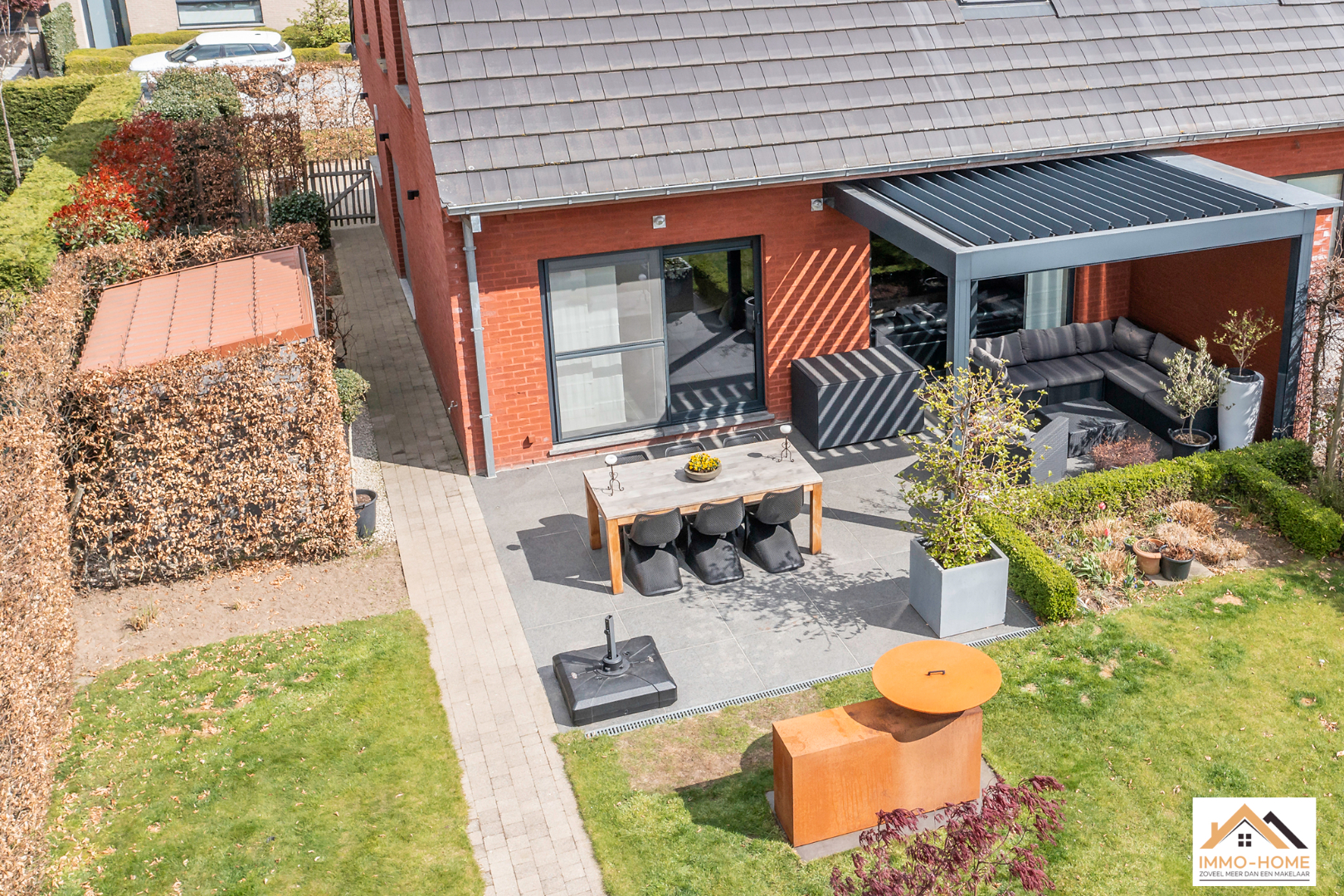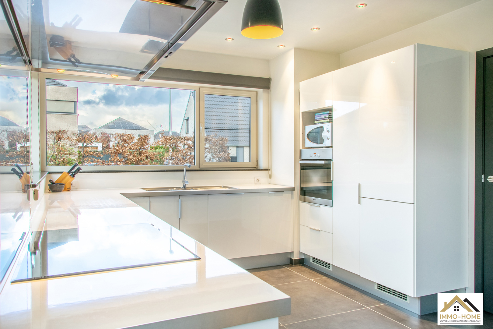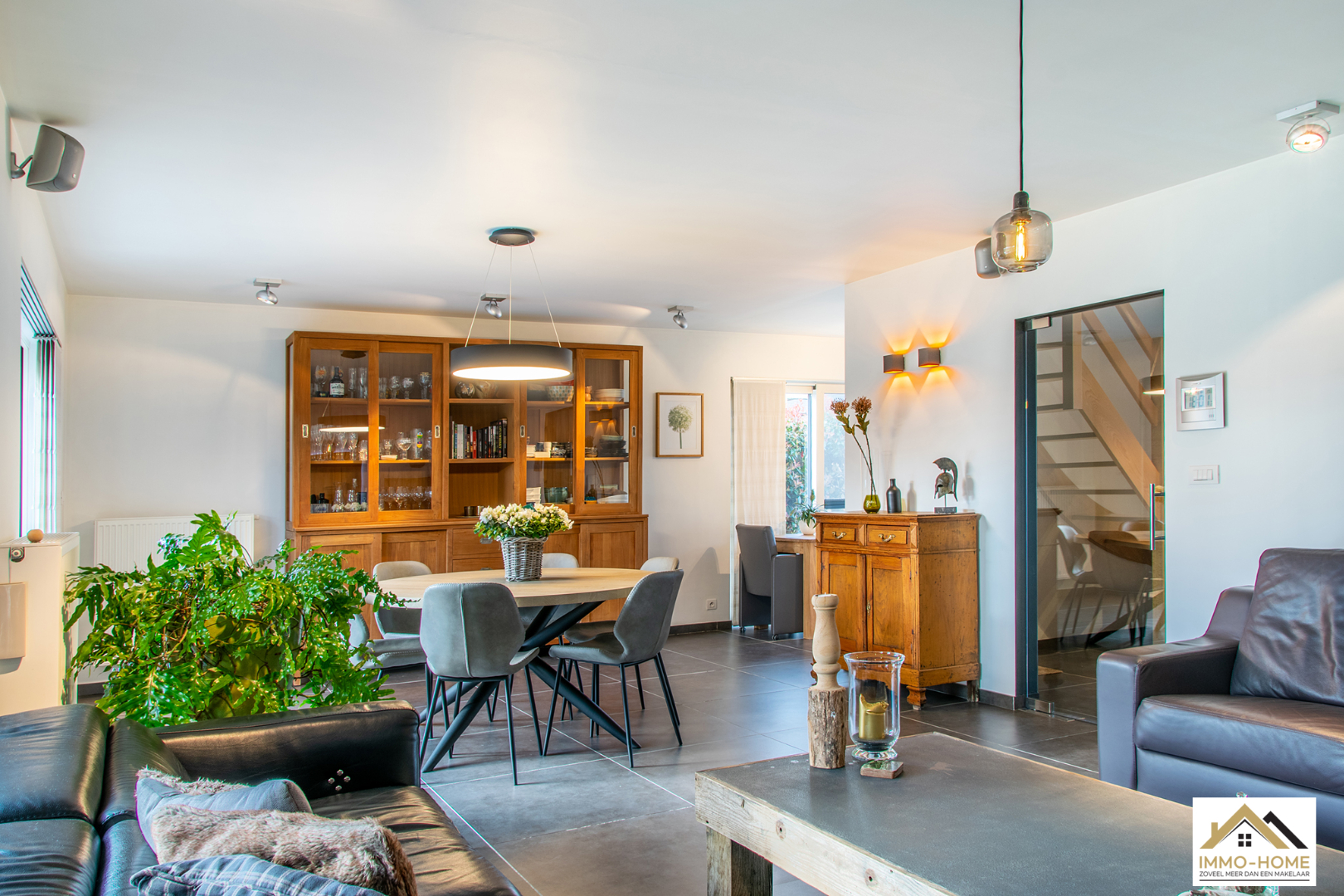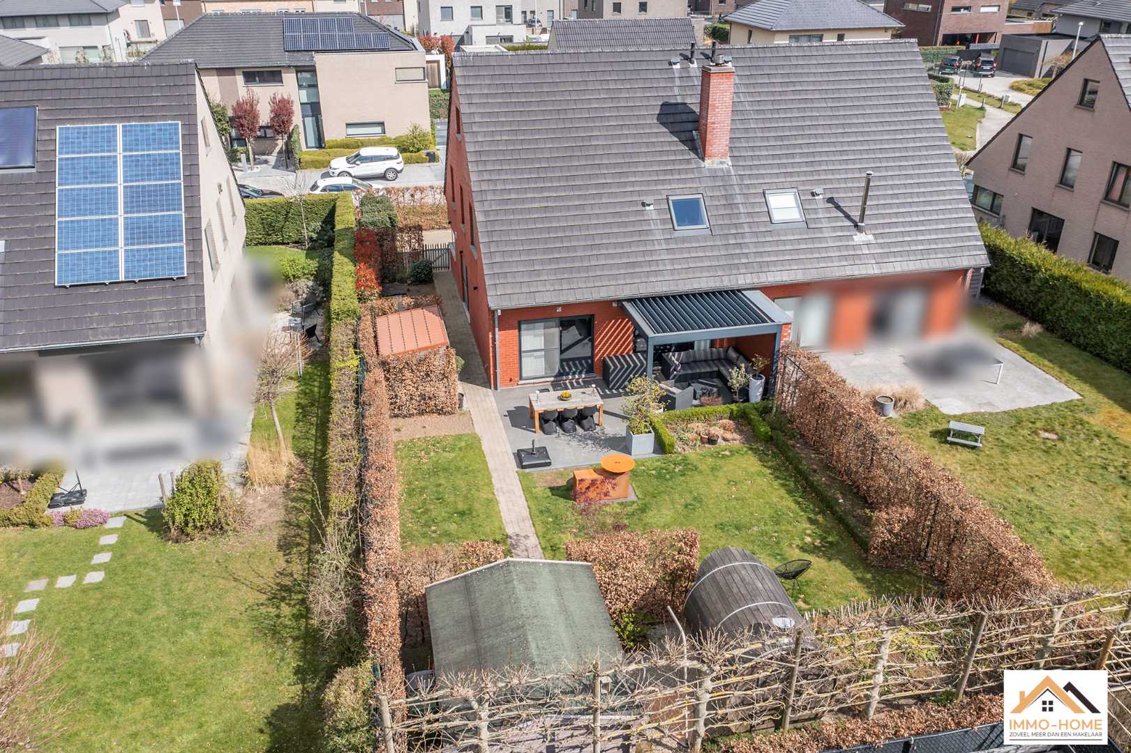 Schrijf u inDeze moderne en perfect instapklare woning heeft een zeer rustige ligging in een doodlopende straat. Toch ligt deze dichtbij het bruisende centrum van Lochristi met al zijn faciliteiten. De stijlvolle inkomhal (met gastentoilet) brengt je via een glazen deur naar de open leefruimte, waar je door grote raampartijen een prachtig uitzicht hebt op de mooie zuidwest-gerichte tuin. De open keuken is zeer strak en voorzien van alle moderne comfort. Het aangename terras bereik je via een groot schuifraam en de regelbare overdekte lounge nodigt uit tot genieten van gezellige zomeravonden buiten. Op de eerste verdieping bevinden zich 3 zeer ruime slaapkamers en een riante badkamer. Deze is voorzien van ingemaakte kasten, dubbele lavabo, ligbad en prachtige inloopdouche. Op de zolderverdieping is er bovendien nog ruimte voor extra kamers (nutsleidingen zijn reeds aanwezig). In de woning is er een centraal stofzuigsysteem en ook is er een filter voor het regenwater aanwezig. In de tuin beschik je over een handige tuinberging (sauna is niet inbegrepen) en de inpandige garage met automatische poort biedt ook extra opbergruimte. Bezoekdag: 16/04, enkel mits inschrijving via mail naar info@immo-home.be met vermelding van naam en gsmnr. GEEN tel inschrijvingen. Meer info: www.immo-home.be , volg ons op FB en insta.