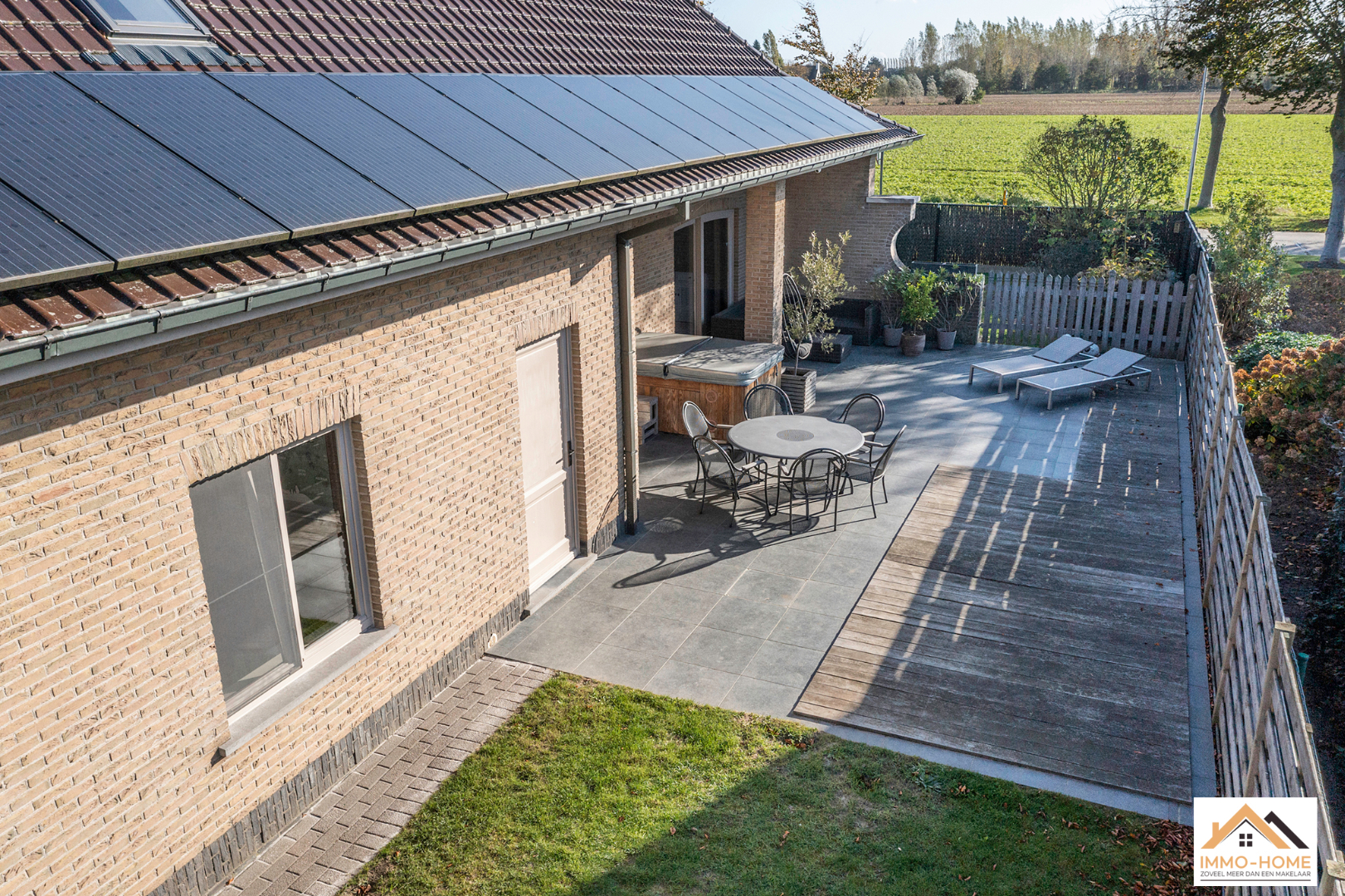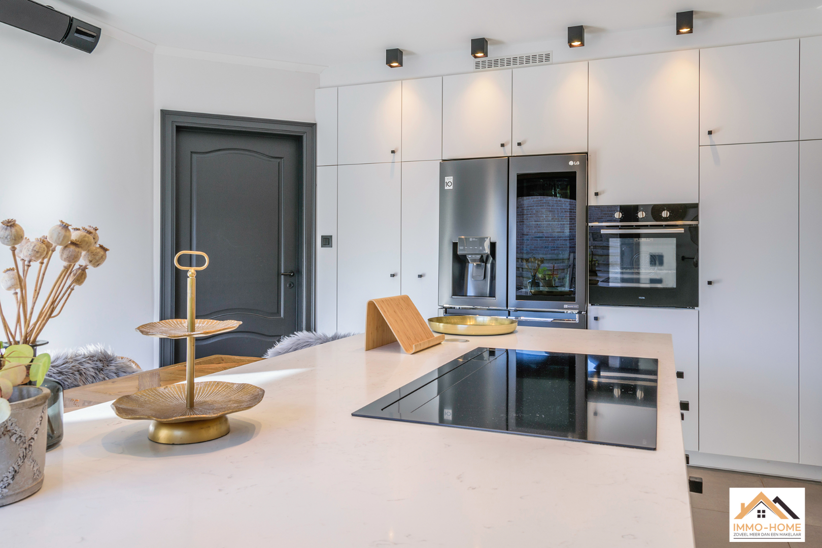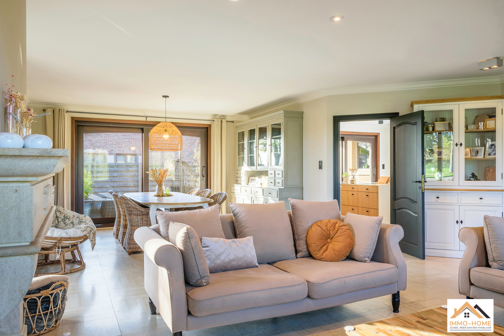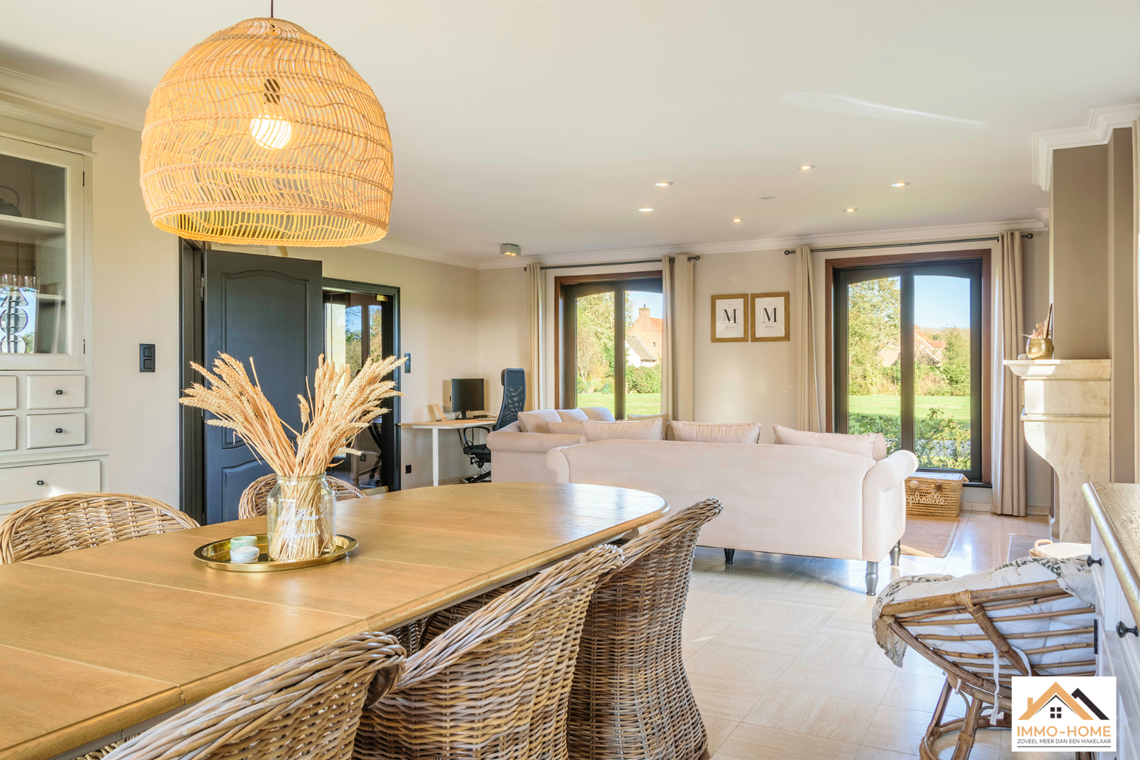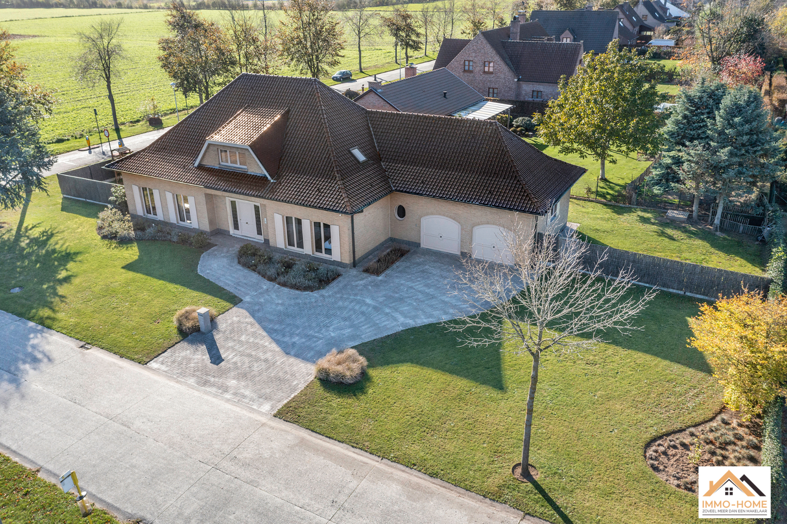Schrijf u inDeze riante villa is gelegen in een rustige buitenwijk van Lochristi, met uitzicht over de velden in de omgeving. De ruime inkomhal met gastentoilet en ingemaakte vestiaire vormt het centrale punt van de woning. Via een statige glazen deur kom je in de lichtrijke leefruimte, waar een prachtige rustieke schoorsteenmantel meteen alle aandacht trekt. De tuin en het terras is door de vele raampartijen altijd dichtbij. Dat is ook de aanpalende keuken, die voorzien is van hypermodern comfort in en rond het centrale kookeiland. Ook hier kijk je uit op het terras, en via een eerste berging/wasplaats kom je eveneens in de tuin. Aan de andere zijde van de inkomhal beschik je over twee mooie slaapkamers en een badkamer met ligbad en inloopdouche. Op de eerste verdieping zijn er rond de gigantische overloop drie grote slaapkamers. In een tussengang is er een tweede toilet en mogelijkheid om een tweede badkamer te creëren (leidingen zijn reeds aanwezig). Daarachter beschik je nog over een polyvalente ruimte en aansluitende dressing. Auto's kan je kwijt in de dubbele garage, waar nog veel bijkomende opslagruimte voorhanden is. Naast het terras ligt een zwemvijver verborgen onder de vlonders, en je voorziet in je eigen energie met 22 zonnepanelen. Inschrijvingen via mail naar tommy@immo-home.be, geen telefonische inschrijvingen! Volg ons op Fb en insta. Voor meer info: www.immo-home.be