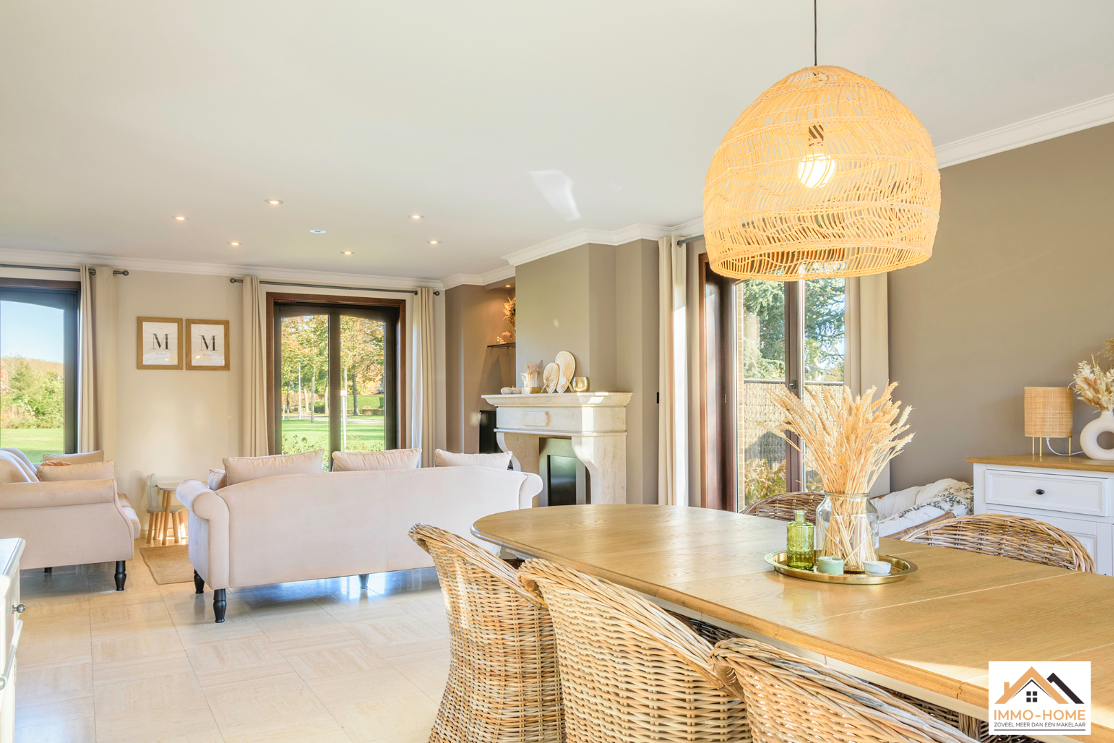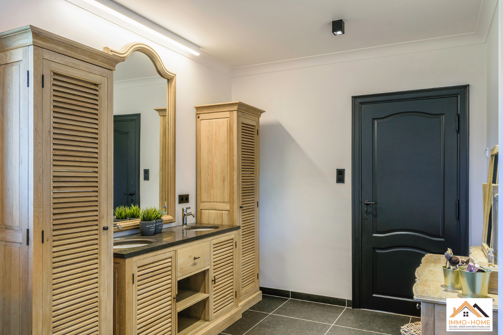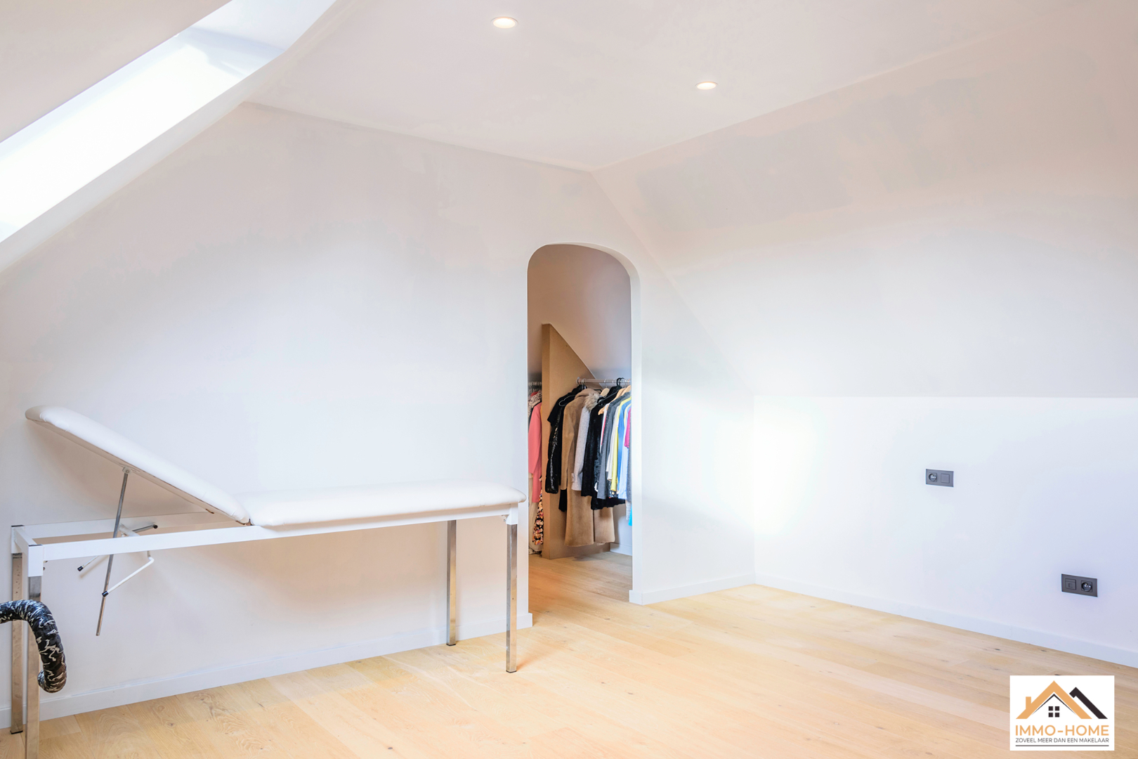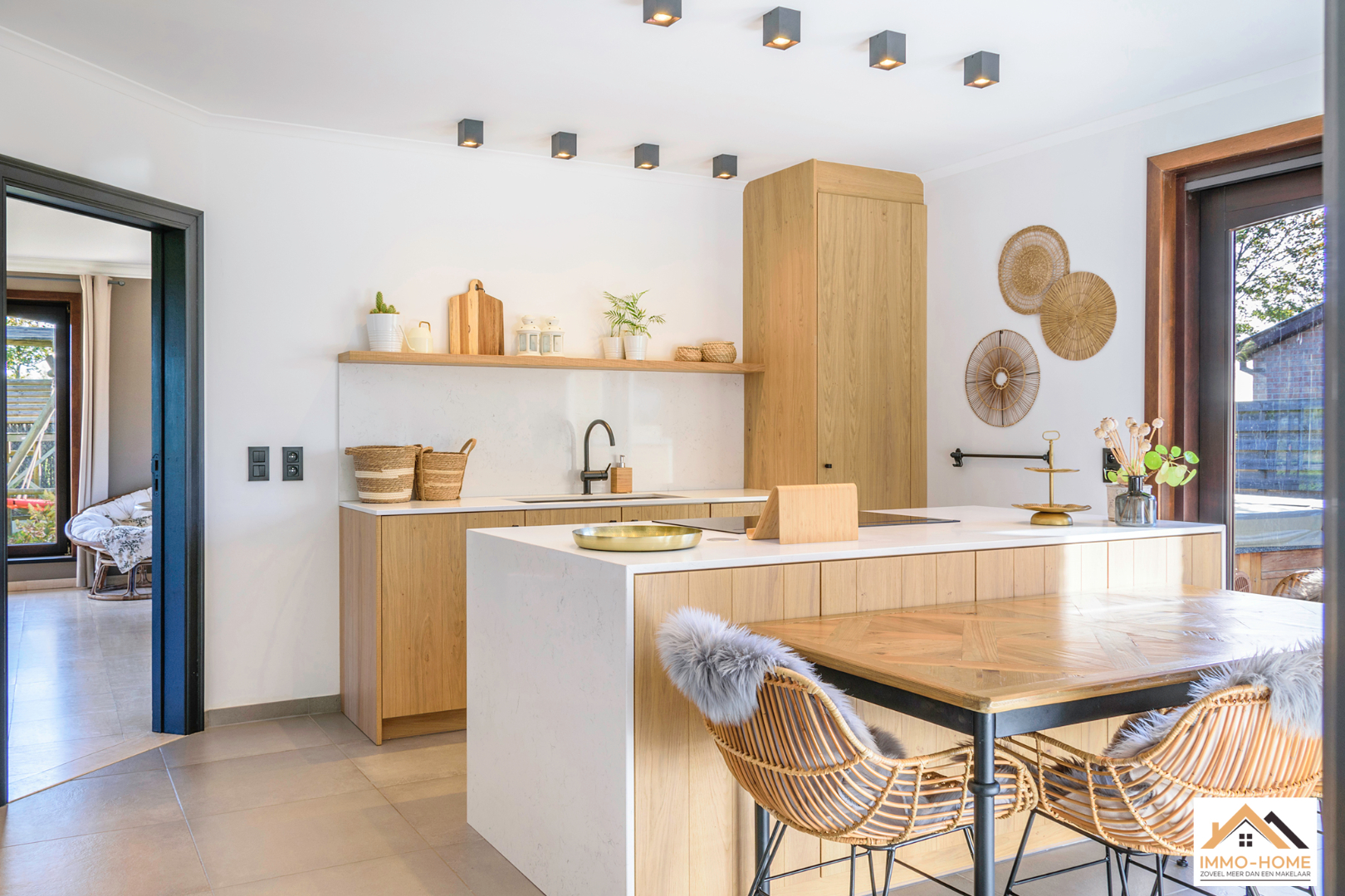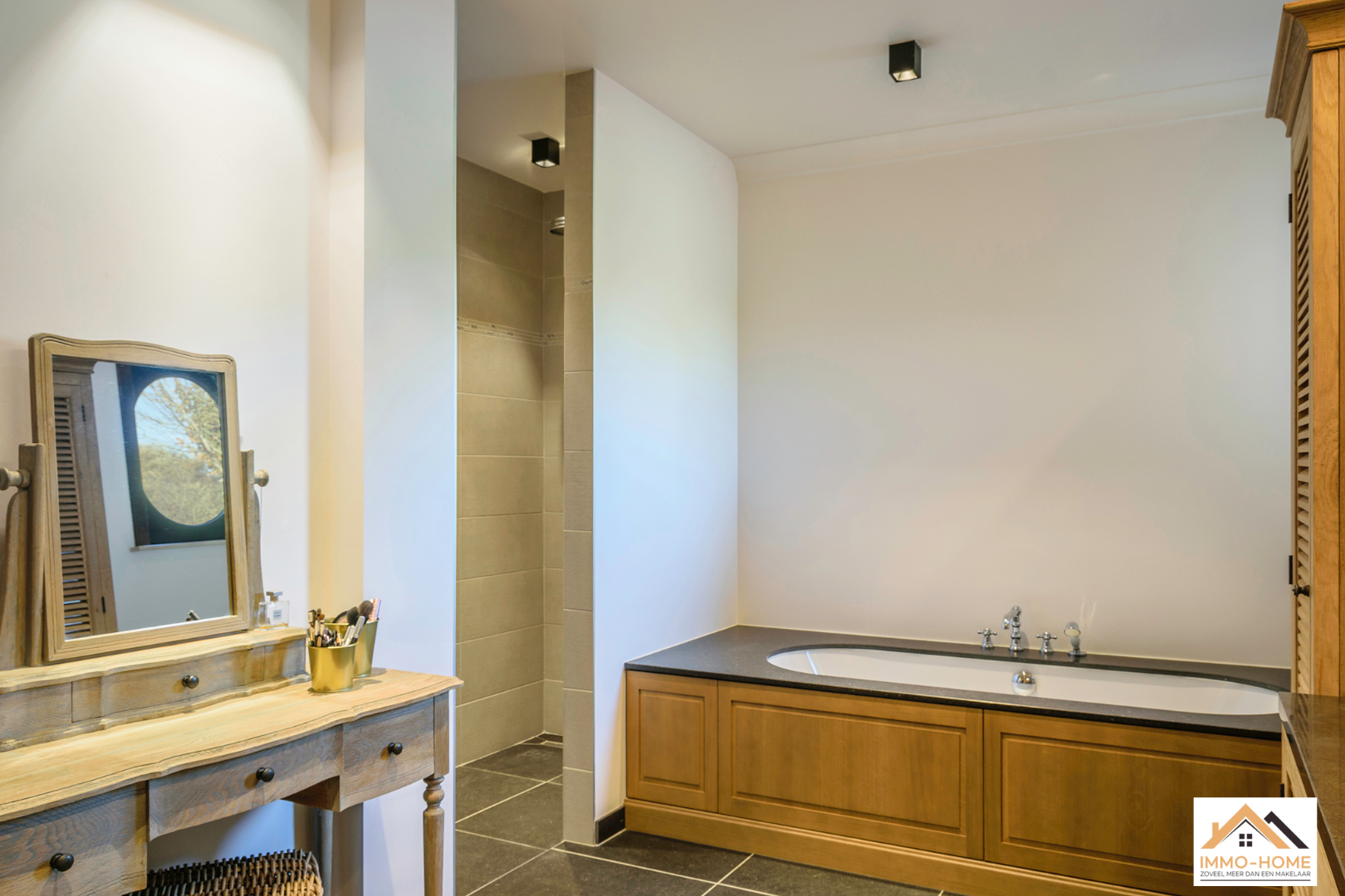 Schrijf u inDeze riante villa is gelegen in een rustige buitenwijk van Lochristi, met uitzicht over de velden in de omgeving. De ruime inkomhal met gastentoilet en ingemaakte vestiaire vormt het centrale punt van de woning. Via een statige glazen deur kom je in de lichtrijke leefruimte, waar een prachtige rustieke schoorsteenmantel meteen alle aandacht trekt. De tuin en het terras is door de vele raampartijen altijd dichtbij. Dat is ook de aanpalende keuken, die voorzien is van hypermodern comfort in en rond het centrale kookeiland. Ook hier kijk je uit op het terras, en via een eerste berging/wasplaats kom je eveneens in de tuin. Aan de andere zijde van de inkomhal beschik je over twee mooie slaapkamers en een badkamer met ligbad en inloopdouche. Op de eerste verdieping zijn er rond de gigantische overloop drie grote slaapkamers. In een tussengang is er een tweede toilet en mogelijkheid om een tweede badkamer te creëren (leidingen zijn reeds aanwezig). Daarachter beschik je nog over een polyvalente ruimte en aansluitende dressing. Auto's kan je kwijt in de dubbele garage, waar nog veel bijkomende opslagruimte voorhanden is. Naast het terras ligt een zwemvijver verborgen onder de vlonders, en je voorziet in je eigen energie met 22 zonnepanelen. Inschrijvingen via mail naar tommy@immo-home.be, geen telefonische inschrijvingen! Volg ons op Fb en insta. Voor meer info: www.immo-home.be