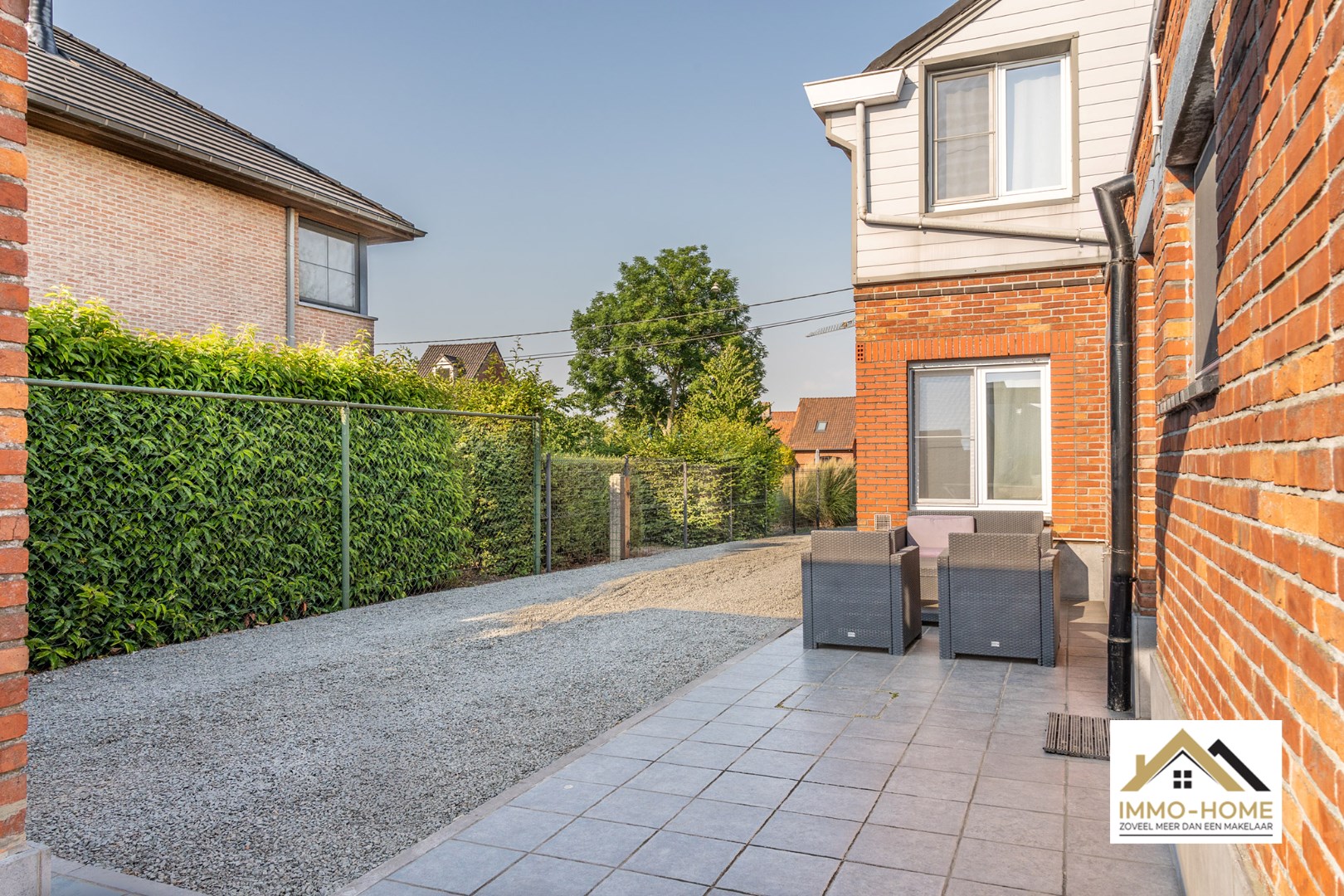 Schrijf u inDeze halfopen bebouwing ontvangt je in een ruime inkomhal, met plaats voor een vestiaire. Je komt zo in de lichtrijke leefruimte, en de grote haard zorgt hier zeker voor extra sfeer in huis. Aanpalend bereik je de keuken, van waaruit je ook zicht hebt op het zonovergoten terras. De keuken heeft een aparte voorraadruimte, en via een kleine gang kom je zowel in de badkamer als op het terras. Op de eerste verdieping is er rond de overloop plaats voor twee ruime slaapkamers. In de grote tuin kun je de dag rond genieten van de zon, en er is een vrijstaande garage voorzien. Bijkomende opslagruimte heb je in de tuinberging en op de opbergzolder. Bezoekdag zaterdag 01/07: inschrijvingen via mail naar tommy@immo-home.be, geen telefonische inschrijvingen! Volg ons op Fb en insta. Voor meer info: www.immo-home.be