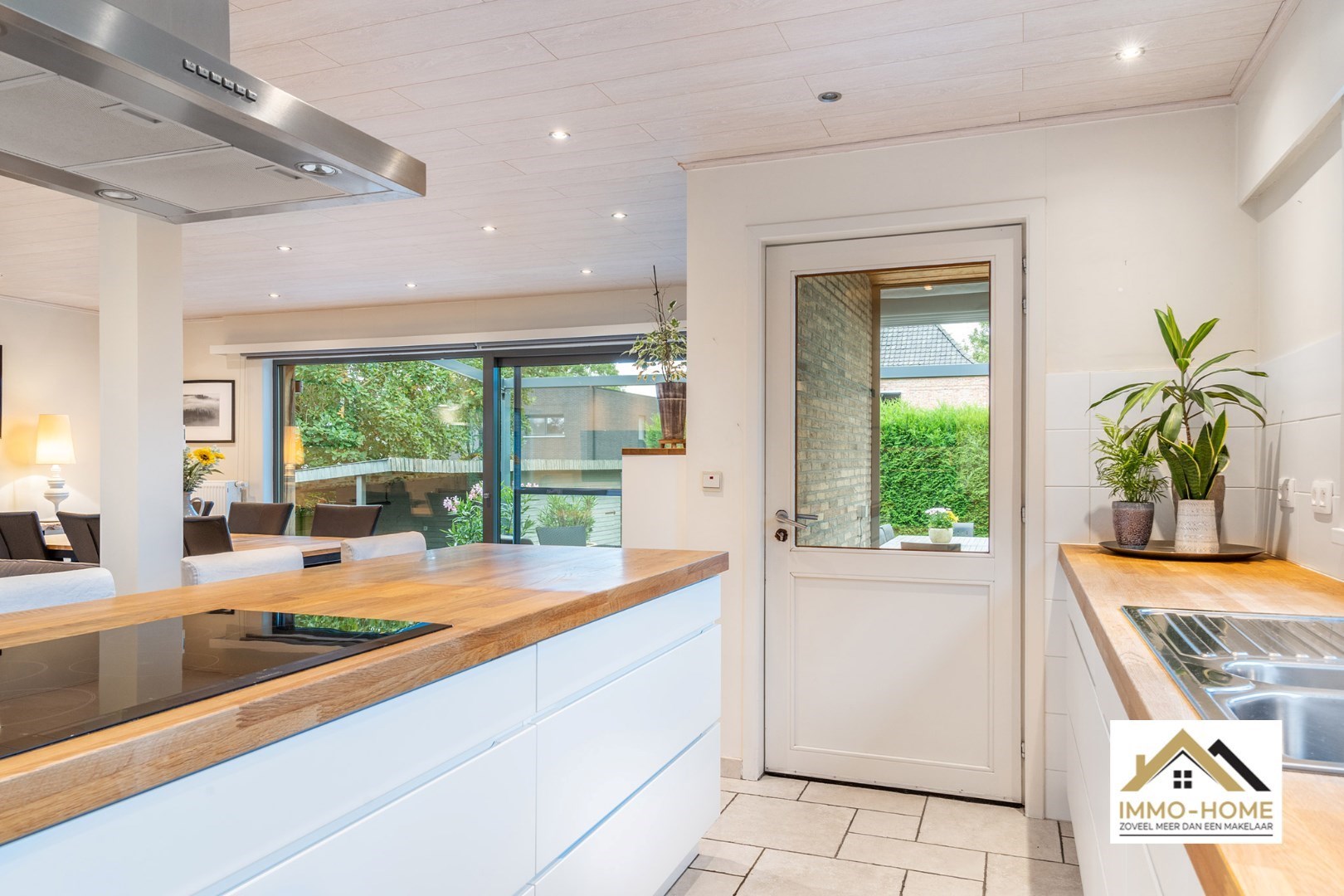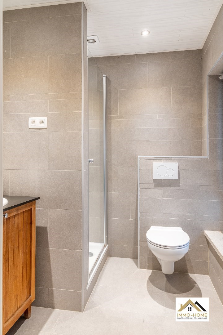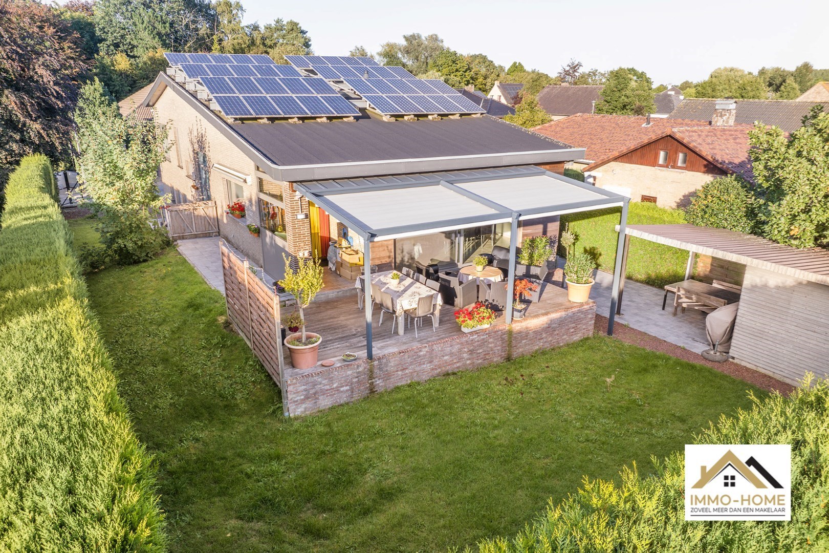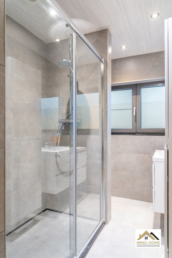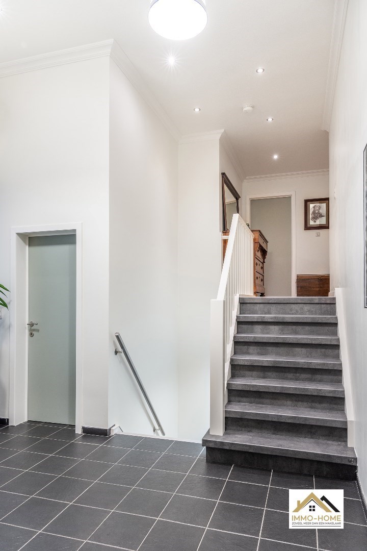 Schrijf u inVia de statige inkomhal, die je bereikt aan de rechterkant van het pand, kom je tot in alle ruimtes van deze zeer rustig gelegen woning. De grote open leefruimte met open keuken heeft een heel aangenaam gevoel, onder andere door de vele raampartijen. Het ruime overdekte terras (met automatische sluiting) bereik je via zowel het grote schuifraam als via een aparte deur aan de keuken. In de doorgang is een kleine buitenkeuken beschikbaar. De keuken zelf is voorzien van alle moderne comfort, en het grote kookeiland neemt een prominente plaats in. De vele extra kastruimte is uiteraard mooi meegenomen. De maatwerkkasten met ingemaakte haard zorgen voor extra sfeer in de zithoek. Via de half-verhoogde overloop bereik je de drie mooie slaapkamers en de badkamer. Eén slaapkamer beschikt bovendien over een en-suite badkamer met eigen toilet. Onderaan de woning is er voorzien in een grote wasplaats/berging (met toegang tot de tuin) en bureel. De woning beschikt over een garage voor één wagen (terwijl er op de oprit plaats is voor meerdere wagens) en bijkomende extra opbergruimte. Die is er ook in het tuinhuis, waar je onder het aansluitende afdak nog een extra gezellige zithoek hebt. Je voorziet in je eigen energie met de 40 zonnepanelen, en in de belangrijkste ruimtes is er airco. Inschrijvingen via mail naar tommy@immo-home.be, geen telefonische inschrijvingen! Volg ons op Fb en insta. Voor meer info: www.immo-home.be