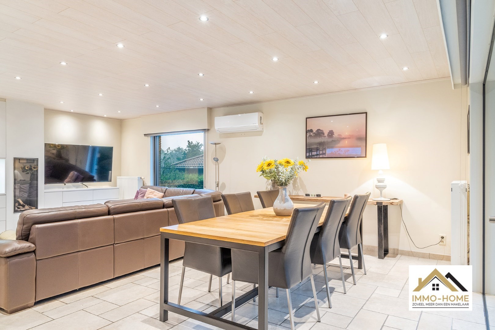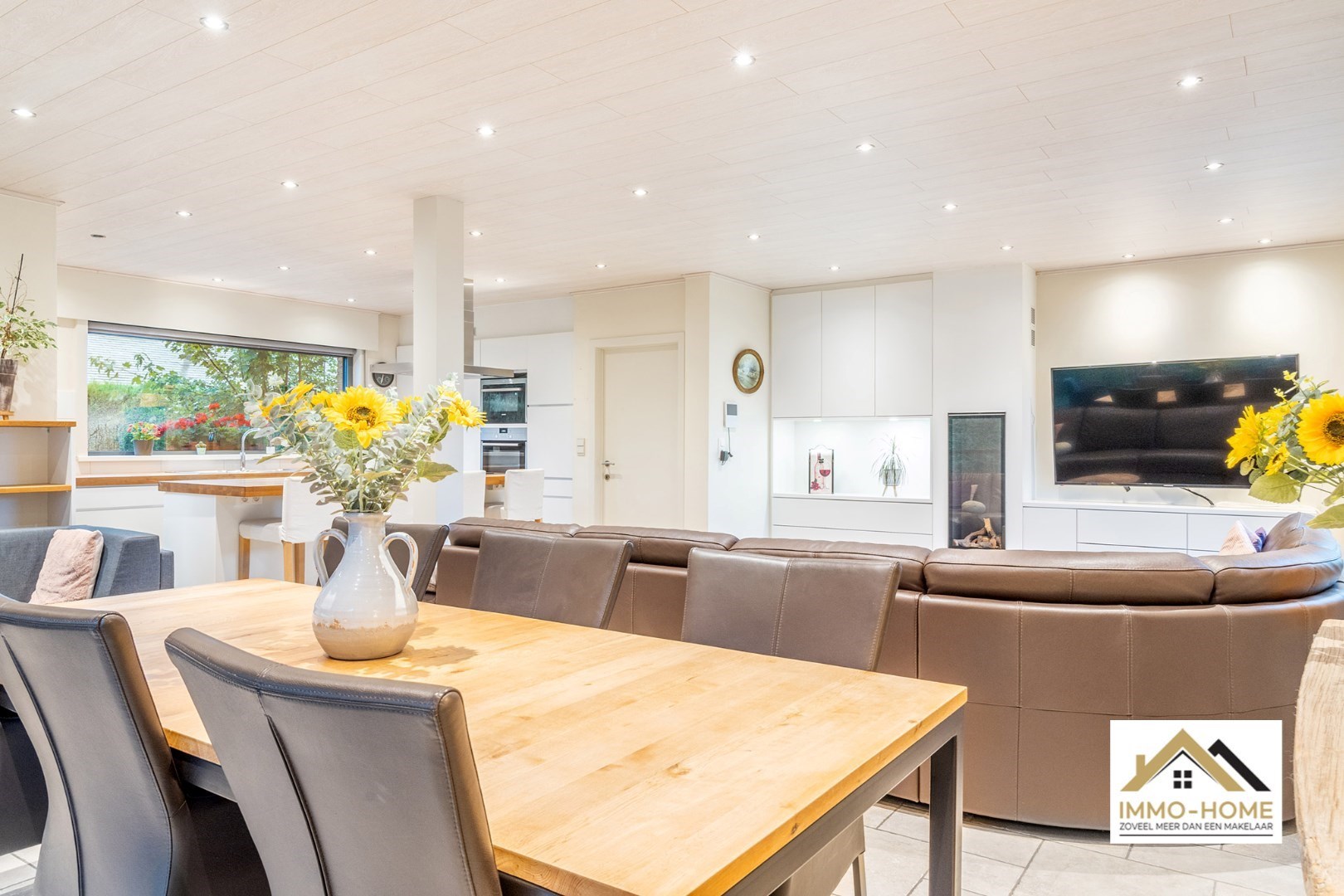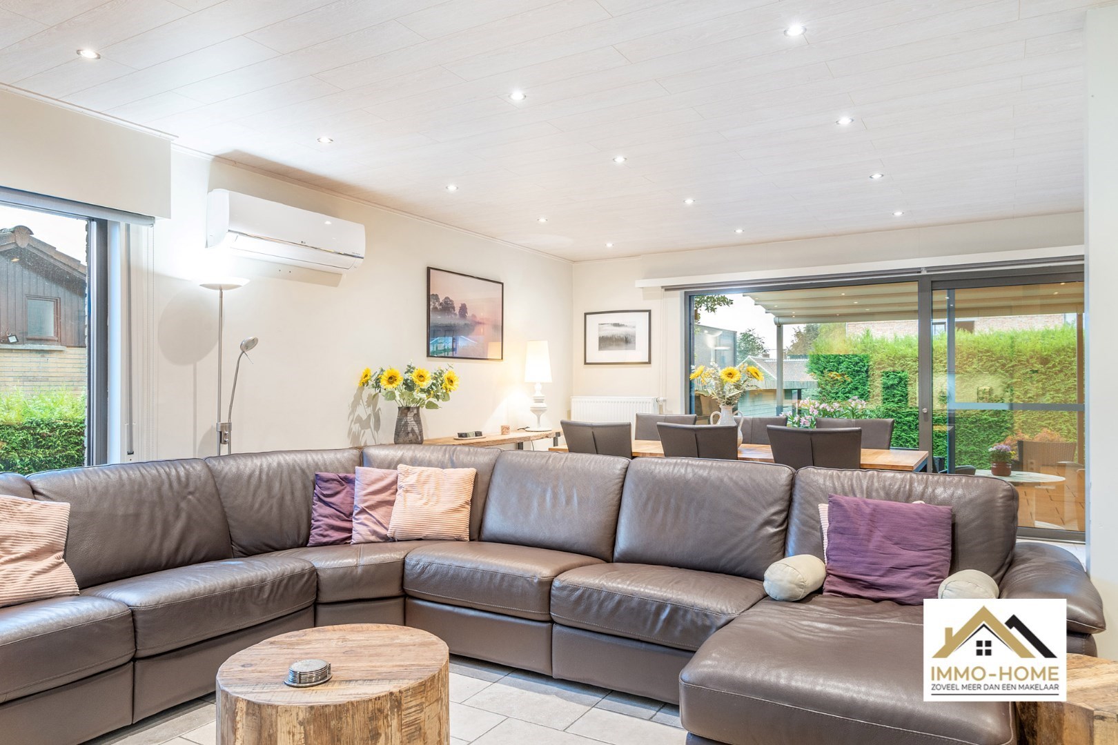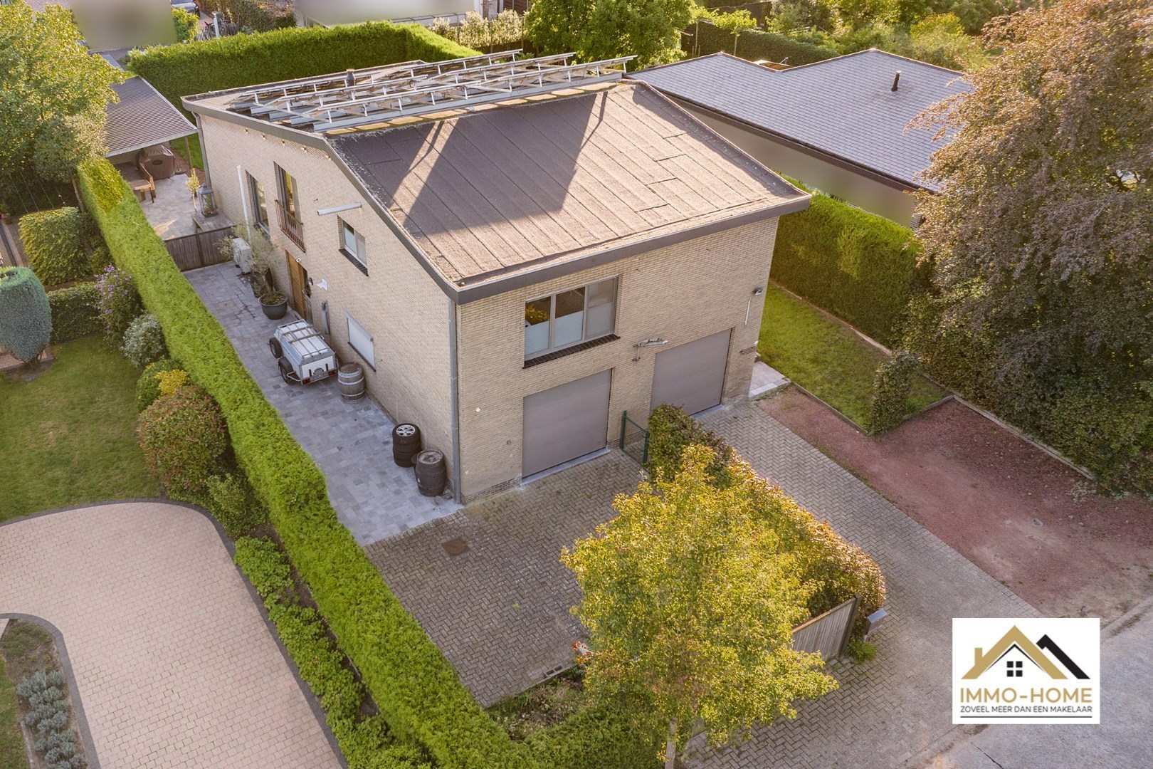Schrijf u inVia de statige inkomhal, die je bereikt aan de rechterkant van het pand, kom je tot in alle ruimtes van deze zeer rustig gelegen woning. De grote open leefruimte met open keuken heeft een heel aangenaam gevoel, onder andere door de vele raampartijen. Het ruime overdekte terras (met automatische sluiting) bereik je via zowel het grote schuifraam als via een aparte deur aan de keuken. In de doorgang is een kleine buitenkeuken beschikbaar. De keuken zelf is voorzien van alle moderne comfort, en het grote kookeiland neemt een prominente plaats in. De vele extra kastruimte is uiteraard mooi meegenomen. De maatwerkkasten met ingemaakte haard zorgen voor extra sfeer in de zithoek. Via de half-verhoogde overloop bereik je de drie mooie slaapkamers en de badkamer. Eén slaapkamer beschikt bovendien over een en-suite badkamer met eigen toilet. Onderaan de woning is er voorzien in een grote wasplaats/berging (met toegang tot de tuin) en bureel. De woning beschikt over een garage voor één wagen (terwijl er op de oprit plaats is voor meerdere wagens) en bijkomende extra opbergruimte. Die is er ook in het tuinhuis, waar je onder het aansluitende afdak nog een extra gezellige zithoek hebt. Je voorziet in je eigen energie met de 40 zonnepanelen, en in de belangrijkste ruimtes is er airco. Inschrijvingen via mail naar tommy@immo-home.be, geen telefonische inschrijvingen! Volg ons op Fb en insta. Voor meer info: www.immo-home.be
