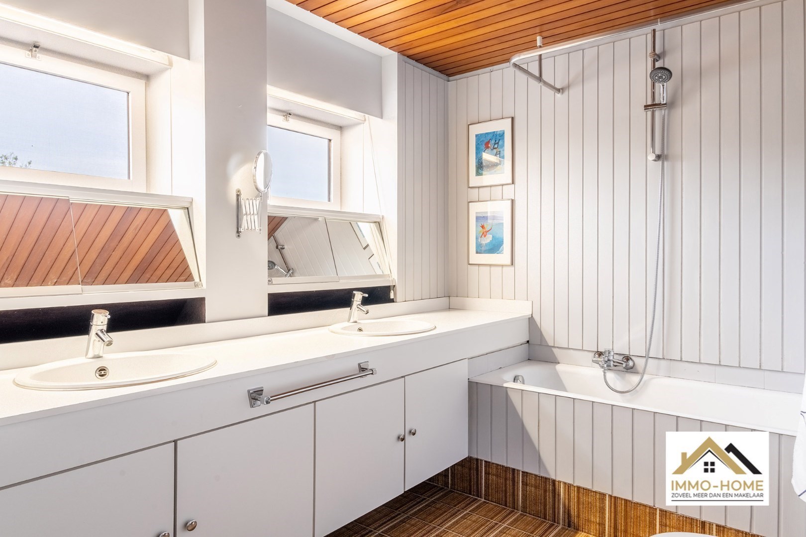 Schrijf u inDeze karaktervolle woning ontvangt je in een leuke inkomhal met vestiaire en gastentoilet. Zo kom je tot in de lichtrijke leefruimte, die is opgedeeld in verschillende onderdelen die op een aangename manier met elkaar zijn verbonden. Hierdoor blijft alles toch als één geheel aanvoelen. De deels afgescheiden keuken is voorzien van alle comfort, en via een kleine gang kun je zowel naar de tuin als naar de wasplaats waar een extra douche is voorzien. Op de eerste verdieping is er plaats voor vier ruime slaapkamers en een badkamer met ligbad. De tuin is prachtig aangelegd en volledig vrij van inkijk. Verschillende zithoekjes maken dat je hier in alle rust kan genieten van het buitenleven. Ontstressen kan je dan weer in de sauna. De vrijstaande garage is groot genoeg voor twee wagens en herbergt veel extra opbergruimte. Die is er ook in de kelder net naast de keuken. Je voorziet in je eigen energie met de 20 zonnepanelen. Inschrijvingen via mail naar tommy@immo-home.be, geen telefonische inschrijvingen! Volg ons op Fb en insta. Voor meer info: www.immo-home.be GRATIS SCHATTING GRATIS FINANCIEEL ADVIES