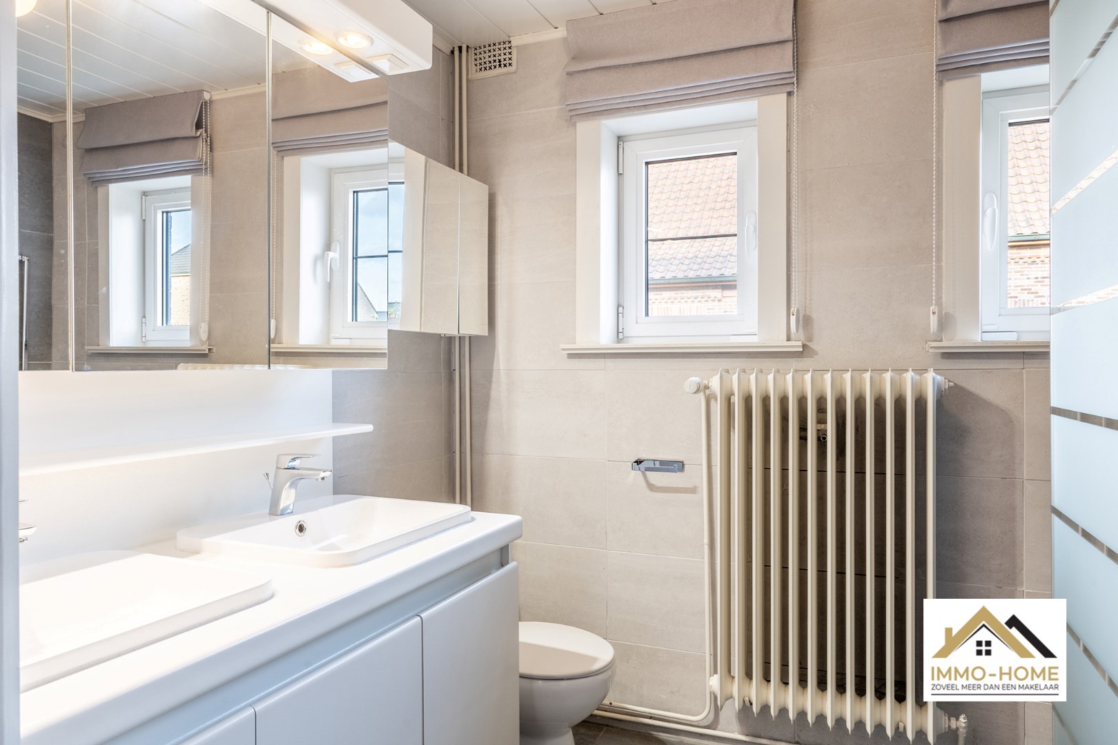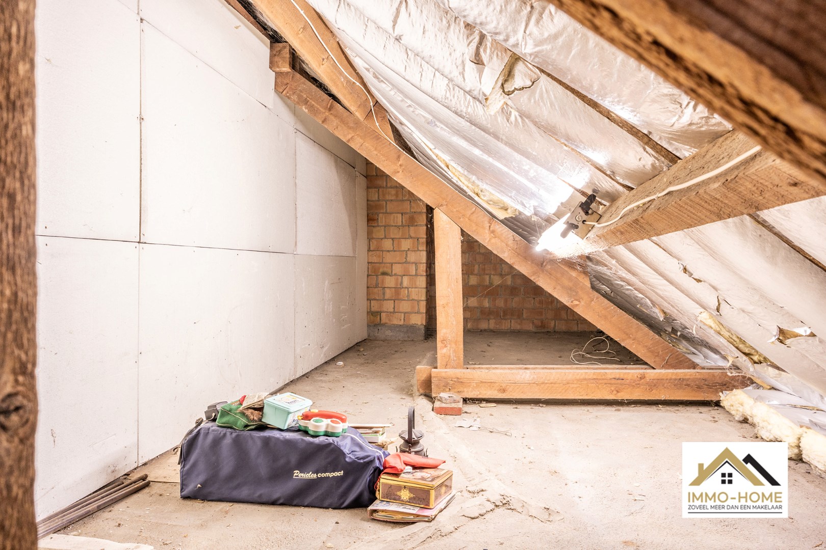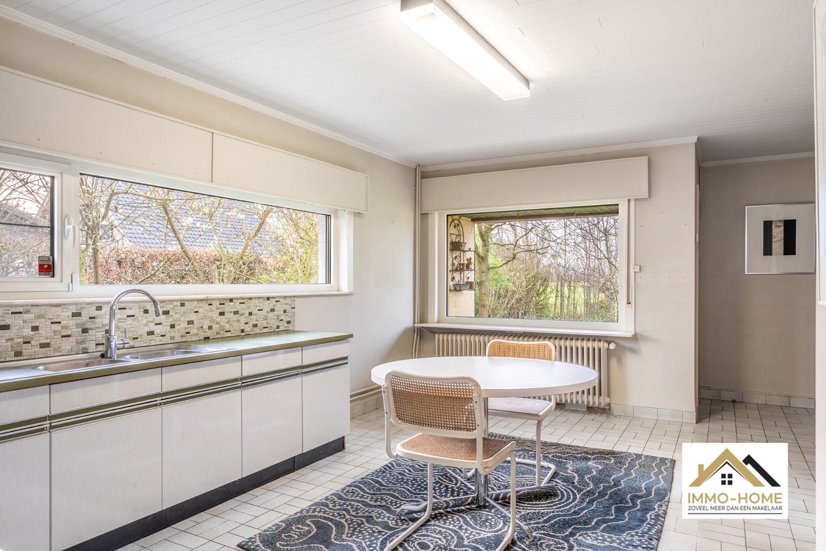 Schrijf u inDeze op te frissen woning is bijzonder rustig gelegen, in een doodlopende straat en met uitzicht op een prachtige groene omgeving. Het pand ontvangt je in een ruime inkomhal met een gastentoilet en plaats voor een vestiaire. De inkomhal verbindt de meeste ruimtes op het gelijkvloers, te beginnen met een riante lichtrijke leefruimte. De aanpalende keuken is praktisch ingericht, en biedt een mooi uitzicht op de tuin en het achterland. Je beschikt hier tevens over een ruime koele berging, en rechtstreekse toegang tot de tuin en het terras. De inpandige garage geeft eveneens uit op de keuken, wat superhandig is met de boodschappen. Verder op het gelijkvloers : de reeds gerenoveerde badkamer met riante inloopdouche, en een eerste zeer ruime slaapkamer. Op de eerste verdieping zijn er momenteel twee slaapkamers en twee zolders, maar die zijn om te vormen tot vier slaapkamers indien gewenst. Op het einde van de lange oprit is er een tweede garage voorzien.