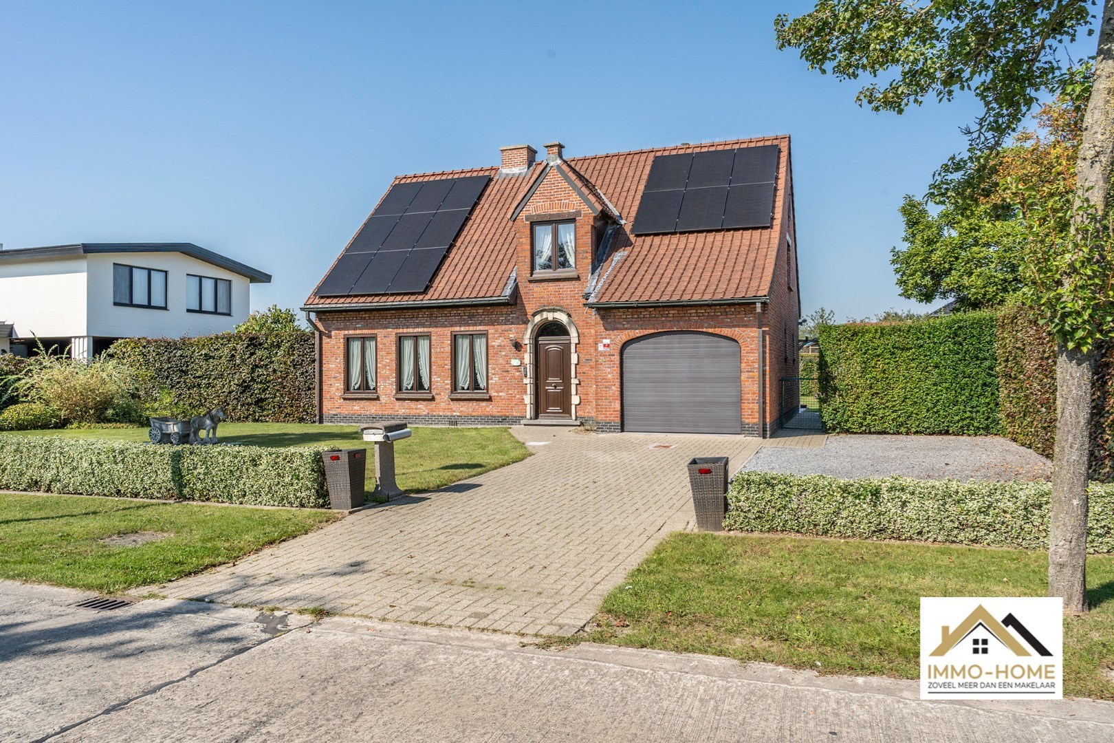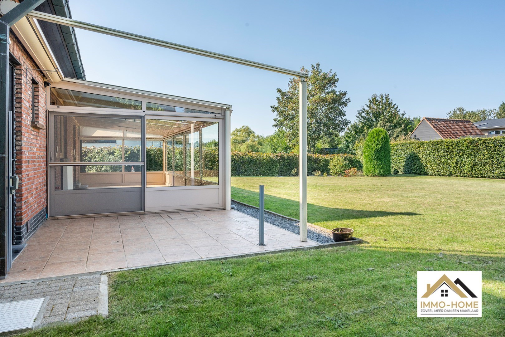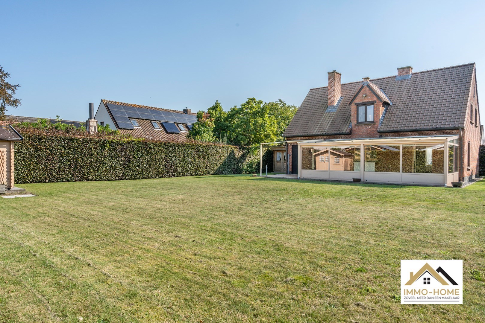 Schrijf u inAls je op zoek bent naar een ruime instapklare woning met een grote tuin, in een rustige omgeving in het mooie Lochristi, dan is dit allicht een grote kanshebber. Het pand ontvangt je in een ruime inkomhal met vestiaire en gastentoilet, en zo kom je tot in de lichtrijke L-vormige leefruimte. Raampartijen rondom zorgen voor een leuk contact met de omgeving, en de doorkijk naar de grote veranda verraadt al meteen één van de grote troeven van de woning. Want in deze riante tuinkamer is het zomer en winter genieten van het zicht op de grote tuin, genieten van het buitenleven kan dus elke dag van het jaar. Ook vanuit de aanpalende keuken, die praktisch is ingericht, heb je hetzelfde zicht tijdens het kokerellen. De inpandige garage (met automatische poort) biedt niet alleen plaats aan een wagen, hier is ook ruimte voor de wasplaats en extra opbergruimte. Die is er ook in de twee tuinbergingen en op de zolder. Naast de veranda is er nog een open terras voorzien (ook bereikbaar vanuit de garage), met automatische zonnewering. Op de eerste verdieping is er rond de toffe overloop plaats voor drie ruime slaapkamers, en uiteraard ook de badkamer die voorzien is van een mooie grote inloopdouche. Op de oprit is er plaats voor meerdere wagens, en met de 15 zonnepanelen voorzie je in je eigen energie. Inschrijvingen via mail naar tommy@immo-home.be , geen telefonische inschrijvingen! Volg ons op Fb en insta. Voor meer info: www.immo-home.be GRATIS SCHATTING GRATIS FINANCIEEL ADVIES