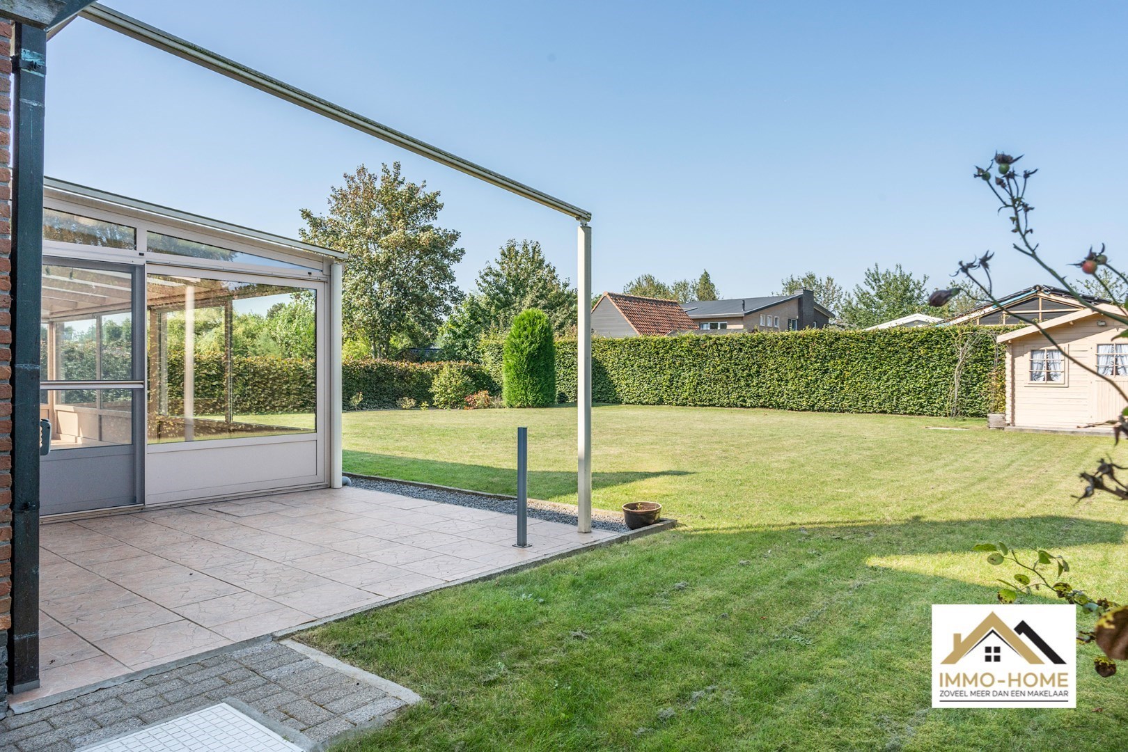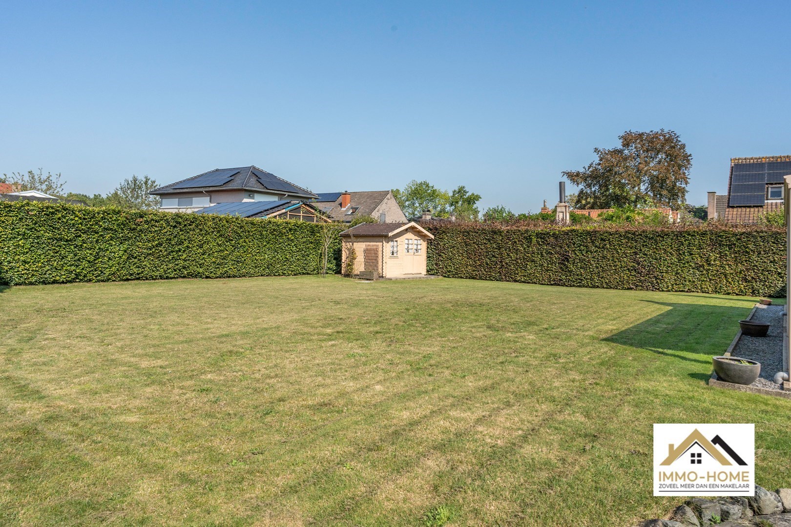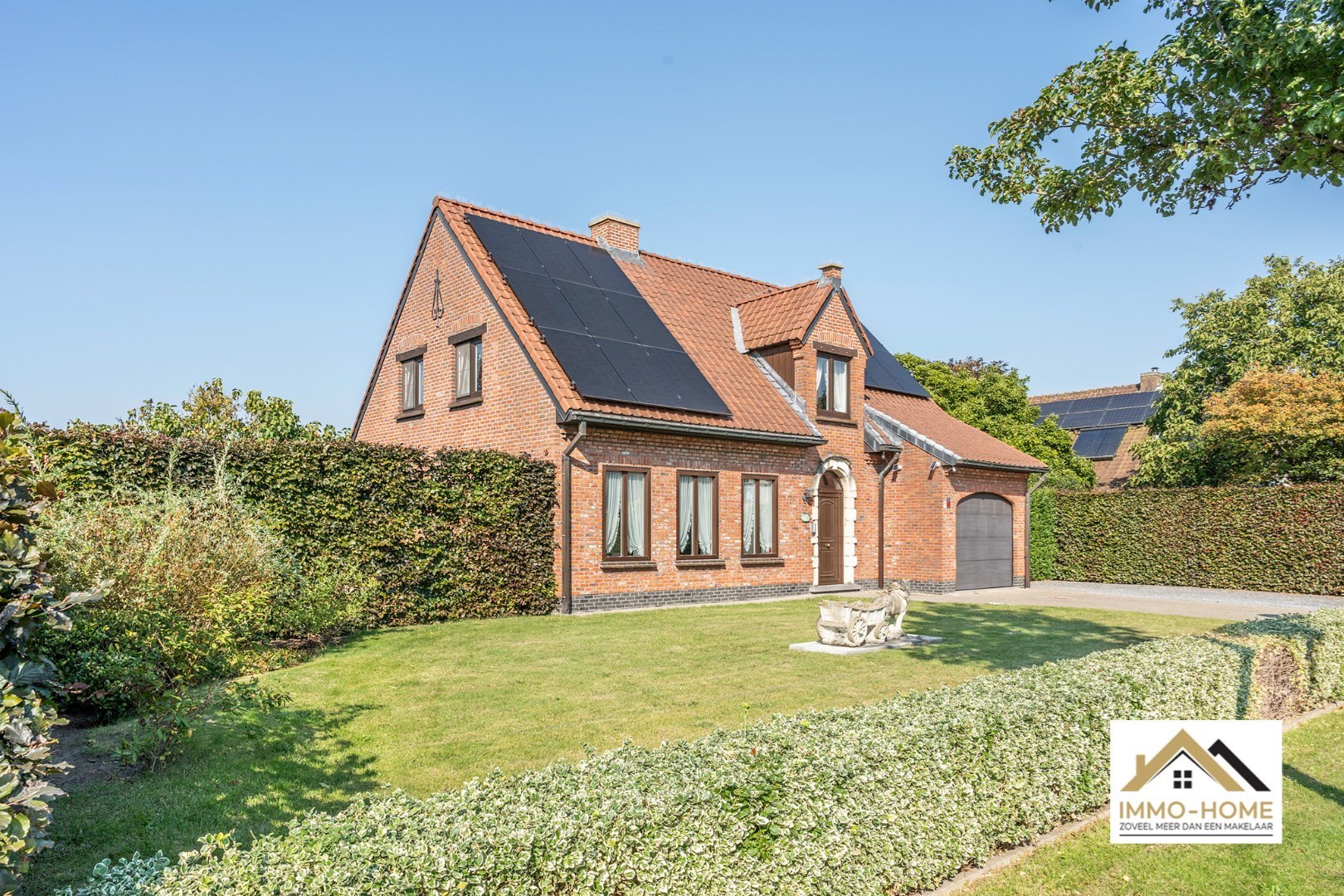 Schrijf u inAls je op zoek bent naar een ruime instapklare woning met een grote tuin, in een rustige omgeving in het mooie Lochristi, dan is dit allicht een grote kanshebber. Het pand ontvangt je in een ruime inkomhal met vestiaire en gastentoilet, en zo kom je tot in de lichtrijke L-vormige leefruimte. Raampartijen rondom zorgen voor een leuk contact met de omgeving, en de doorkijk naar de grote veranda verraadt al meteen één van de grote troeven van de woning. Want in deze riante tuinkamer is het zomer en winter genieten van het zicht op de grote tuin, genieten van het buitenleven kan dus elke dag van het jaar. Ook vanuit de aanpalende keuken, die praktisch is ingericht, heb je hetzelfde zicht tijdens het kokerellen. De inpandige garage (met automatische poort) biedt niet alleen plaats aan een wagen, hier is ook ruimte voor de wasplaats en extra opbergruimte. Die is er ook in de twee tuinbergingen en op de zolder. Naast de veranda is er nog een open terras voorzien (ook bereikbaar vanuit de garage), met automatische zonnewering. Op de eerste verdieping is er rond de toffe overloop plaats voor drie ruime slaapkamers, en uiteraard ook de badkamer die voorzien is van een mooie grote inloopdouche. Op de oprit is er plaats voor meerdere wagens, en met de 15 zonnepanelen voorzie je in je eigen energie. Inschrijvingen via mail naar tommy@immo-home.be , geen telefonische inschrijvingen! Volg ons op Fb en insta. Voor meer info: www.immo-home.be GRATIS SCHATTING GRATIS FINANCIEEL ADVIES