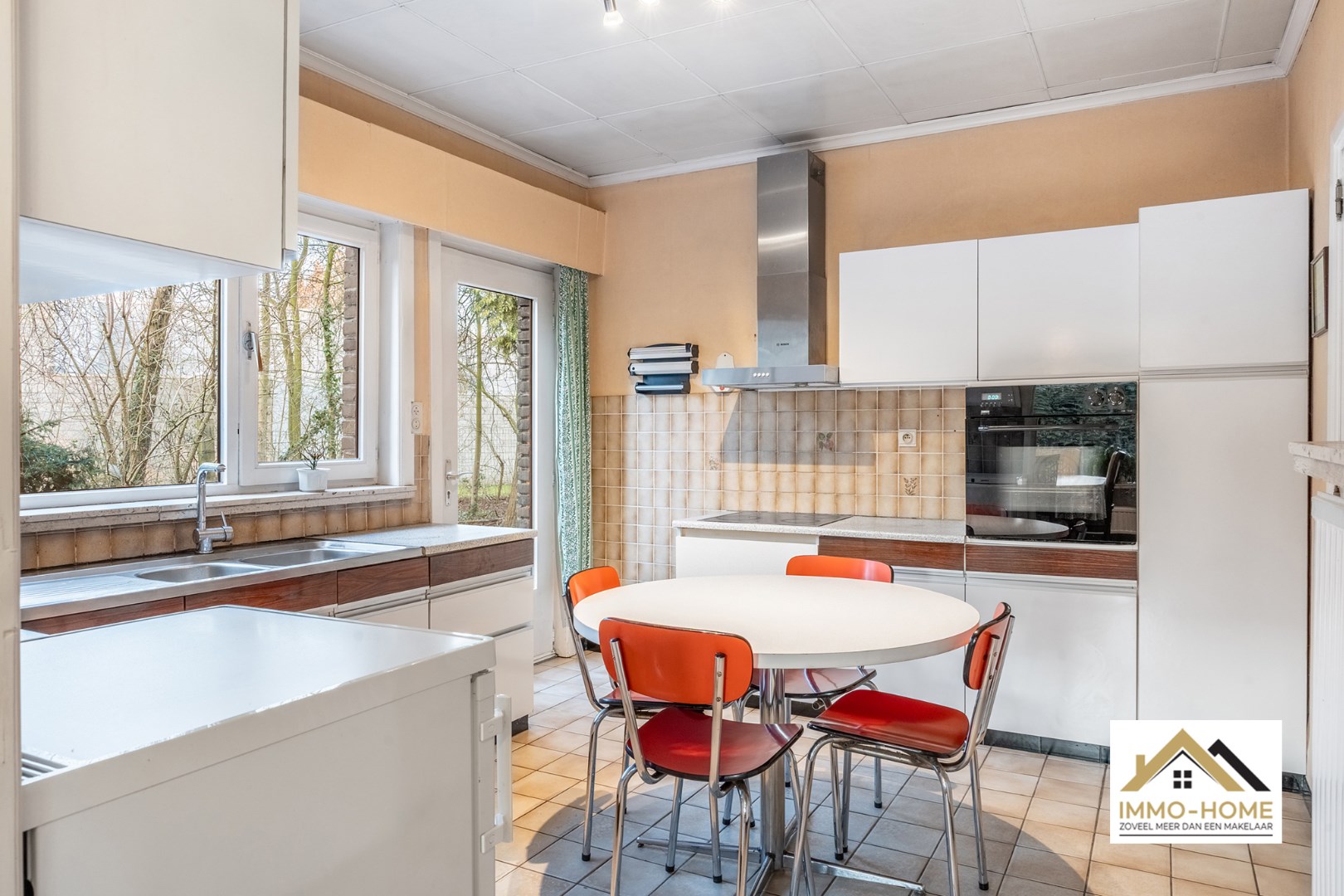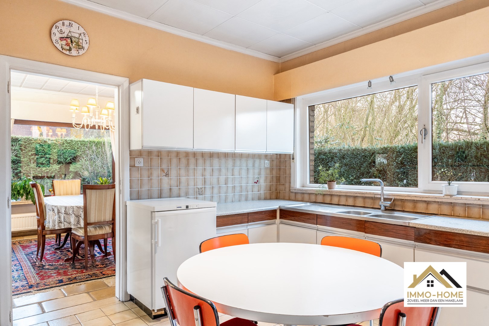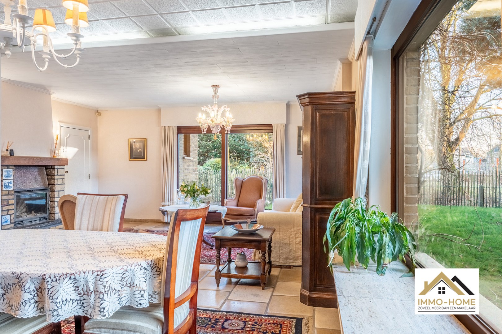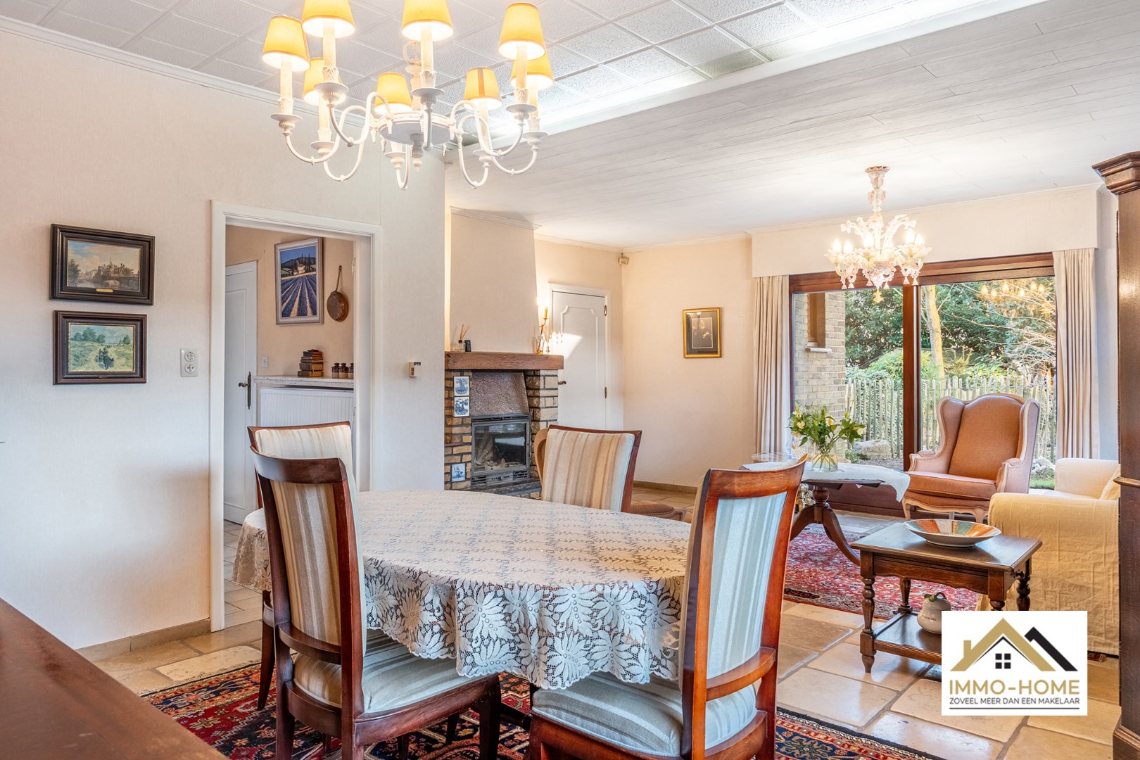 Schrijf u inDeze woning bereik je via een lange private oprit (gedeeld gebruik), die je toegang geeft tot een bijzonder goed verborgen plekje middenin het centrum van Lochristi. Het pand heeft opfrissing nodig, maar er zijn heel wat opties om met de aanwezige authenticiteit aan de slag te gaan. Je wordt ontvangen in een ruime inkomhal (met gastentoilet), die alle ruimtes op het gelijkvloers met elkaar verbindt. Te beginnen met de zeer lichtrijke leefruimte, waar de groene omgeving via de grote raampartijen als het ware de woning wordt binnengezogen. De haard zorgt ongetwijfeld voor extra gezelligheid, en het deels overdekte terras vormt een natuurlijk verlengstuk van de ruimte. De aanpalende keuken is praktisch ingericht, en via de daar aanwezige achterdeur kom je eveneens tot in de tuin. De zeer ruime dubbele garage met verhoogde inrijpoorten (inclusief een koele berging) vormt het sluitstuk van de benedenverdieping. Op de eerste verdieping is er rond de overloop voorzien in drie mooie slaapkamers, allemaal met zicht op de omgeving, en een grote badkamer met ligbad en een tweede toilet. Extra opbergruimte is er in de tweede dubbele garage en in het tuinhuis. De tuin is volledig afgesloten, en een ideale plek om middenin Lochristi van het buitenleven te genieten. Inschrijvingen via mail naar xenia@immo-home.be, geen telefonische inschrijvingen! Volg ons op Fb en Insta. Voor meer info: www.immo-home.be. GRATIS SCHATTING & GRATIS FINANCIEEL ADVIES