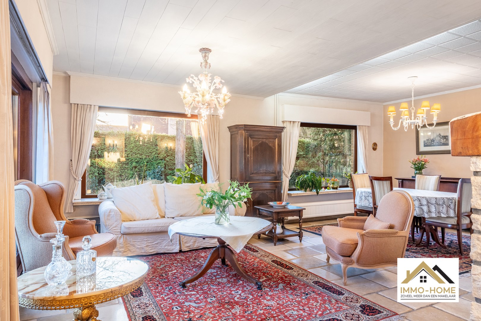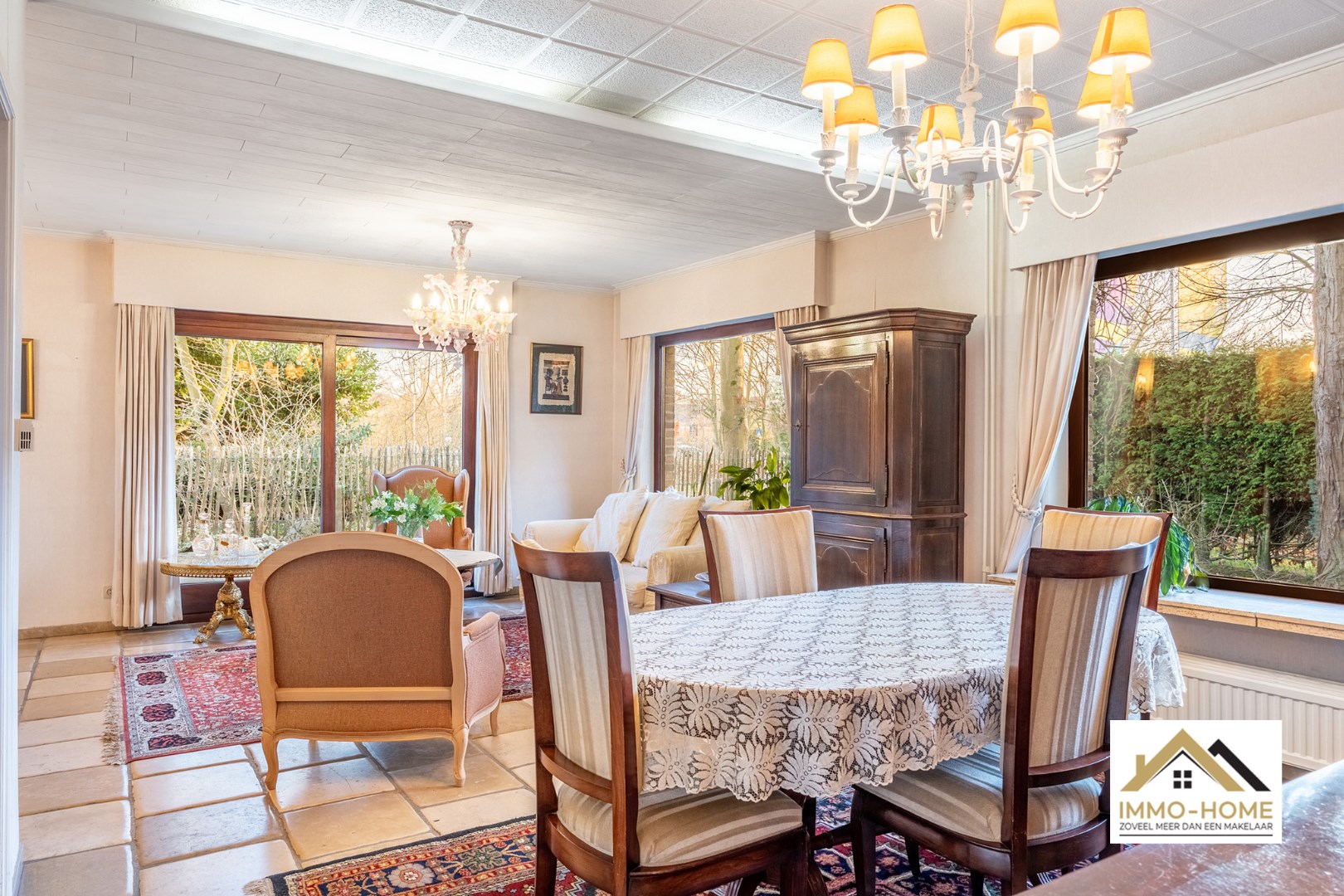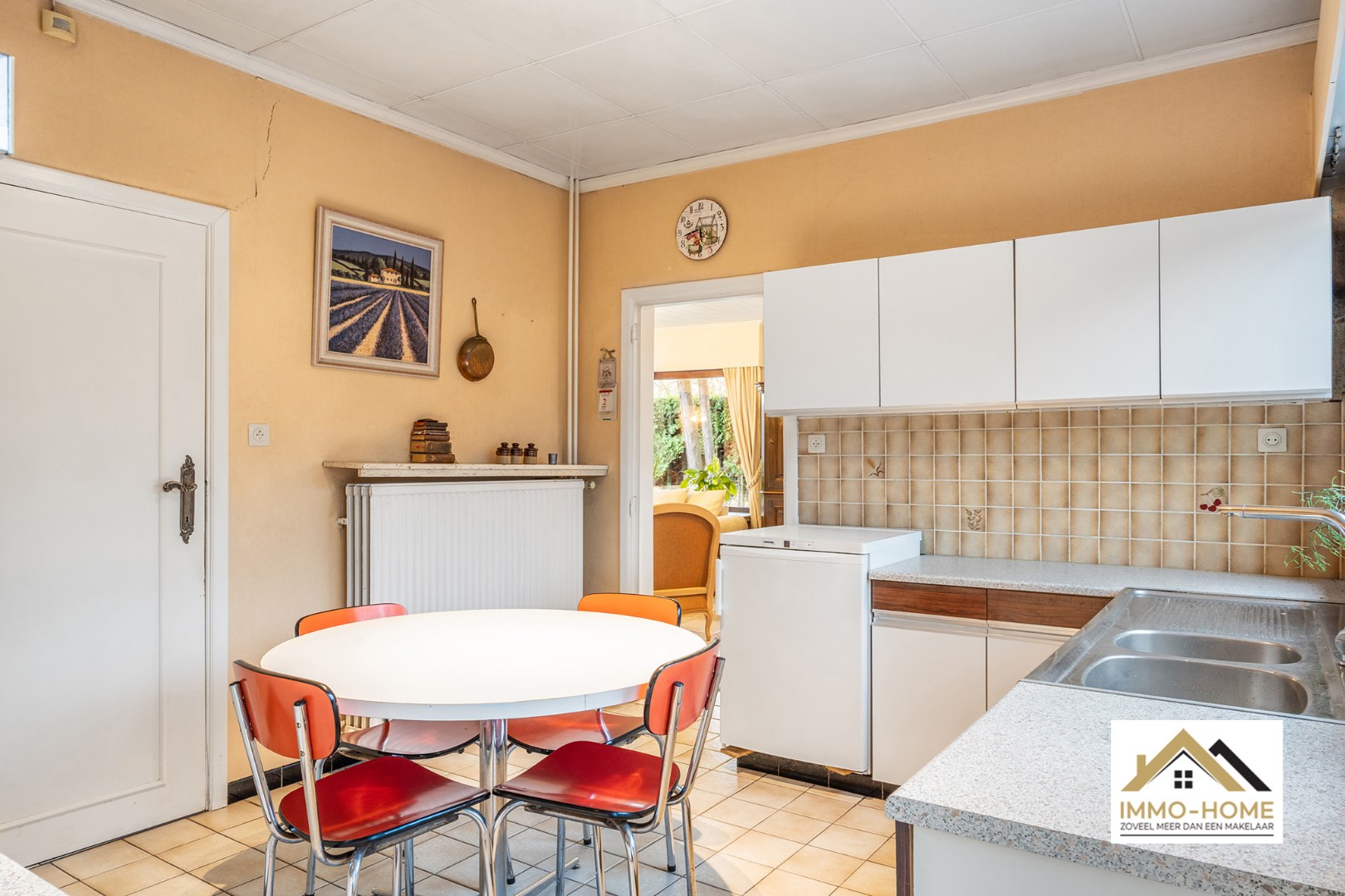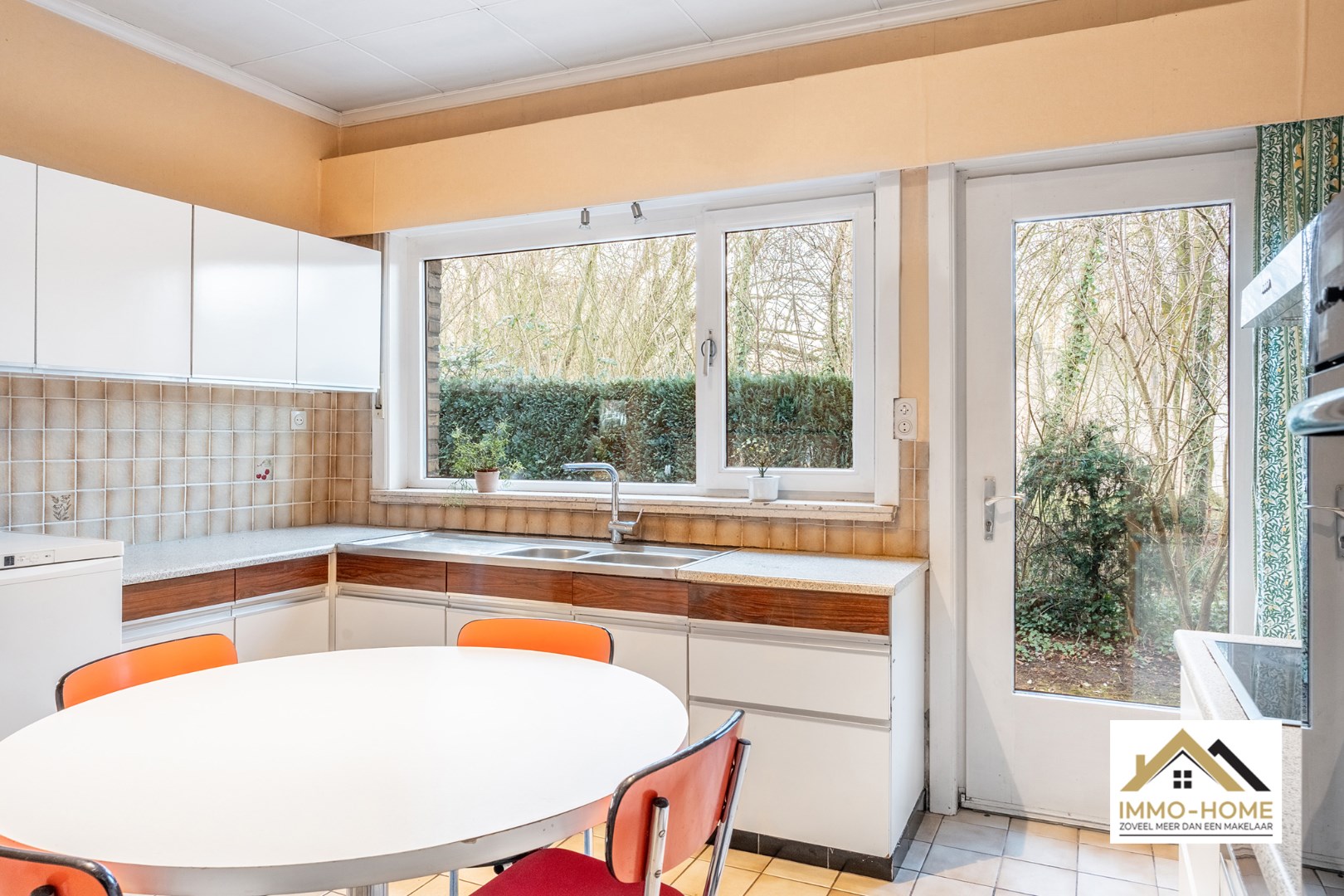 Schrijf u inDeze woning bereik je via een lange private oprit (gedeeld gebruik), die je toegang geeft tot een bijzonder goed verborgen plekje middenin het centrum van Lochristi. Het pand heeft opfrissing nodig, maar er zijn heel wat opties om met de aanwezige authenticiteit aan de slag te gaan. Je wordt ontvangen in een ruime inkomhal (met gastentoilet), die alle ruimtes op het gelijkvloers met elkaar verbindt. Te beginnen met de zeer lichtrijke leefruimte, waar de groene omgeving via de grote raampartijen als het ware de woning wordt binnengezogen. De haard zorgt ongetwijfeld voor extra gezelligheid, en het deels overdekte terras vormt een natuurlijk verlengstuk van de ruimte. De aanpalende keuken is praktisch ingericht, en via de daar aanwezige achterdeur kom je eveneens tot in de tuin. De zeer ruime dubbele garage met verhoogde inrijpoorten (inclusief een koele berging) vormt het sluitstuk van de benedenverdieping. Op de eerste verdieping is er rond de overloop voorzien in drie mooie slaapkamers, allemaal met zicht op de omgeving, en een grote badkamer met ligbad en een tweede toilet. Extra opbergruimte is er in de tweede dubbele garage en in het tuinhuis. De tuin is volledig afgesloten, en een ideale plek om middenin Lochristi van het buitenleven te genieten. Inschrijvingen via mail naar xenia@immo-home.be, geen telefonische inschrijvingen! Volg ons op Fb en Insta. Voor meer info: www.immo-home.be. GRATIS SCHATTING & GRATIS FINANCIEEL ADVIES