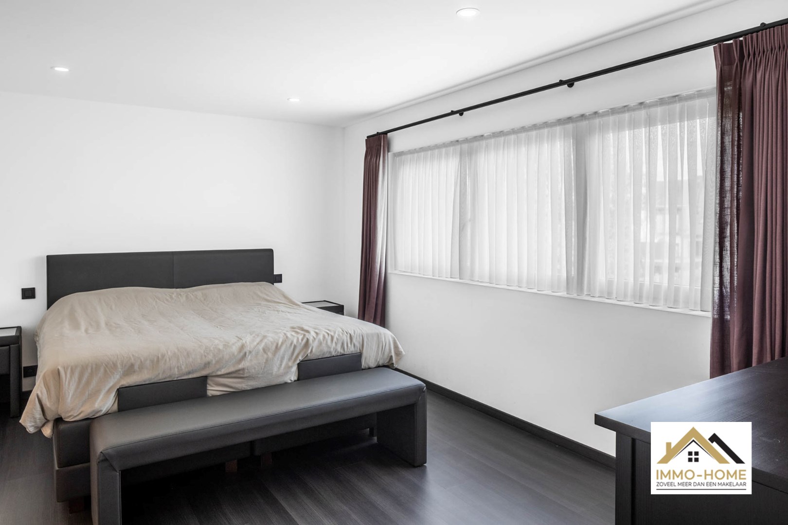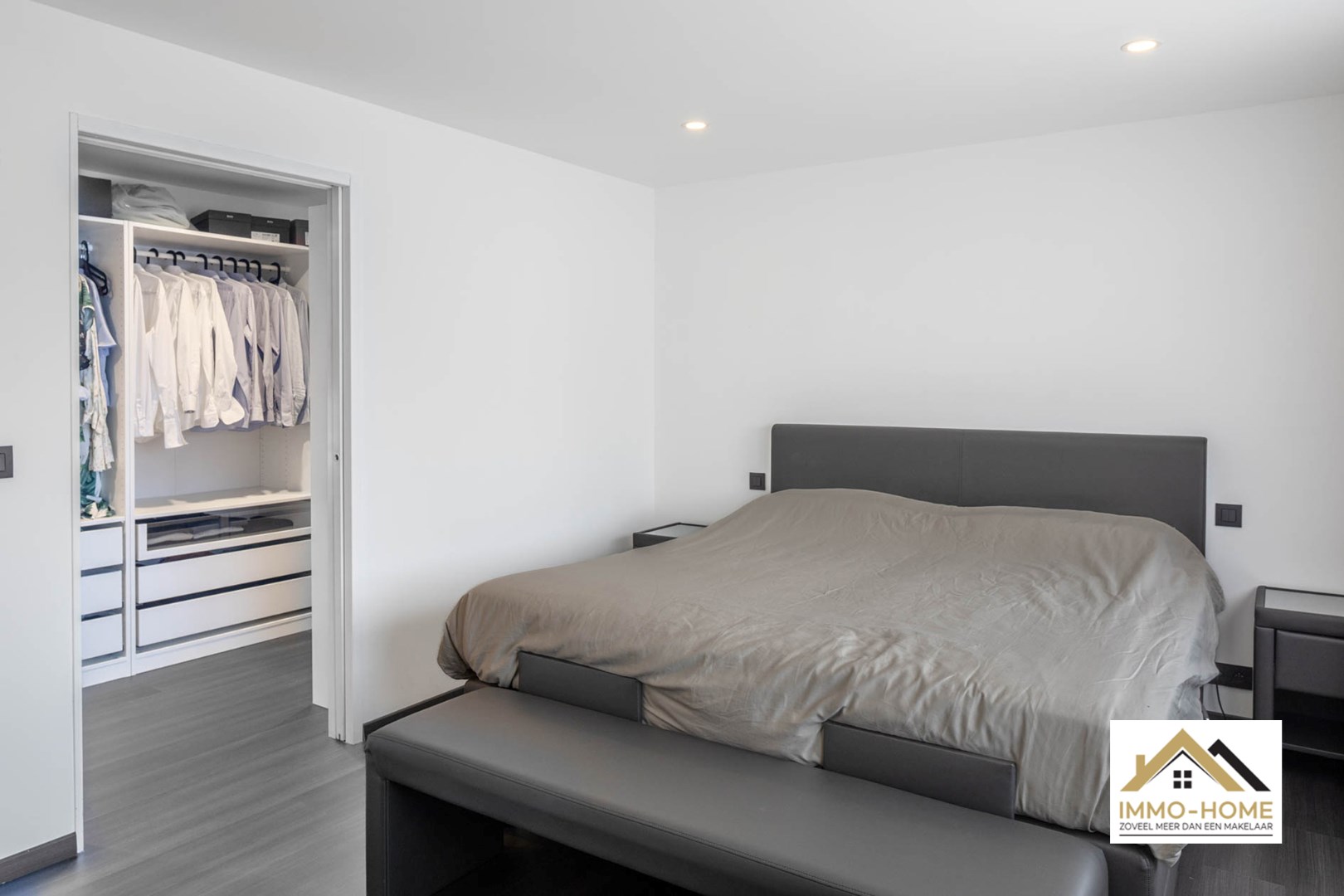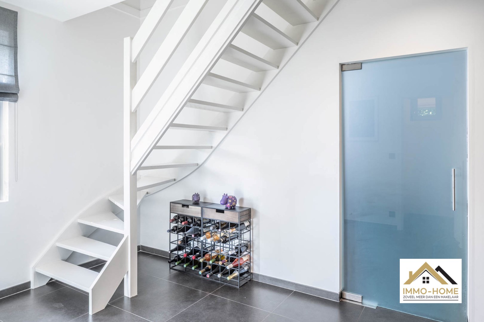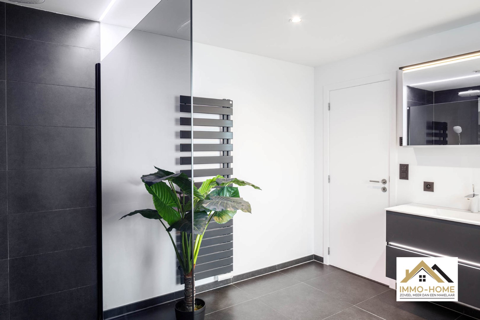 Aansluitend bevindt zich een ruime berging, slim opgedeeld in twee functionele zones, met directe toegang tot de tuin. Op de eerste verdieping zijn er drie grote slaapkamers, waarvan één met een ingebouwde dressing. De badkamer is modern ingericht met een inloopdouche met glazen wand en een dubbel lavabomeubel. Ook op deze verdieping zijn een afzonderlijk toilet en een bergruimte voorzien.