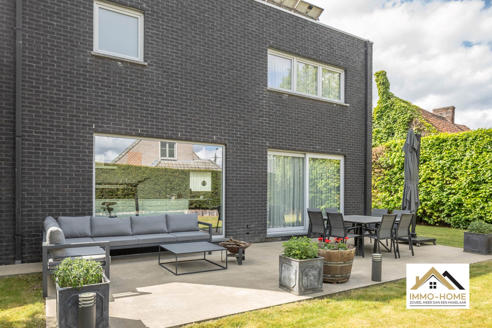 De tuin is onderhoudsvriendelijk aangelegd en beschikt over een gezellig terras, ideaal om van zonnige dagen te genieten. Een praktisch tuinhuis biedt bijkomende opbergmogelijkheden. De woning is bovendien uitgerust met 21 zonnepanelen en beschikt over een geïntegreerde carport.