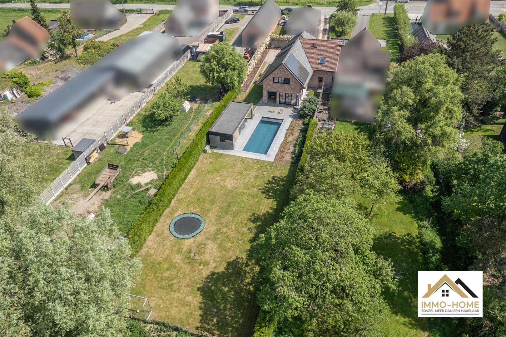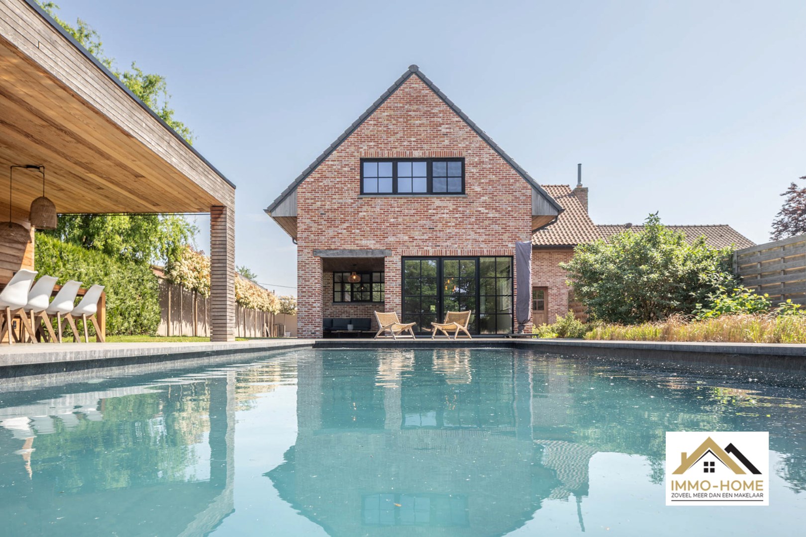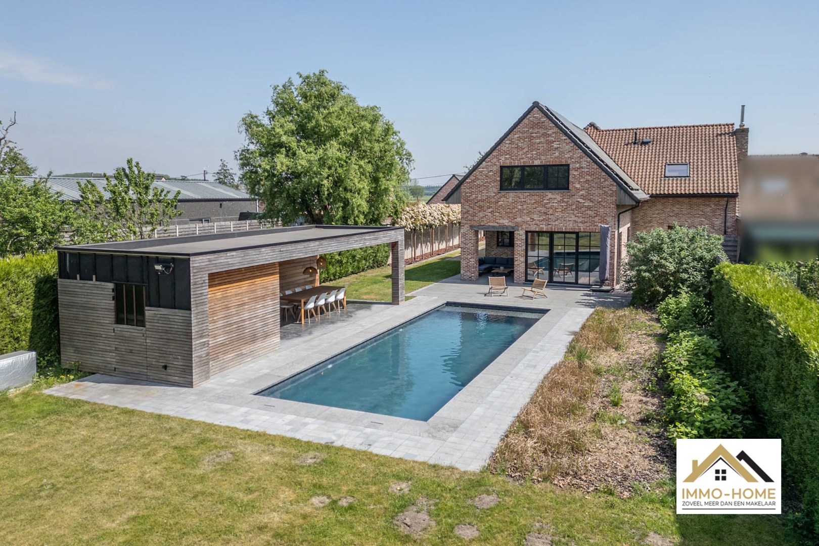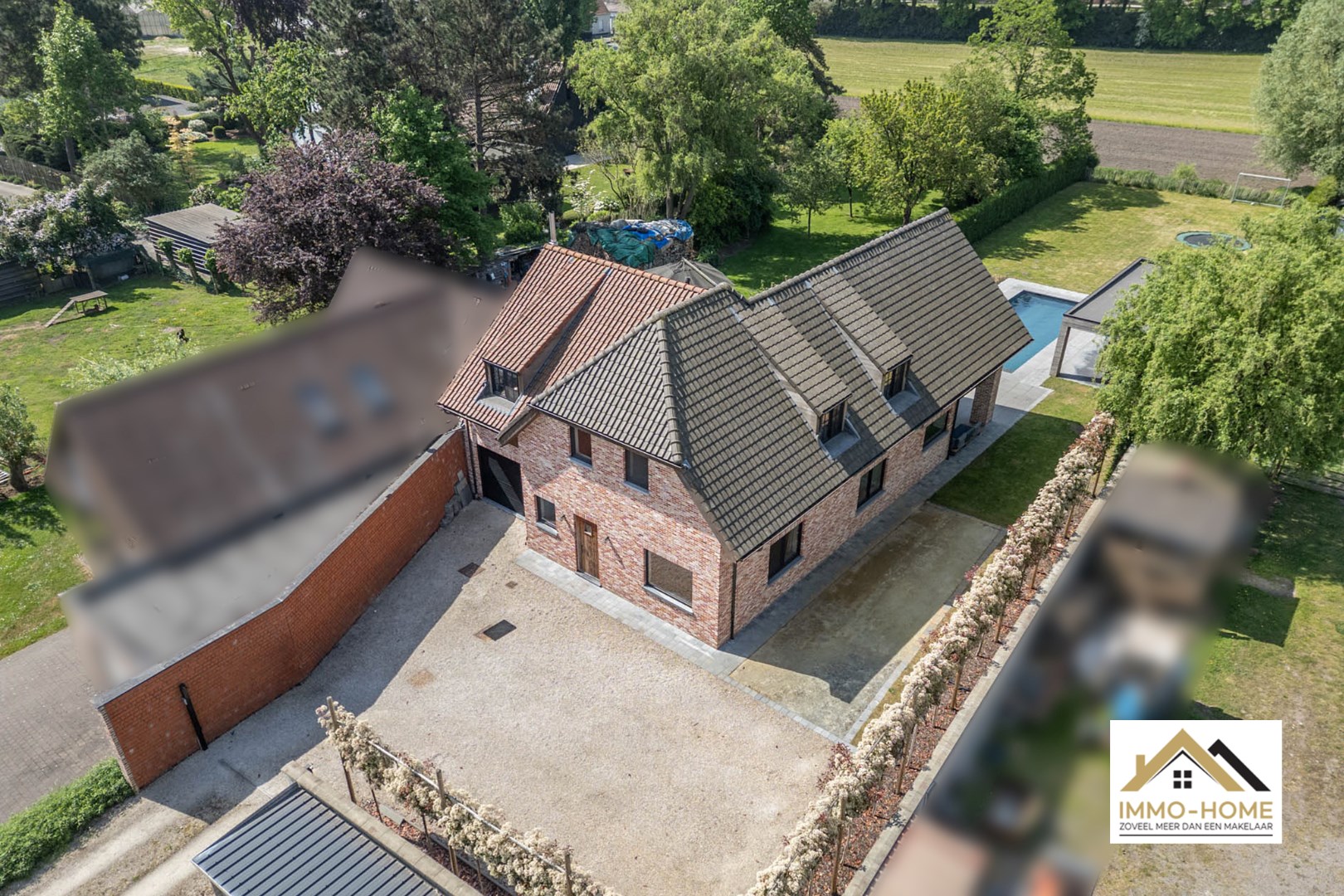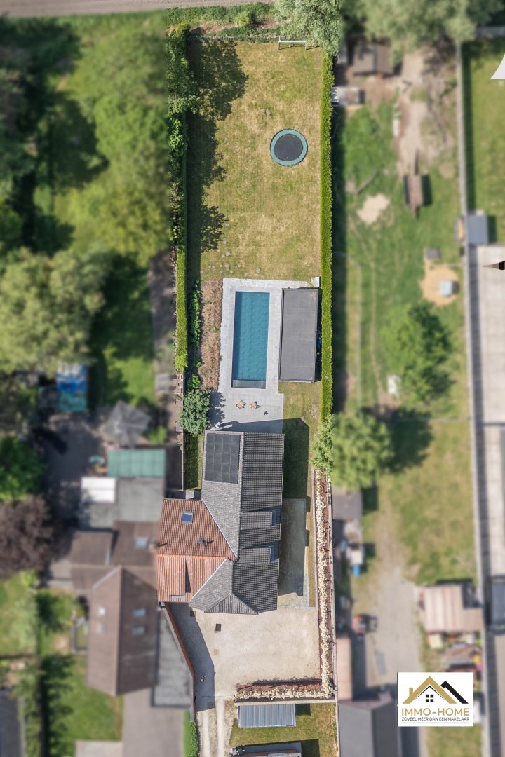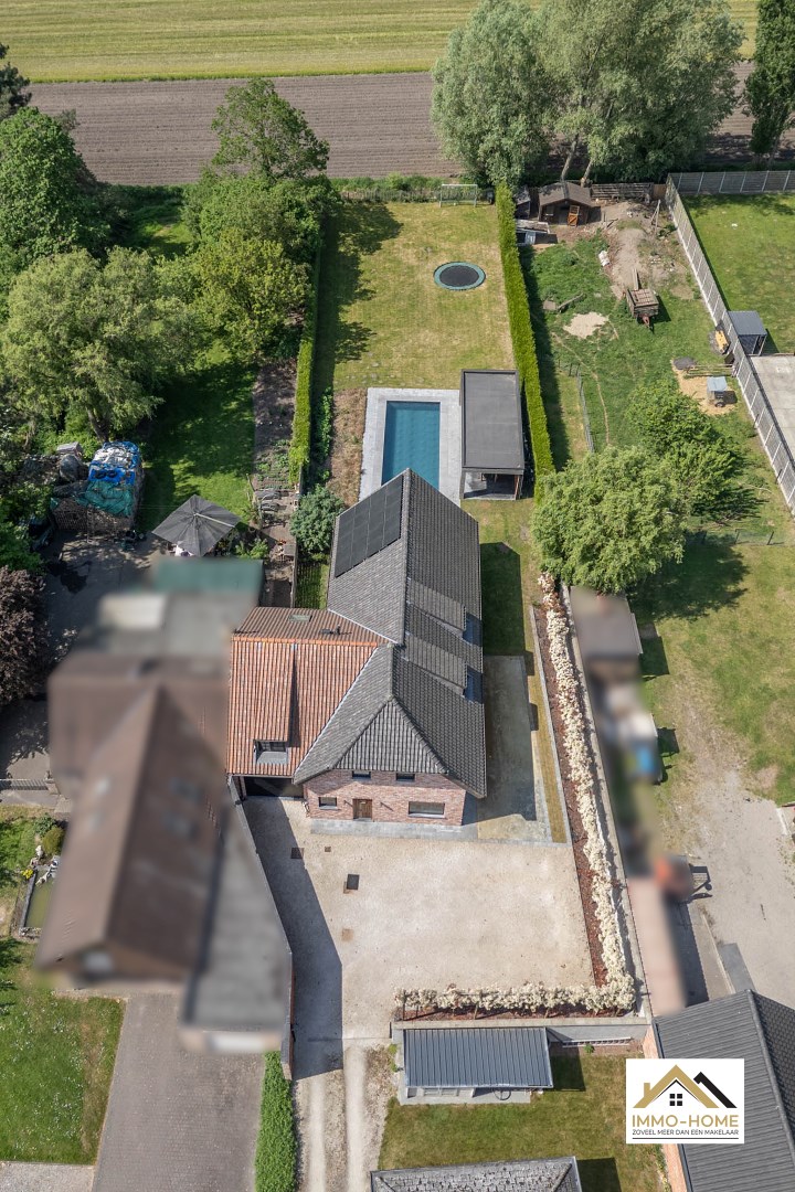 Schrijf u inIn het landelijke Lochristi, verscholen op een tweede bouwlijn, bevindt zich deze stijlvolle villa die onmiddellijk charmeert door de uitzonderlijke privacy en rust. Bij het betreden via een gemeenschappelijke weg van het domein voel je meteen de sereniteit en ruimte die deze eigendom te bieden heeft. De royale inkomhal met hoge traphal vormt het hart van de woning en geeft via elegante stalen glazen deuren toegang tot zowel de leefruimte als het bureau. Het bureau is ruim en praktisch ingericht, ideaal voor thuiswerk of rustige momenten. De leefruimte is licht en open, met een gezellige zithoek en een moderne, volledig uitgeruste keuken met centraal kookeiland. Aansluitend bevindt zich de eethoek, die uitkijkt op de tuin en het uitnodigende zwembad – een plek waar binnen en buiten naadloos in elkaar overvloeien. Vanuit de living bereik je een ruime wasplaats met doorgang naar de garage en de tuin, wat zorgt voor extra praktisch comfort. Op de bovenverdieping bevinden zich drie volwaardige slaapkamers, elk met grote ramen die zorgen voor een overvloed aan natuurlijk licht. Verder is er een apart toilet en een ruime badkamer met inloopdouche, ligbad en dubbel lavabomeubel. De masterbedroom bevindt zich in een afzonderlijke vleugel, en beschikt over een royale dressing en een eigen badkamer met toilet, douche en dubbel lavabomeubel – een echte privé-oase. Buiten geniet je van een sfeervol overdekt terras, ideaal voor zwoele zomeravonden, én een ruim zonneterras met zicht op het prachtige zwembad. Het houten poolhouse biedt een gezellige plek om te genieten van bbq en gezellig tafelen en is voorzien van een berging voor zwembadonderhoud en tuingerief. De woning kijkt uit over de achterliggende akkers – een adembenemend decor dat je elke dag opnieuw tot rust brengt. Extra troeven zijn de petanquebaan, meerdere parkeerplaatsen op de oprit en de 20 zonnepanelen op het dak die bijdragen aan een duurzame energievoorziening. Een buitengewone woonbeleving dankzij de doordachte indeling, overvloedige lichtinval, luxueuze afwerking en unieke ligging in het groen. Inschrijven voor bezoekdag op zaterdag 24/05 via mail naar tommy@immo-home.be, geen telefonische inschrijvingen! Volg ons op Fb en Insta. Voor meer info: www.immo-home.be. GRATIS SCHATTING & GRATIS FINANCIEEL ADVIES