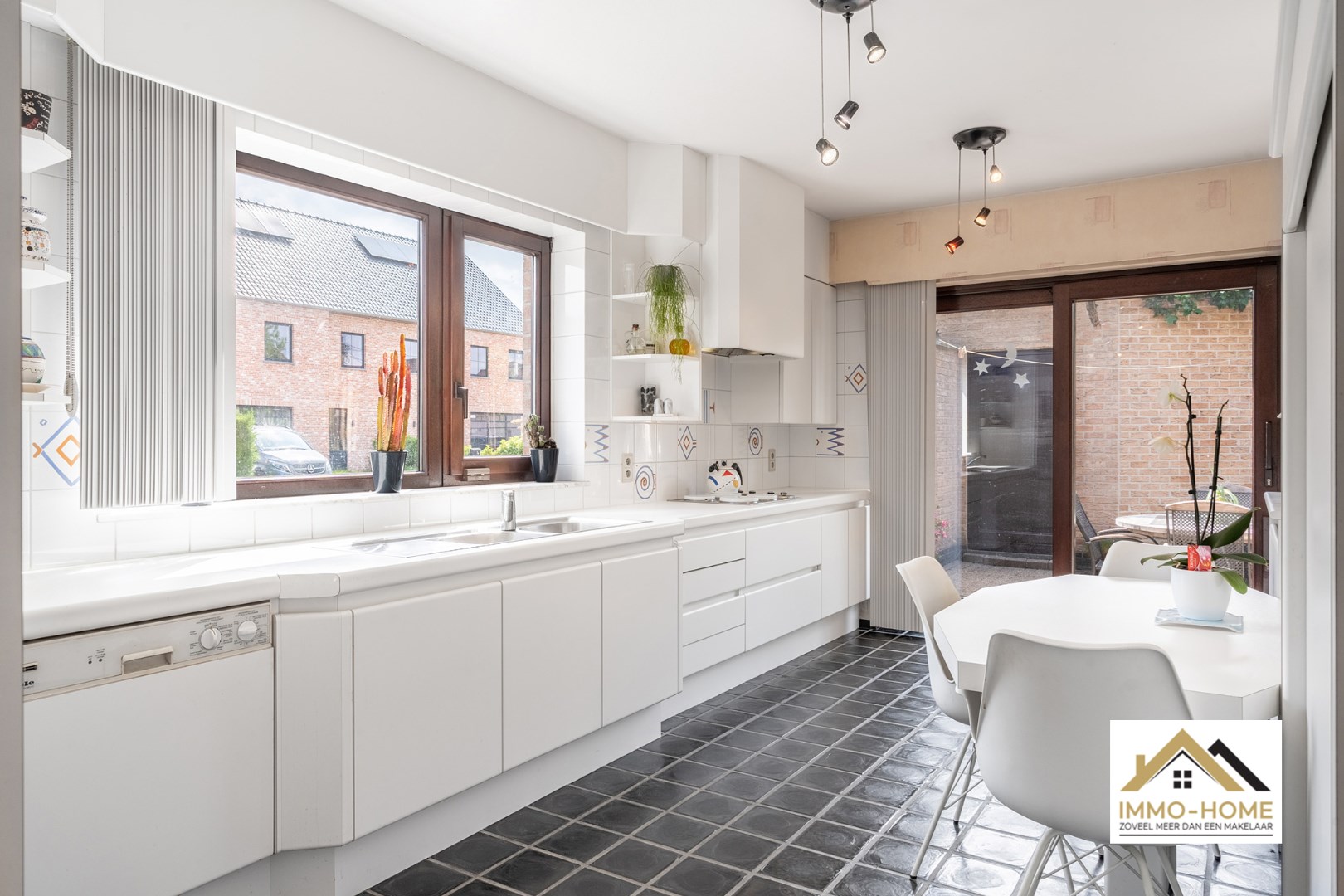 Schrijf u inDeze prachtige woning vinden we terug in een gezellige straat, vlot bereikbaar maar toch weg van de drukte, op de rand van Lochristi. Je wordt ontvangen in een ruime karakteristieke inkomhal met gastentoilet, en zo kom je verder tot in de leefruimte die overvloedig is voorzien van invallend daglicht en dus ook heel sterk verbonden is met de omringende tuin. De zithoek is visueel afgescheiden van de eethoek door een stijlvolle haard, waardoor het steeds knus en gezellig aanvoelt ook al zijn de ruimtes groot. De aanpalende keuken is praktisch ingericht, eveneens met aandacht voor connectie met de buitenwereld. De net ernaast gelegen koele berging is uiteraard leuk meegenomen, en het feit dat je zowel vanuit de keuken als de leefruimte via schuiframen naar het terras kan is zeker een plus. Helemaal achterin de woning bevindt zich nog een ruim bureel, ook met zicht op de tuin. Op de eerste verdieping vinden we rond de overloop drie mooie lichtrijke slaapkamers terug, net als een badkamer met ligbad en dubbele lavabo. Een tweede badkamer met douche vervolledigt het plaatje. Bovenop dit alles is voorzien in een heel ruime opbergzolder. Naast de woning beschik je over een ruime dubbele garage met automatische sectionaalpoorten, en hier is naast plaats voor twee wagens ook nog extra opbergruimte voorhanden. Genieten van het buitenleven kan je in de prachtig aangelegde tuin, volledig afgesloten van de straatkant. Tot rust komen doe je ongetwijfeld op de mooie vlonder over de leuke waterpartij ! Inschrijvingen voor bezoek via mail naar justine@immo-home.be, geen telefonische inschrijvingen! Volg ons op Fb en insta. Voor meer info: www.immo-home.be GRATIS SCHATTING GRATIS FINANCIEEL ADVIES