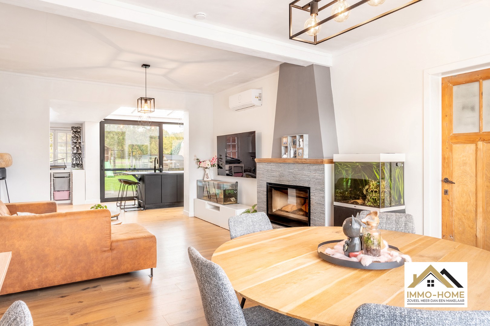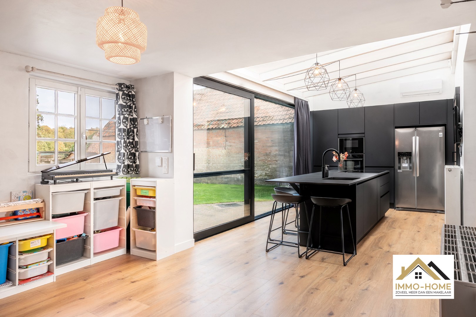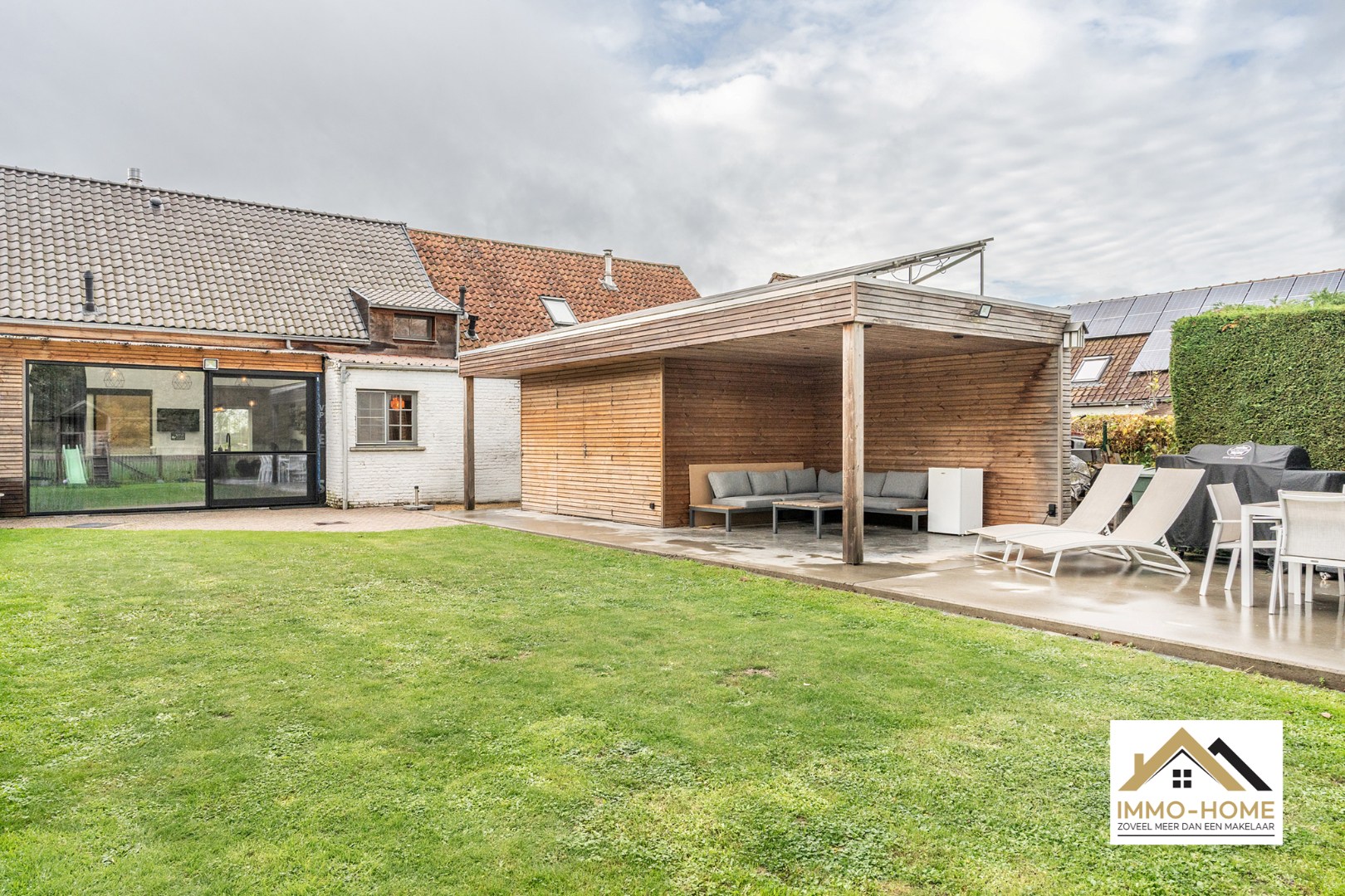 Schrijf u inOp zoek naar een mooie instapklare woning in een groene omgeving? Zoek niet verder! De ruime inkomhal, voorzien van een vestiaire/berging, onthult meteen de eigenheid van dit pand: de inrichting is een smaakvolle combinatie van authentieke elementen en moderne accenten. De volledig open leefruimte bestaat uit een gezellige eet- en zithoek vooraan en een prachtige keuken achteraan. Het riante kookeiland vormt het hart van die keuken, maar het fenomenale uitzicht op de tuin en de achterliggende bossen van Puyenbroeck, zijn minstens even indrukwekkend. Dankzij de gevelbrede en hoge raampartij heb je directe toegang tot de tuin. Naast de keuken bevindt zich een ruime leefhoek die polyvalent kan ingezet worden, en een extra berging/opslagplaats. Ook de stijlvolle badkamer bevindt zich op het gelijkvloers. Het grote ligbad is een echte blikvanger, net als de riante inloopdouche met infraroodstraler. Op de eerste verdieping biedt de royale overloop, met ingewerkte dressing, toegang tot drie mooie slaapkamers en een extra sanitaire ruimte met extra berging. Bijkomende bergruimte is ook nog voorzien op zolder en in het ruime tuinhuis. In de tuin vinden we een gezellige lounge, van waaruit je geniet van het sublieme landschap. Tot slot voorzie je in je eigen energie dankzij de zonnepanelen op het dak van het tuinhuis. Bezoekdag: 15/11:Inschrijven via mail naar tommy@immo-home.be, geen telefonische inschrijvingen! Volg ons op Fb en Insta. Voor meer info: www.immo-home.be. GRATIS SCHATTING & GRATIS FINANCIEEL ADVIES