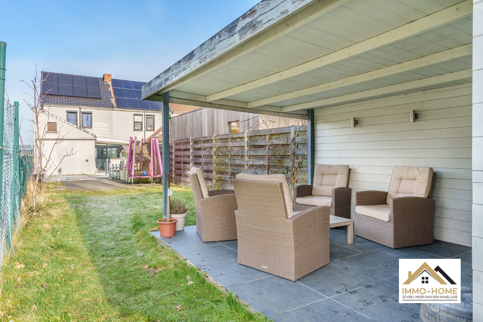 Deze mooie woning ontvangt je in een ruime inkomhal met plaats voor een vestiaire. Zo beland je in een open leefruimte, met een gezellige eet- en zithoek. Een vrije doorgang brengt je tot in de praktische keuken, met veel opbergmogelijkheden en alle moderne kookcomfort. Helemaal achterin de woning bevindt zich de badkamer, die voorzien is van zowel een ligbad als een riante inloopdouche. In het verlengde van de leefruimte is er bovendien een leuke veranda, met zicht op de achtergelegen tuin. Op de eerste verdieping bevinden zich twee heel ruime slaapkamers, en op de erboven gelegen zolderverdieping is een riante derde slaapkamer ingericht. In de tuin is het zorgeloos genieten van het buitenleven, en dat kan tot in de late uurtjes in de grote lounge. Het tuinhuis biedt bovendien extra opbergruimte. Bezoekdag: 28/02 :Inschrijven via mail naar tommy@immo-home.be, geen telefonische inschrijvingen! Volg ons op Fb en Insta. Voor meer info: www.immo-home.be. GRATIS SCHATTING & GRATIS FINANCIEEL ADVIES