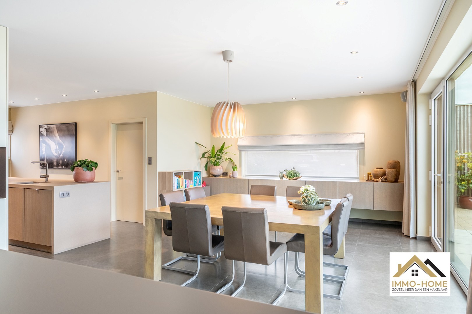 Dit pand is zonder meer een zeldzame buitenkans voor wie op zoek is naar modern wonen in een bijzondere omgeving. De statige inkomhal verraadt al meteen de status van de woning : hoogwaardige afwerking op de voorgrond, een magistraal agrarisch uitzicht in de verte. Een verborgen schuifdeur brengt je tot in een heel lichtrijke volledig open leefruimte, waar de gevelbrede raampartijen een uitzonderlijk uitzicht bieden op de eigen grote tuin en het achterland, en dit het jaar rond. De keuken is van een heel hoog niveau, en voorzien van kwaliteitsvolle inbouwtoestellen en een riant eiland. Net zoals in de grote zithoek wordt ook hier de visuele aandacht steeds naar buiten getrokken. Een centraal geplaatste gashaard zorgt tijdens de wintermaanden bovendien voor een bijzondere sfeer. Naast de keuken bevindt zich nog een wasplaats met wandhoge maatkasten, en een apart toilet. Vooraan de woning vinden we de badkamer met een riante inloopdouche, en een eerste slaapkamer. Op de eerste verdieping is er voorzien in nog twee heel ruime slaapkamers, een bureelruimte en een tweede toilet. De grote oprit biedt plaats aan meerdere wagens, en de mooie carport is daar zeker nog een extra troef. Genieten van het buitenleven kan in alle rust en stijl op de mooie terrassen, die eveneens via een poortje te bereiken zijn. Bezoekdag: 28/03: Inschrijven via mail naar tommy@immo-home.be, geen telefonische inschrijvingen! Volg ons op Fb en Insta. Voor meer info: www.immo-home.be. GRATIS SCHATTING & GRATIS FINANCIEEL ADVIES