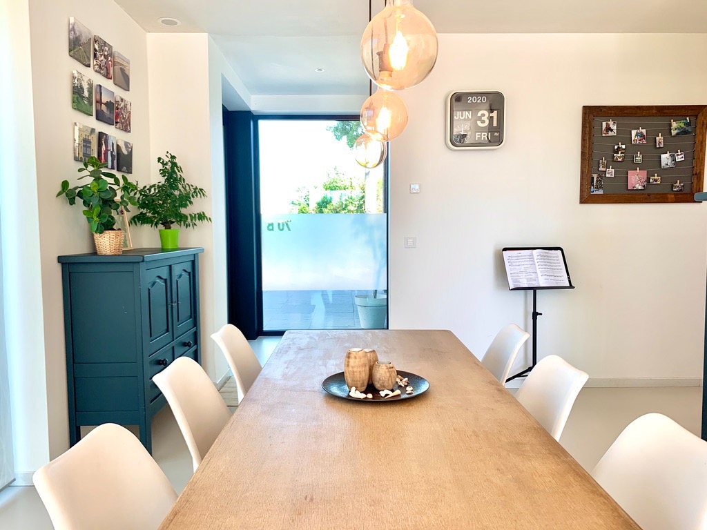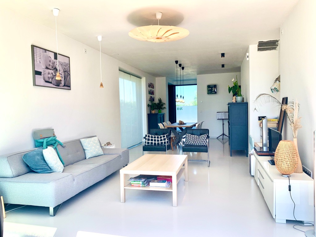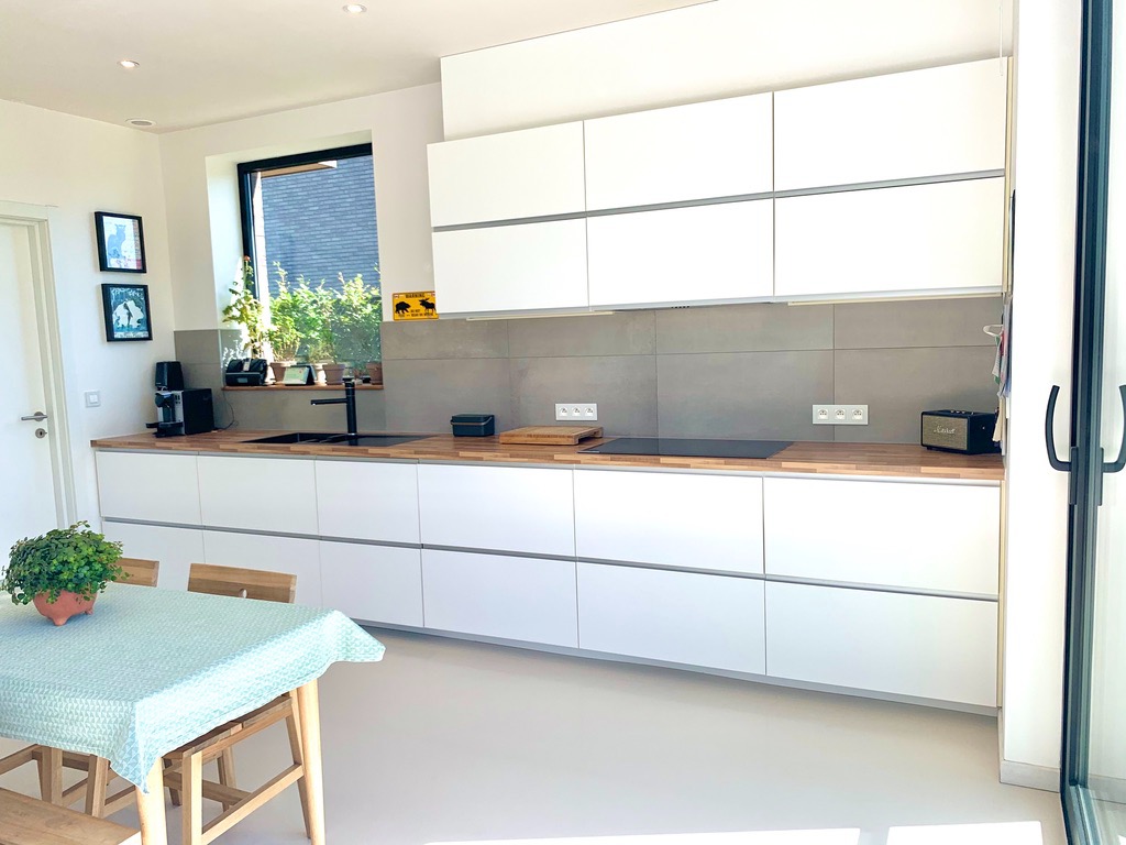 Bij het binnenkomen via de pivoterende glazen alu-deur zal u versteld staan van het volume en de strakheid van de witte epoxy vloer met vloerverwarming en -koeling. In de inkom bevindt zich het gastentoilet, aansluitend de volumineuze woonkamer met open bureauruimte en aan de andere zijde de open keuken incl alle nodige toestellen. Zowel vanuit de woonkamer en de keuken kan u langs de grote hoogisolerende schuiframen naar het terras. Achter de keuken is een koele berging en een aparte inkom. U kan dan vanaf de carport overdekt naar binnen.
