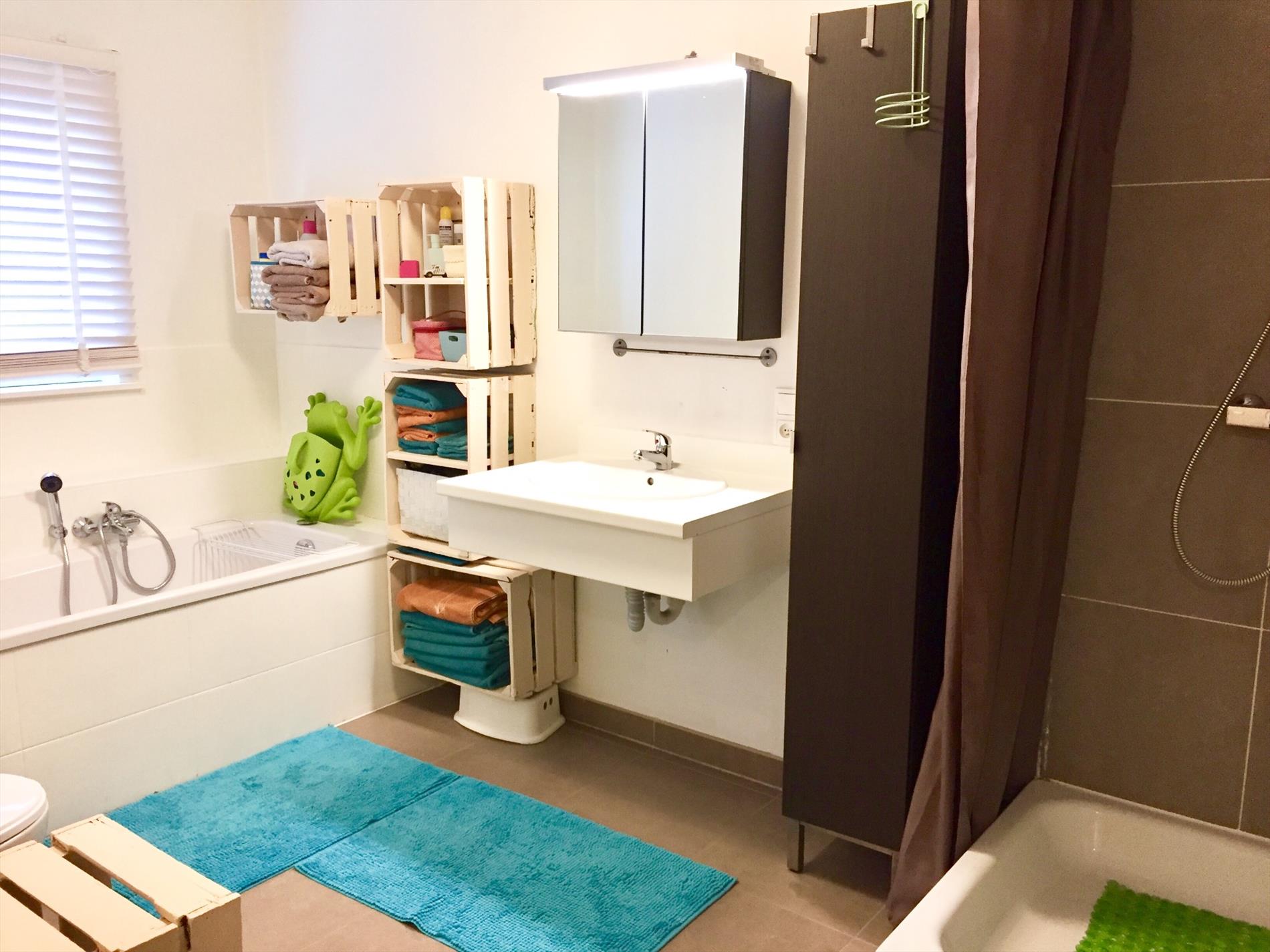 Op de bovenverdieping zijn 3 zeer ruime slaapkamers, waarvan 1 met een grote open dressing. De ruime badkamer is voorzien van een ligbad, aparte douche,lavabo-meubel en een 2de toilet. Van hieruit kan u ook rechtstreeks uw wasgoed naar de berging gooien. Via de traphal kan u ook op de bovengelegen zolder die volledig geïsoleerd is en u 2 slaapkamers van kan maken.