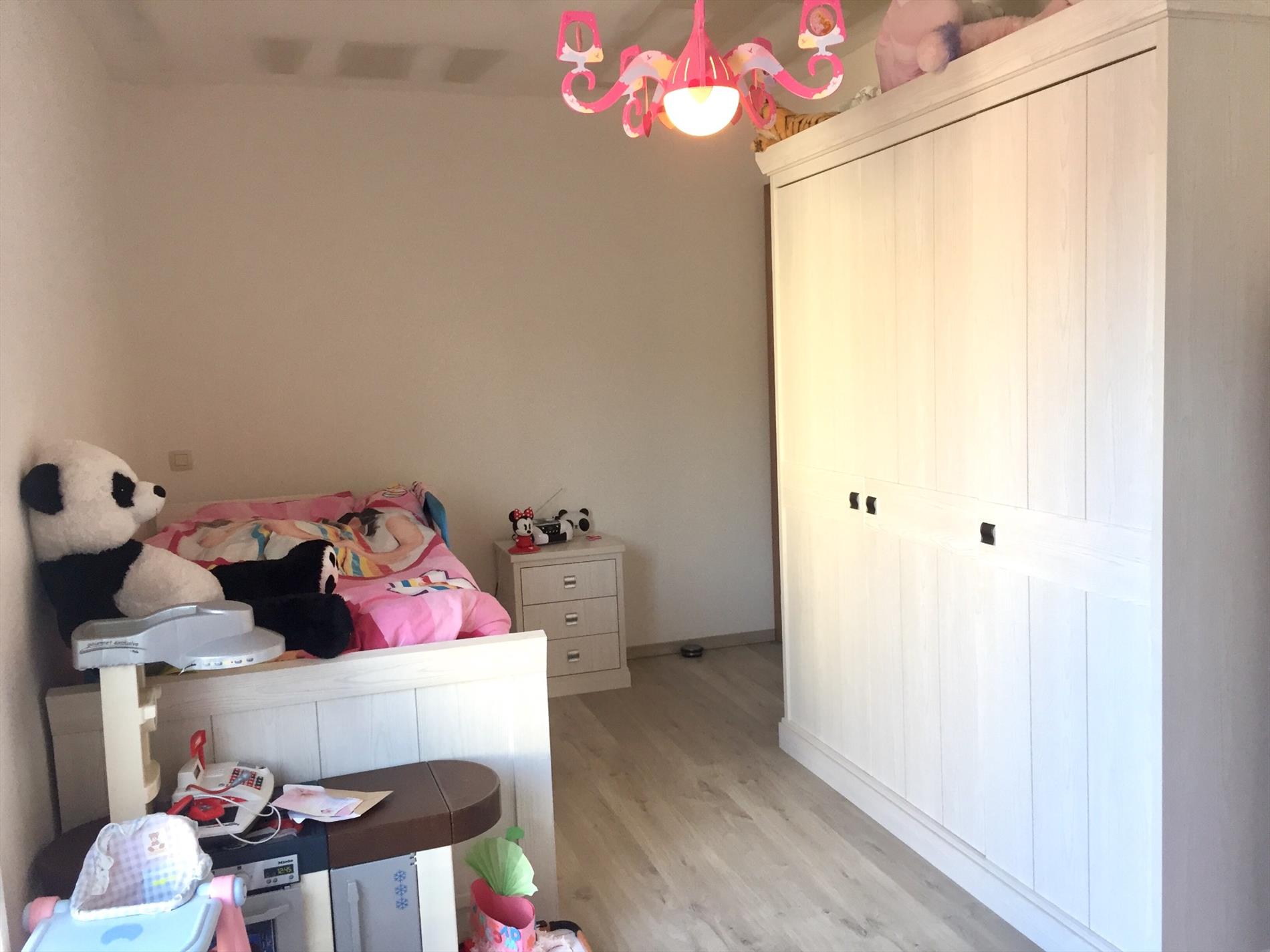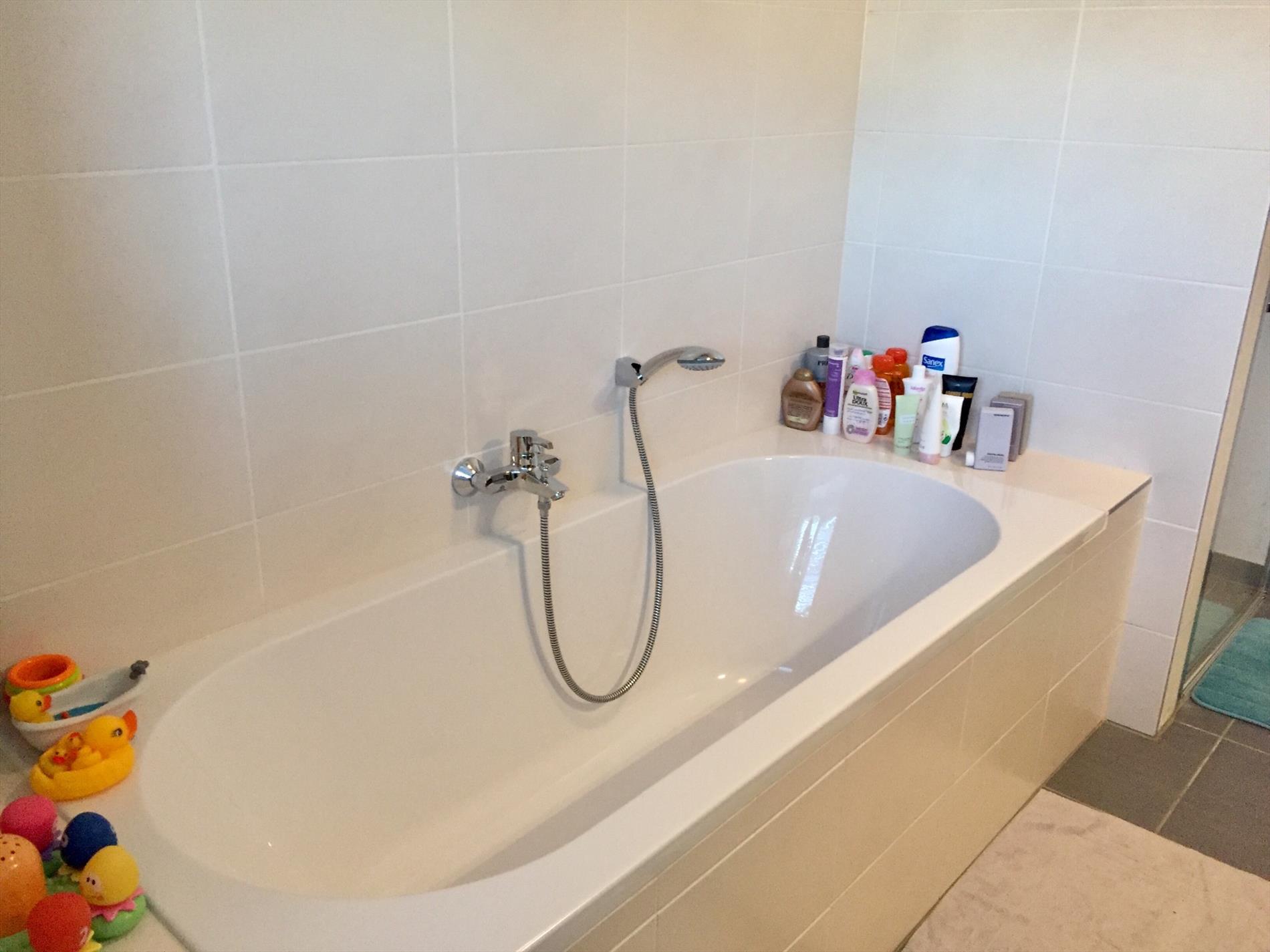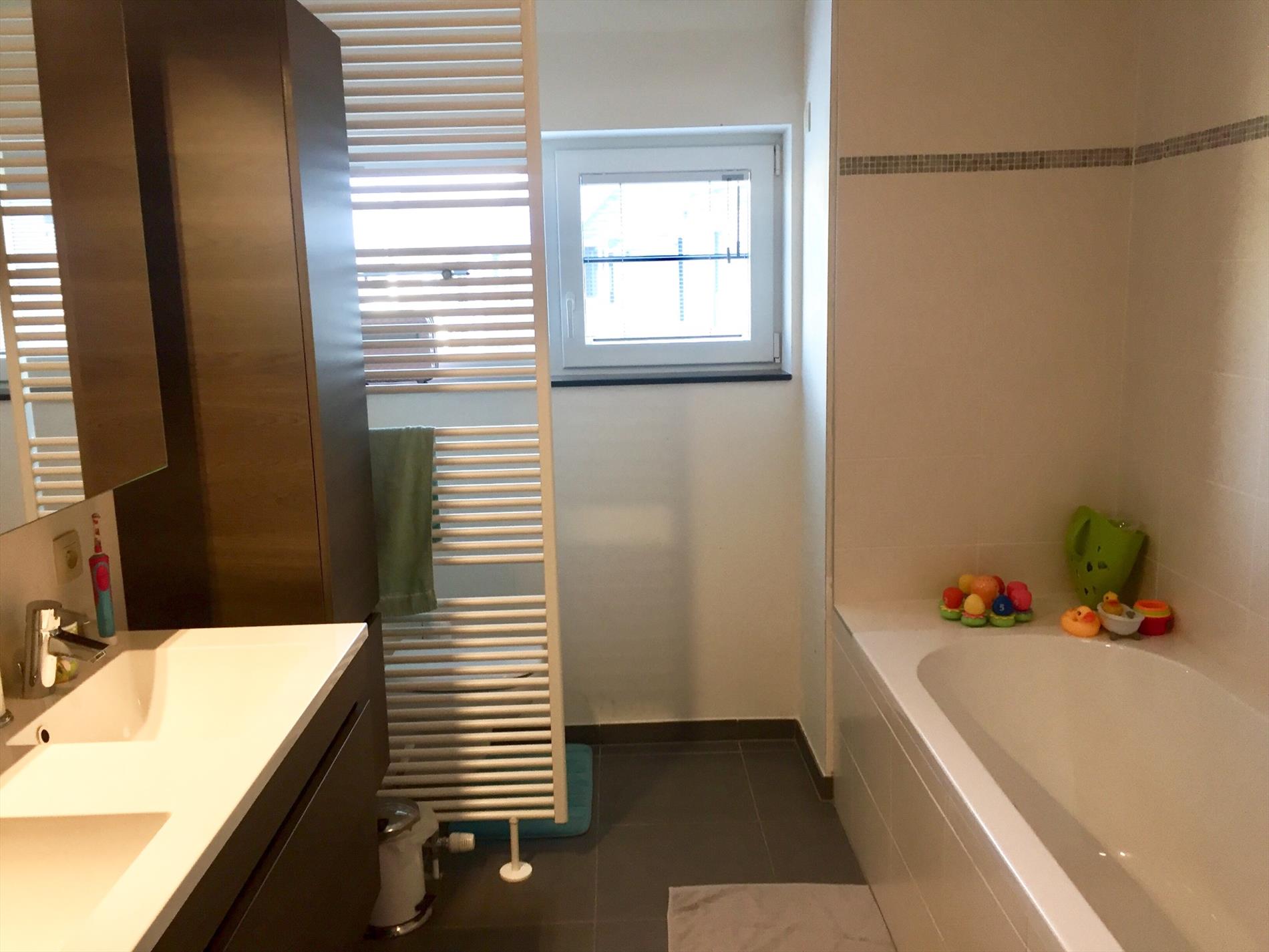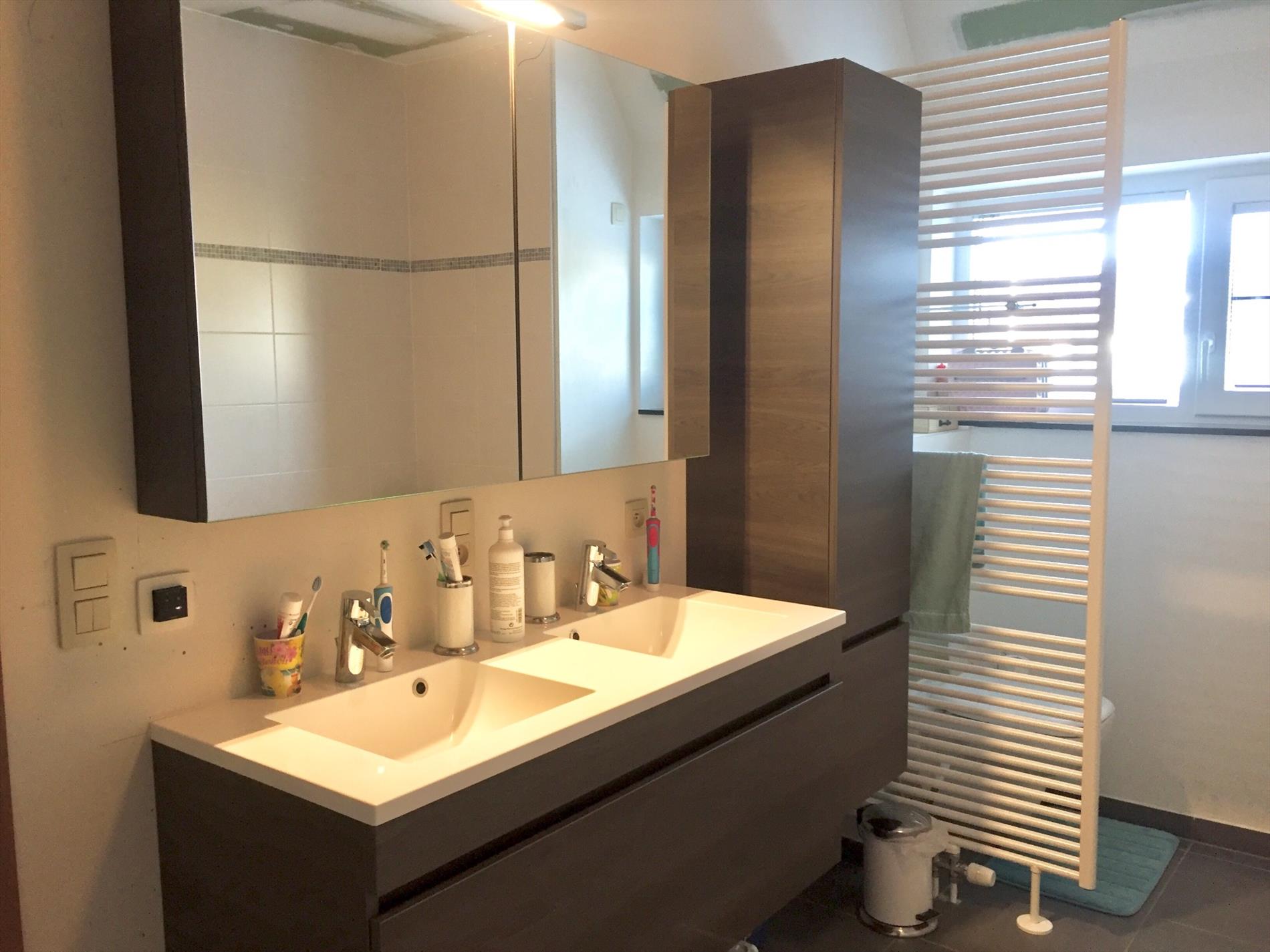 De bovenverdieping bereikt u via de 2de glazen stalen deur. Hier bevinden zich 3 ruime slaapkamers, een berging voor wasmachine en droogkast en een praktisch ingedeelde badkamer met groot ligbad, aparte douche, 2de toilet en dubbel lavabo-meubel. De zolder is volledig geïsoleerd.