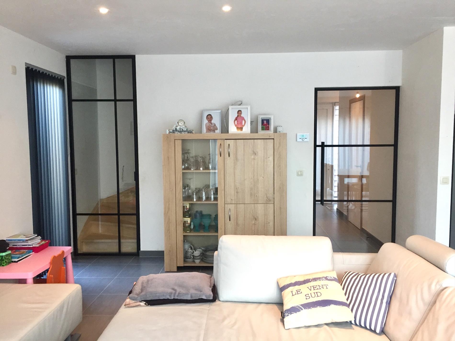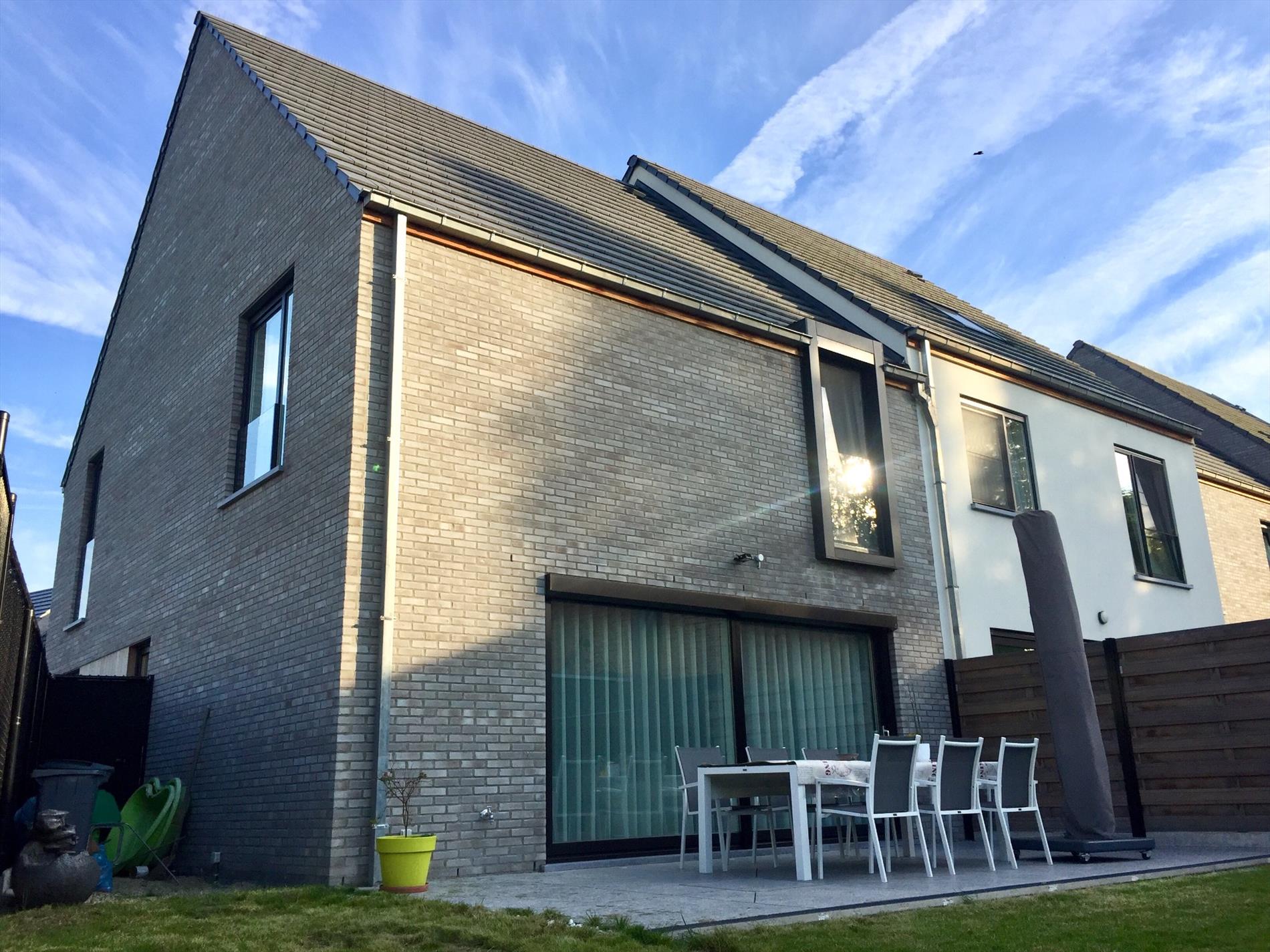 Schrijf u inDeze luxueus afgewerkte woning is een streling voor het oog. De buitengevel is zeer modern en strak afgewerkt met hout, zwarte afwerking rond de ramen en ook strak beveiligingsglas op de eerste verdieping.