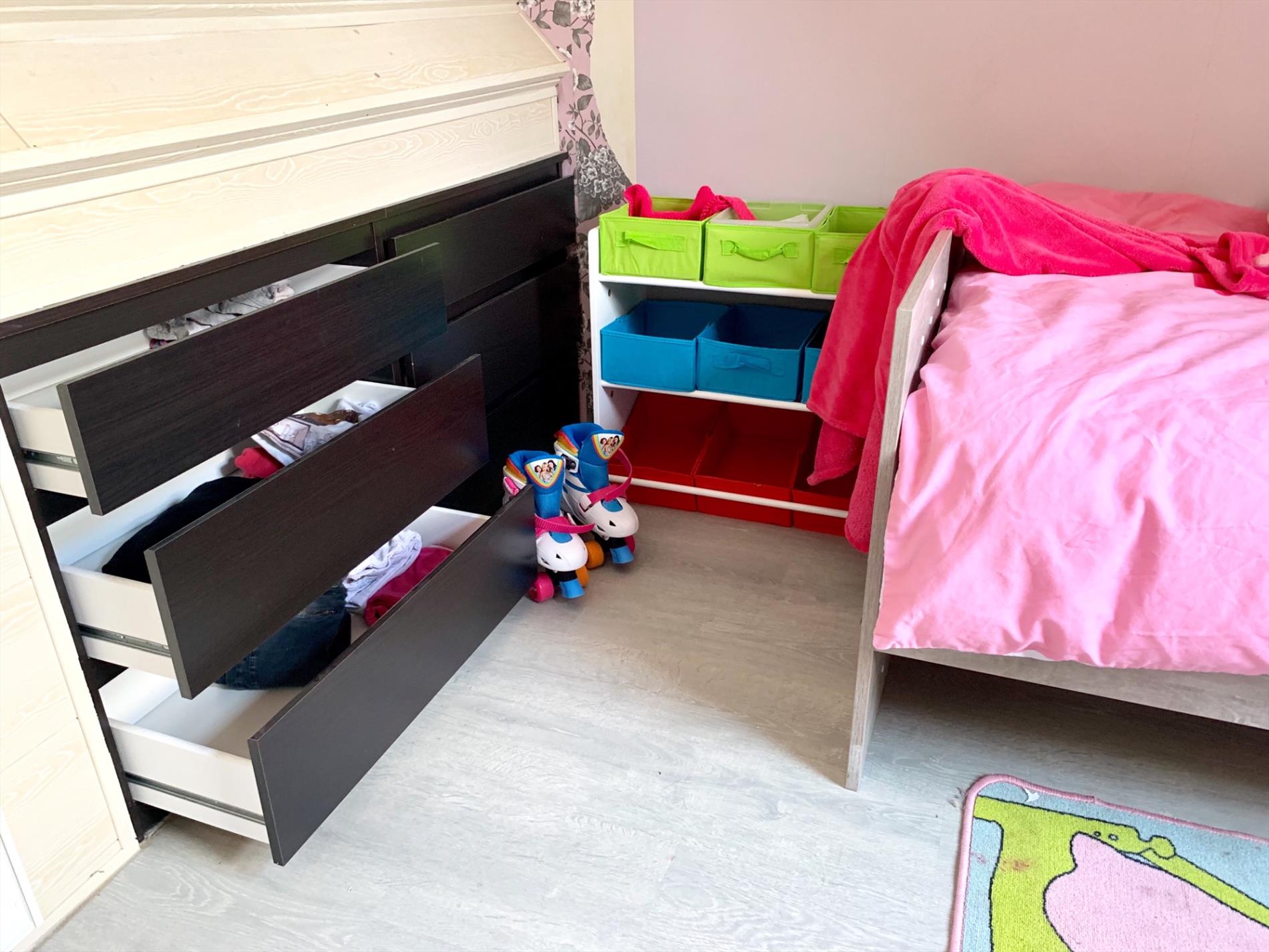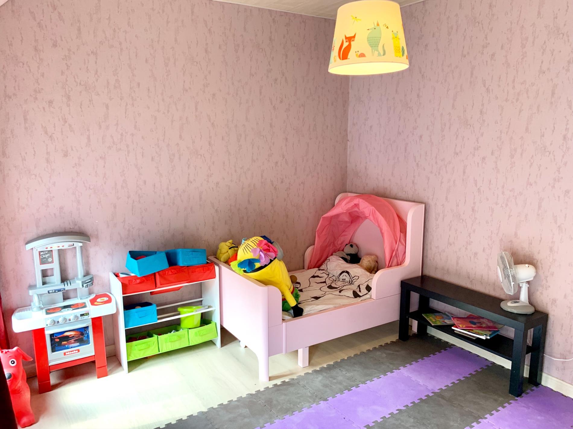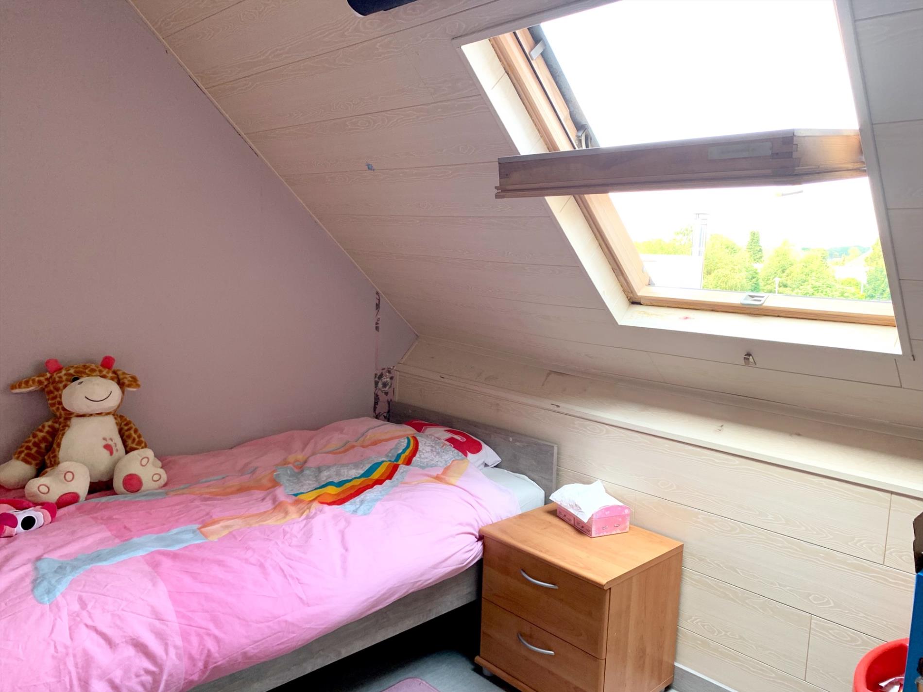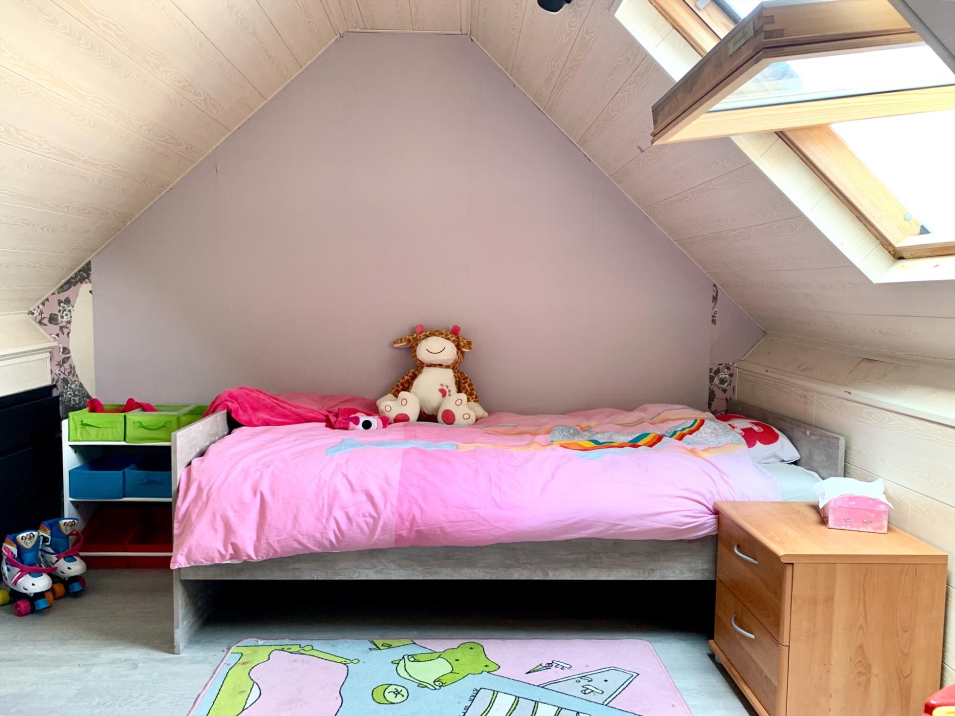 Op de 2de verdieping is de 3de slaapkamer met ingemaakte schuiven, nieuw velux raam en 2 extra opbergruimtes boven de trap.