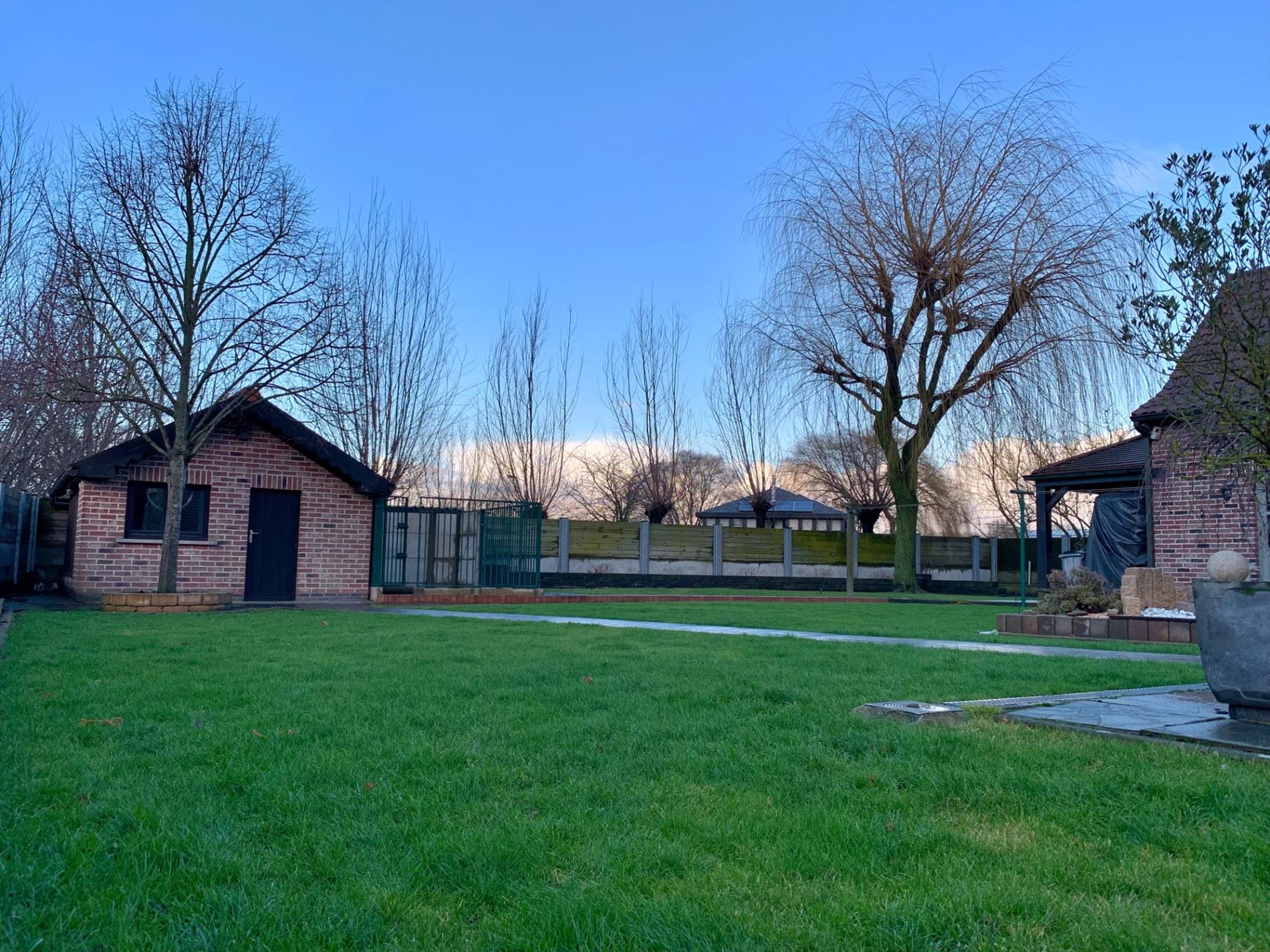 De tuin is fraai aangelegd en heeft nog een aparte tuinberging, incl een kolenopslagplaats, en 2 overdekte terrassen.