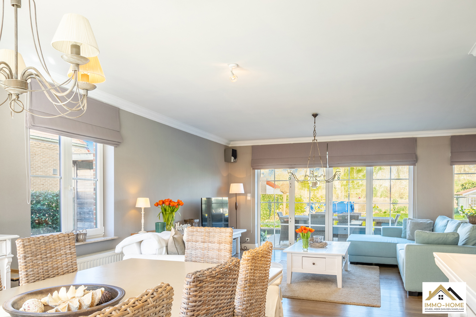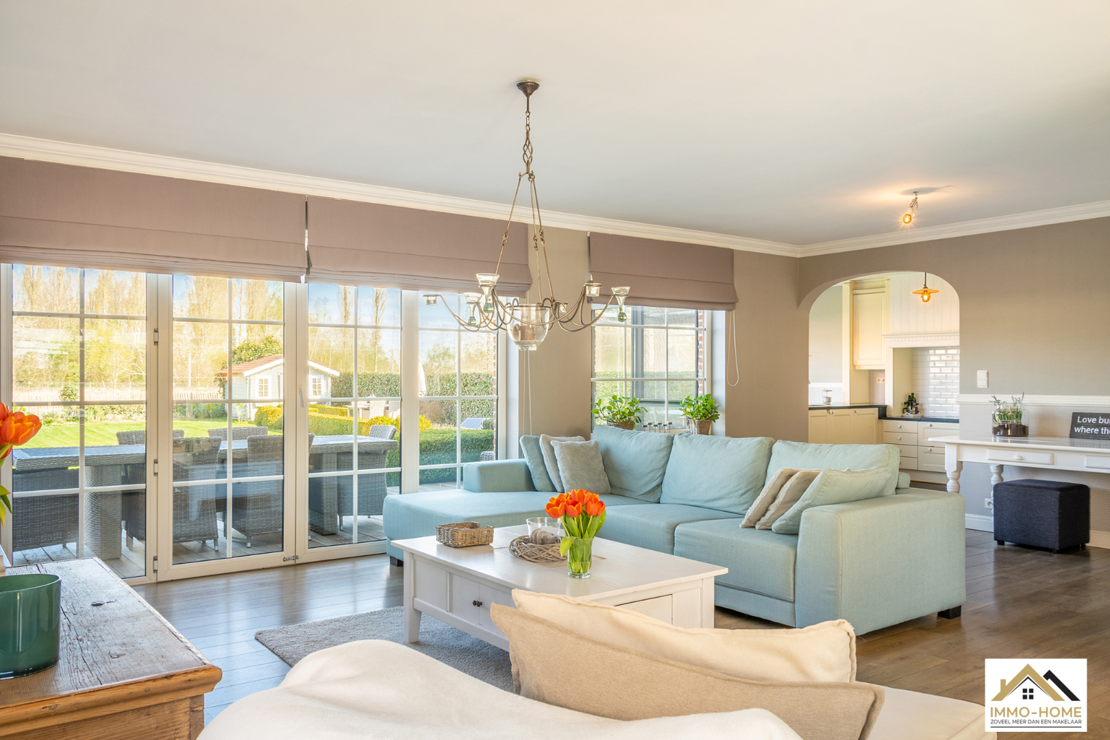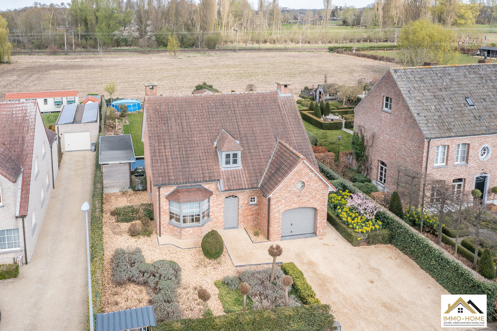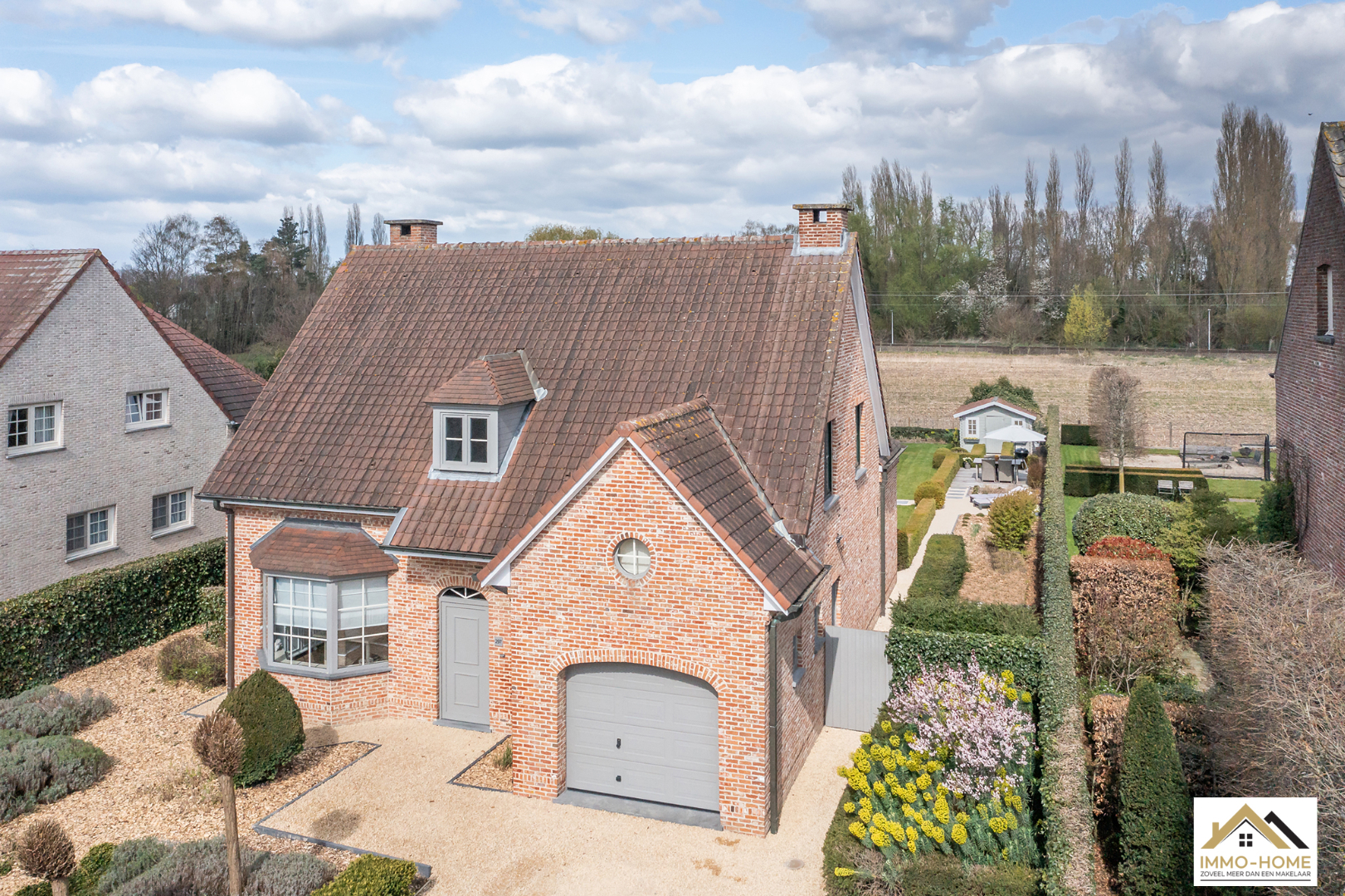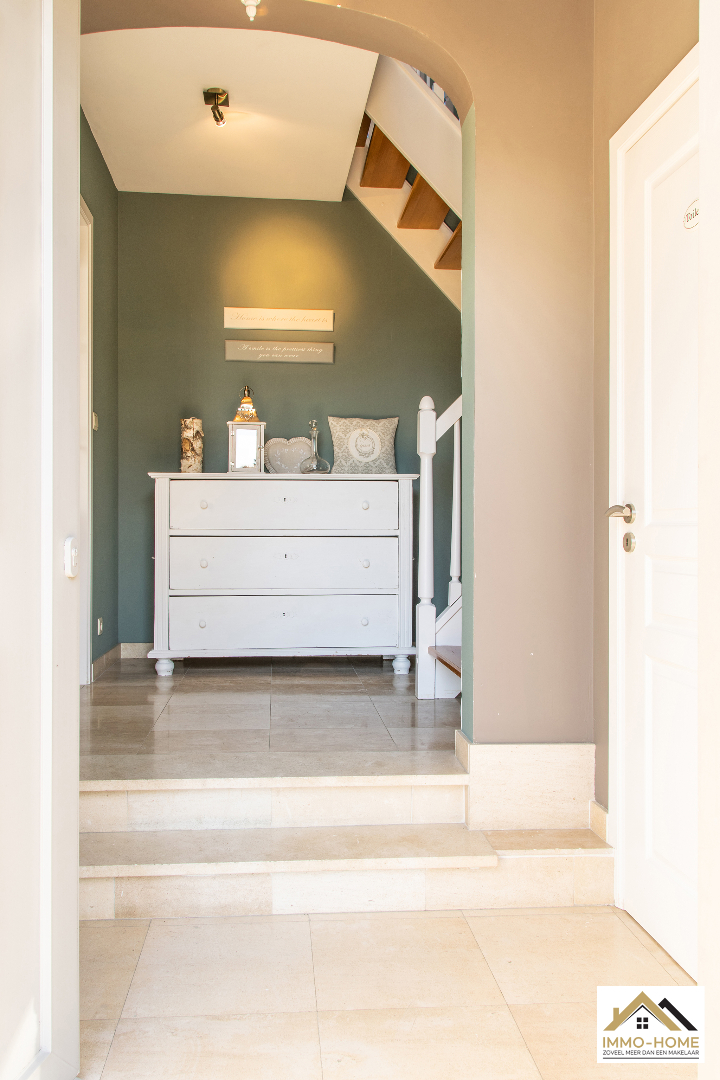 Schrijf u inDeze prachtige villa in landelijke stijl is goed bereikbaar en toch rustig gelegen. De statige inkomhal met gastentoilet en vestiaire begeleidt je naar een grote open L-vormige leefruimte die baadt in het licht. Door de erker vooraan lijkt het alsof je midden in de tuin zit. Achteraan zorgen de grote raampartijen ervoor dat je een fantastisch uitzicht hebt op de tuin en de landelijke omgeving. De aansluitende keuken heeft dezelfde troeven, landelijk en praktisch ingericht met een mooi open zicht op de omgeving. Via een schuifdeur kom je op het aangename terras met aanpalende lounge. Dit zijn plaatsjes waar je eindeloos kan genieten van het buitenleven. Via de keuken kom je in de garage met wasplaats, doucheruimte en een extra berging. Op de eerste verdieping beschik je rond de stijlvolle overloop over drie ruime slaapkamers en een badkamer met ligbad, douche en tweede toilet. Daarbovenop is er nog een grote bergzolder. In de tuin heb je naast een tweede terras ook nog een ruime tuinberging ter beschikking. Bezoekdag zaterdag 14/05: inschrijvingen via mail naar info@immo-home.be, geen telefonische inschrijvingen! Volg ons op Fb en insta. Voor meer info: www.immo-home.be