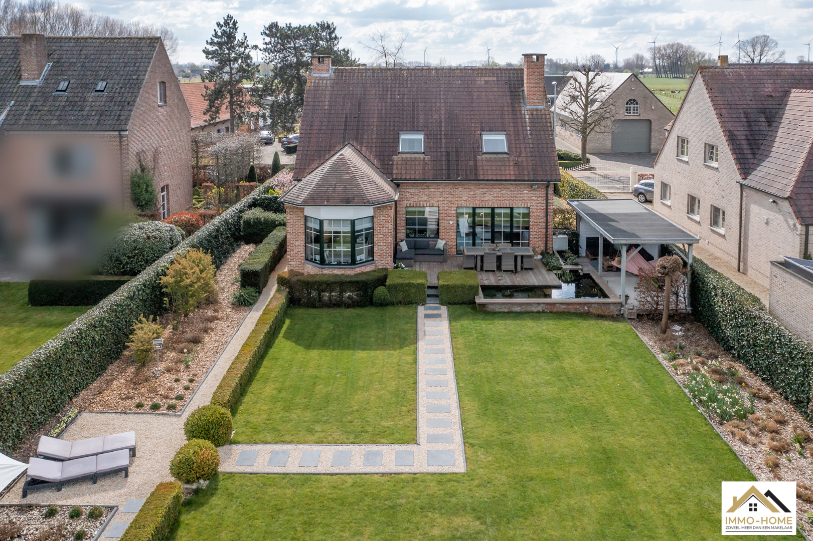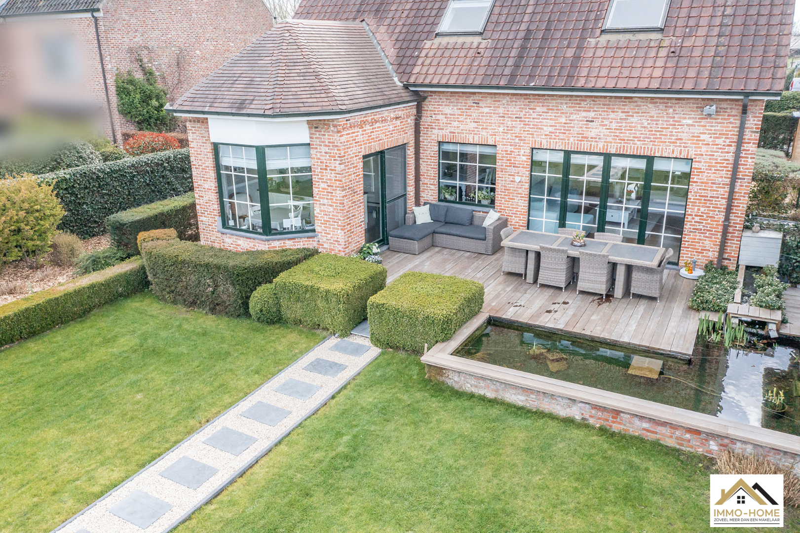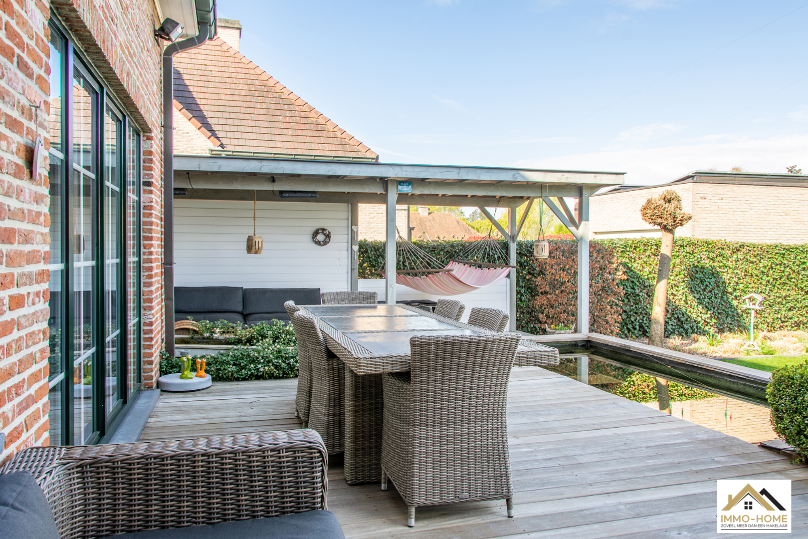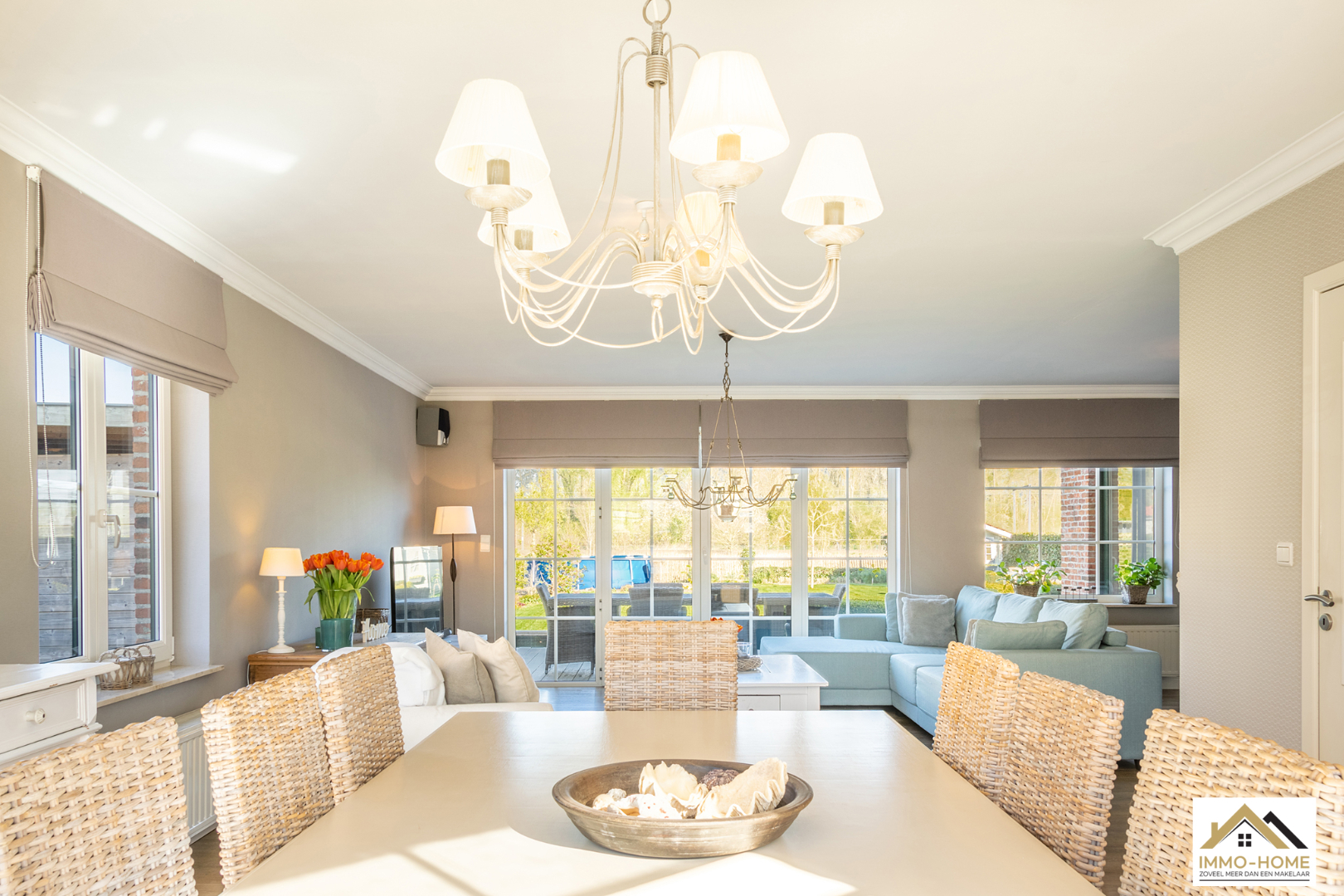 Schrijf u inDeze prachtige villa in landelijke stijl is goed bereikbaar en toch rustig gelegen. De statige inkomhal met gastentoilet en vestiaire begeleidt je naar een grote open L-vormige leefruimte die baadt in het licht. Door de erker vooraan lijkt het alsof je midden in de tuin zit. Achteraan zorgen de grote raampartijen ervoor dat je een fantastisch uitzicht hebt op de tuin en de landelijke omgeving. De aansluitende keuken heeft dezelfde troeven, landelijk en praktisch ingericht met een mooi open zicht op de omgeving. Via een schuifdeur kom je op het aangename terras met aanpalende lounge. Dit zijn plaatsjes waar je eindeloos kan genieten van het buitenleven. Via de keuken kom je in de garage met wasplaats, doucheruimte en een extra berging. Op de eerste verdieping beschik je rond de stijlvolle overloop over drie ruime slaapkamers en een badkamer met ligbad, douche en tweede toilet. Daarbovenop is er nog een grote bergzolder. In de tuin heb je naast een tweede terras ook nog een ruime tuinberging ter beschikking. Bezoekdag zaterdag 14/05: inschrijvingen via mail naar info@immo-home.be, geen telefonische inschrijvingen! Volg ons op Fb en insta. Voor meer info: www.immo-home.be