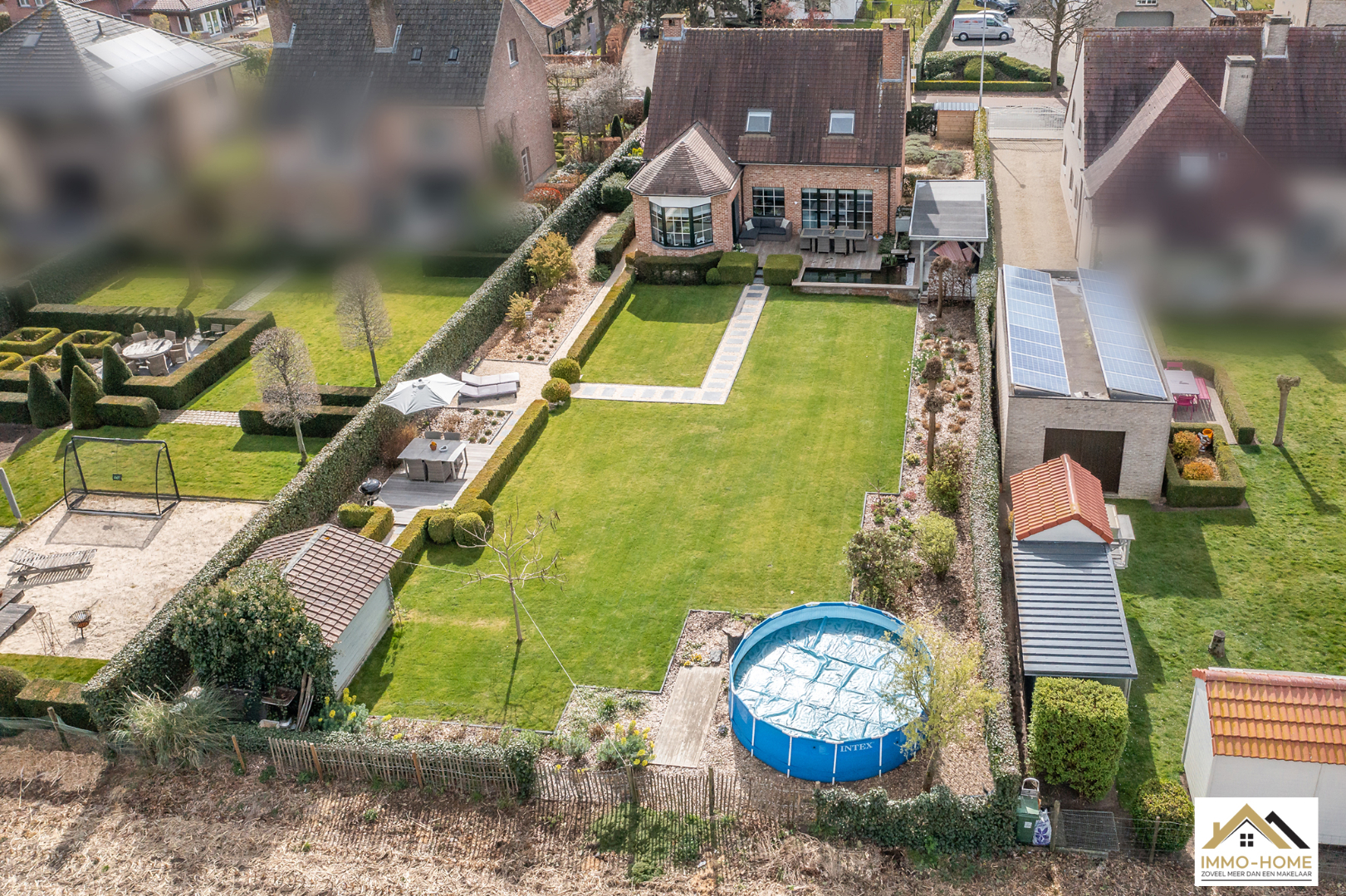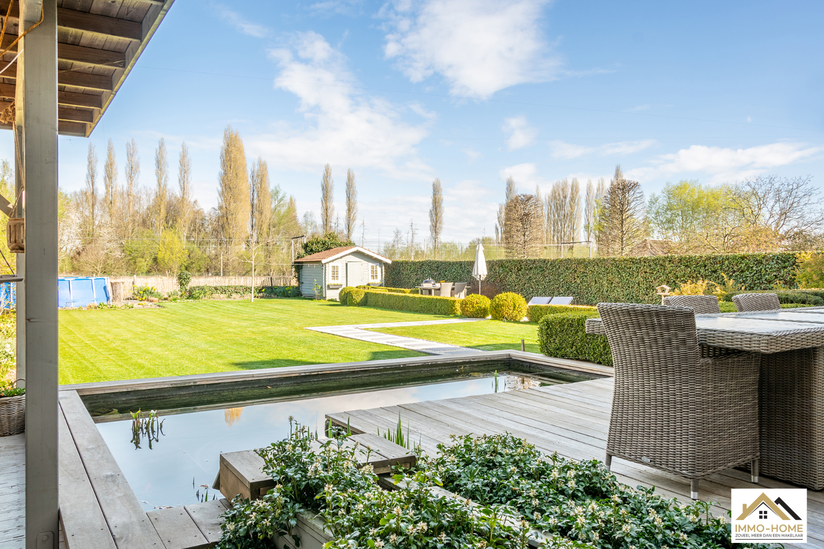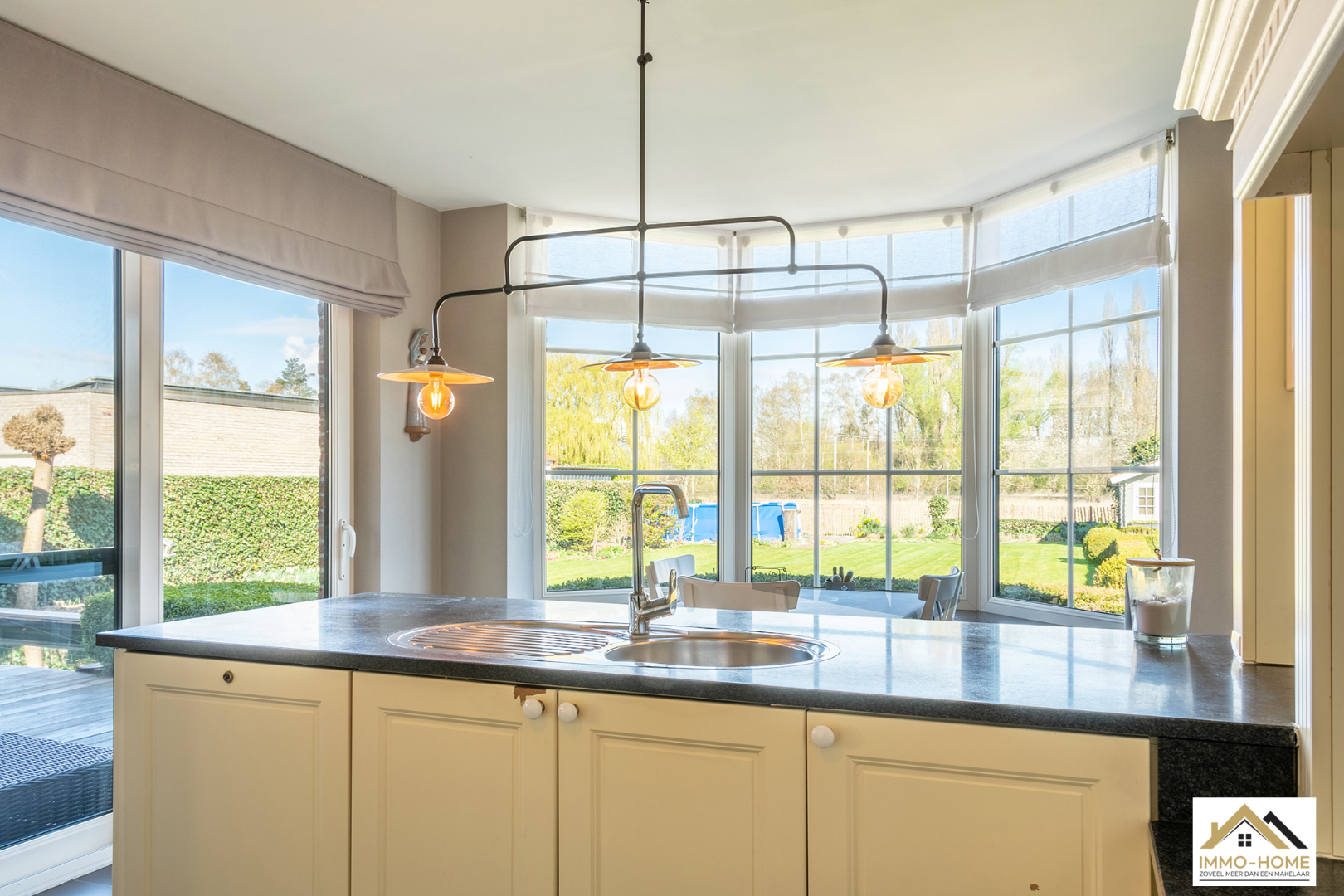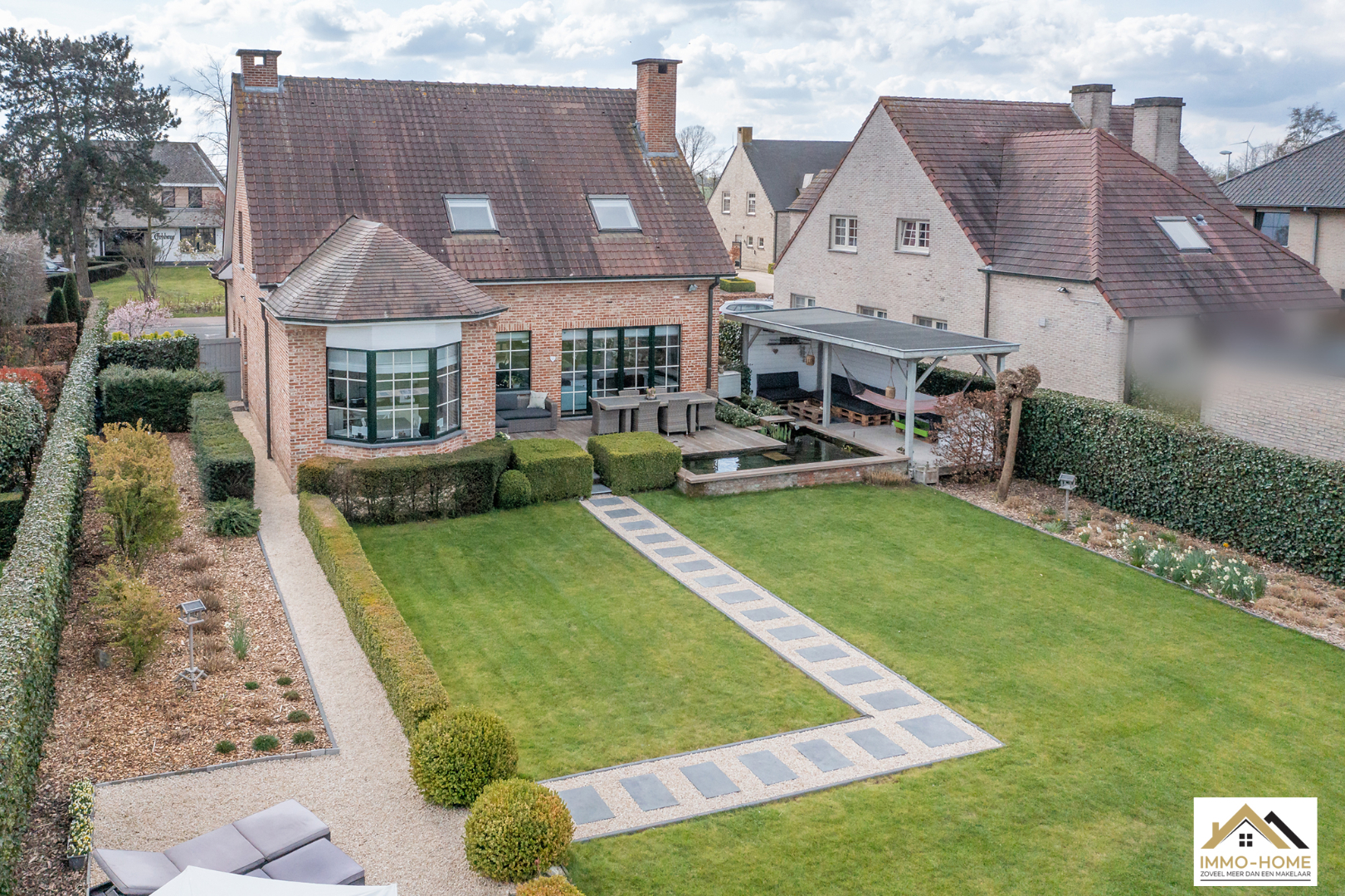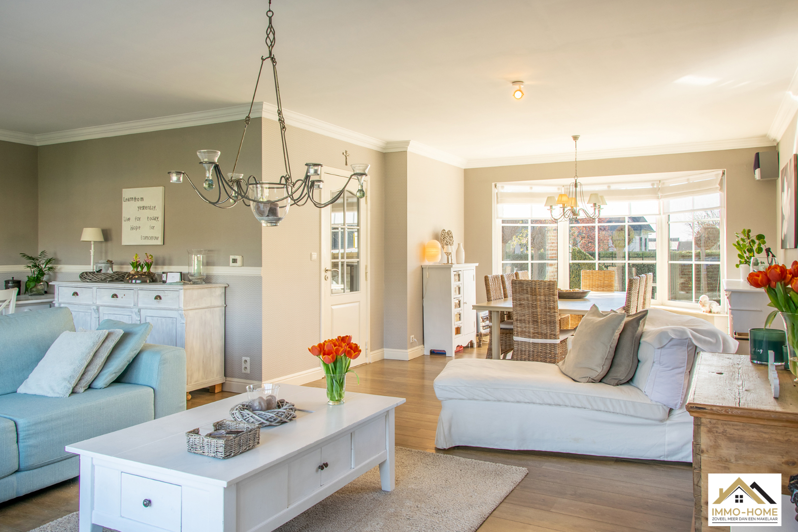 Schrijf u inDeze prachtige villa in landelijke stijl is goed bereikbaar en toch rustig gelegen. De statige inkomhal met gastentoilet en vestiaire begeleidt je naar een grote open L-vormige leefruimte die baadt in het licht. Door de erker vooraan lijkt het alsof je midden in de tuin zit. Achteraan zorgen de grote raampartijen ervoor dat je een fantastisch uitzicht hebt op de tuin en de landelijke omgeving. De aansluitende keuken heeft dezelfde troeven, landelijk en praktisch ingericht met een mooi open zicht op de omgeving. Via een schuifdeur kom je op het aangename terras met aanpalende lounge. Dit zijn plaatsjes waar je eindeloos kan genieten van het buitenleven. Via de keuken kom je in de garage met wasplaats, doucheruimte en een extra berging. Op de eerste verdieping beschik je rond de stijlvolle overloop over drie ruime slaapkamers en een badkamer met ligbad, douche en tweede toilet. Daarbovenop is er nog een grote bergzolder. In de tuin heb je naast een tweede terras ook nog een ruime tuinberging ter beschikking. Bezoekdag zaterdag 14/05: inschrijvingen via mail naar info@immo-home.be, geen telefonische inschrijvingen! Volg ons op Fb en insta. Voor meer info: www.immo-home.be