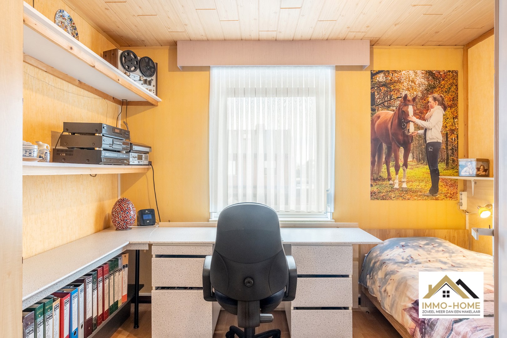 Schrijf u inDeze perfect onderhouden en instapklare woning is zeer rustig gelegen, in een mooie wijk met veel landelijk groen in de onmiddellijke omgeving. Via een mooie inkomhal met gastentoilet en ingemaakte vestiaire kom je tot in de lichtrijke leefruimte. Het grote schuifraam achteraan zorgt voor een aangenaam contact met het terras en de tuin, waardoor deze als een verlengstuk van de living aanvoelen. De aanpalende keuken is voorzien van alle comfort, en ook hier heb je een mooi zicht op de tuin. Verderop kom je tot in de grote garage, waar ruimte in overvloed is voor extra opslag (en indien gewenst, kan hier zelfs een bureelruimte worden ingericht). Op de eerste verdieping zijn er drie mooie slaapkamers aanwezig, en een leuke badkamer met douche en een tweede toilet. Via een vaste trap bereik je tot slot de zolderverdieping, met een vierde slaapkamer. Extra opbergruimte is er in het tuinhuis, en in de verschillende zithoekjes van de tuin is het heerlijk genieten van het buitenleven.