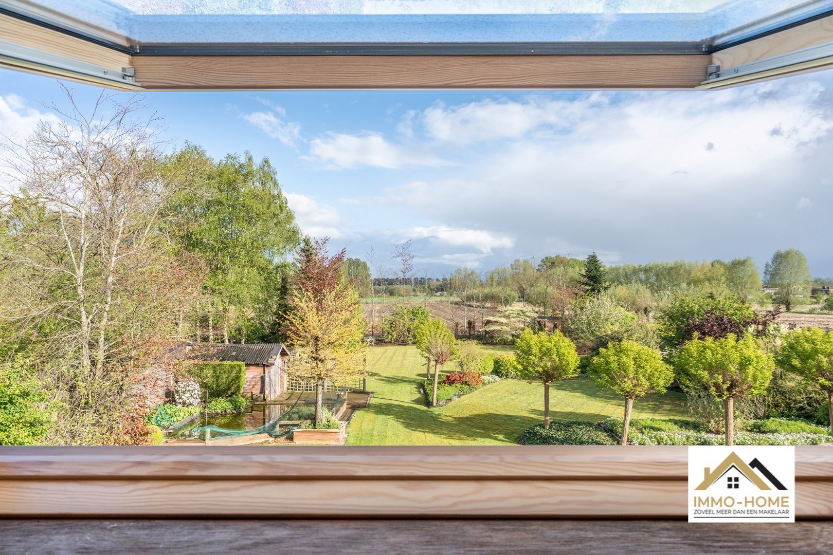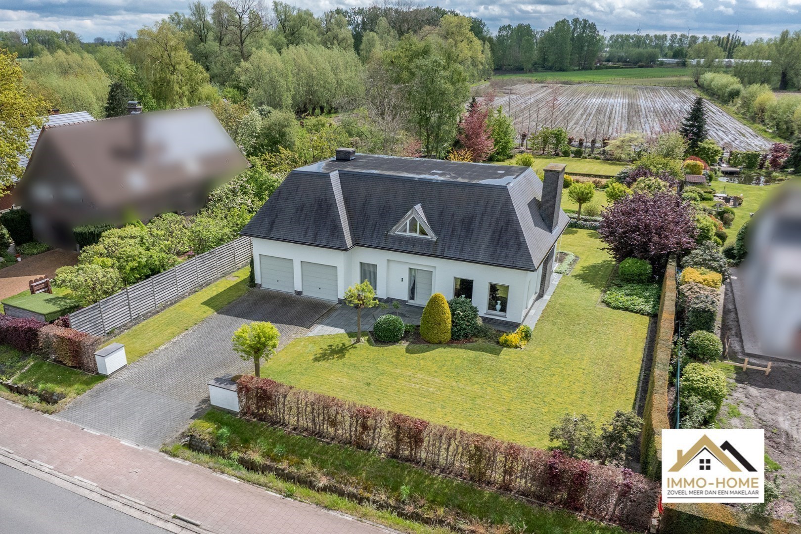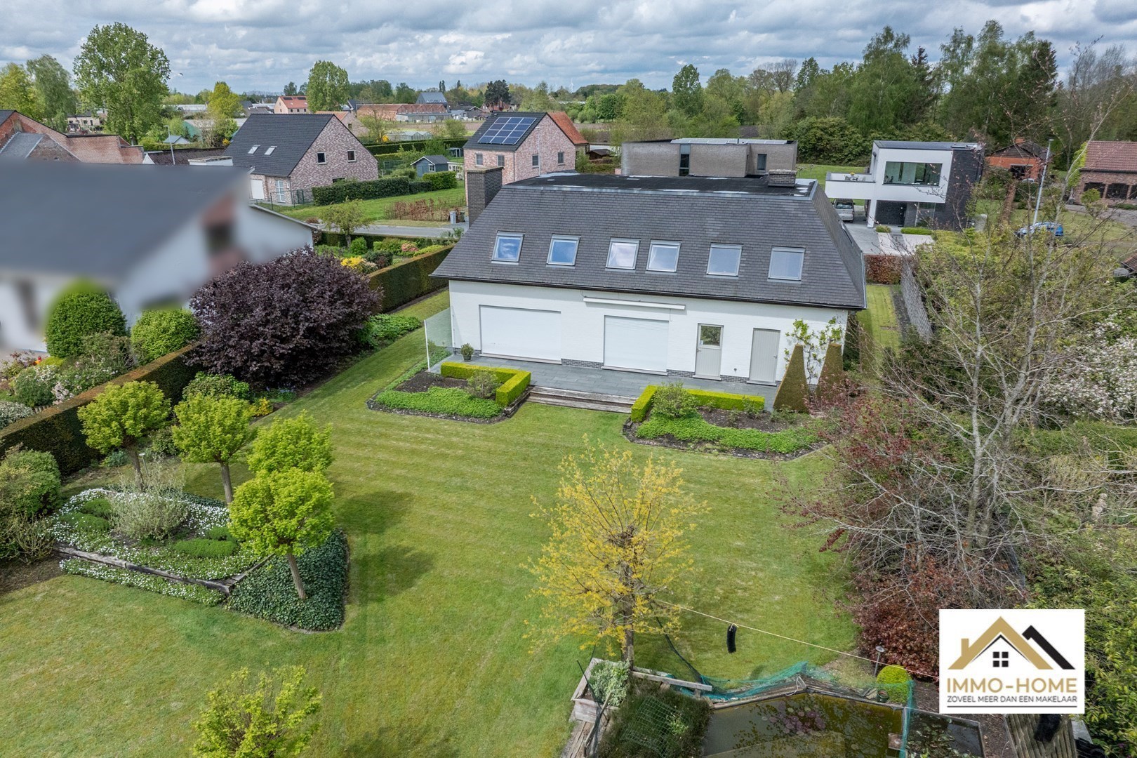 Schrijf u inOp zoek naar een riante villa met een fantastische agrarisch uitzicht ? Dan is dit allicht een uitgelezen kans ! De imposante inkomhal verbindt alle ruimtes op het gelijkvloers, te beginnen met de prachtige leefruimte. De grote raampartijen zorgen voor een bijzonder contact met de omgeving en dan vooral met de schitterende tuin. Een mooie haard geeft een bijzondere extra toets aan het geheel. De aanpalende keuken is praktisch ingericht en ook van hieruit heb je alweer een mooi zicht op het achterland. Het grote terras is bereikbaar via de schuiframen, maar ook via de wasplaats met bijhorende koele berging. Langs deze weg kom je ook tot in de zeer ruime dubbele garage. Verder op het gelijkvloers : een handige bureelruimte en een gastentoilet. Op de eerste verdieping is er rond de leuke overloop plaats voor vier slaapkamers en een badkamer met ligbad en douche. Vanuit bijna alle kamers heb je eveneens de bijzondere extra van het landelijke zicht. Er zijn ook nog twee zolderruimtes aanwezig, die eveneens tot slaapkamer kunnen worden omgevormd. Genieten van het buitenleven vormt met deze woning geen enkel probleem. Bovenop het uitzicht geniet je van de zon vanuit alle mogelijke hoeken, relaxen op het ruime terras is hier dagelijkse kost !