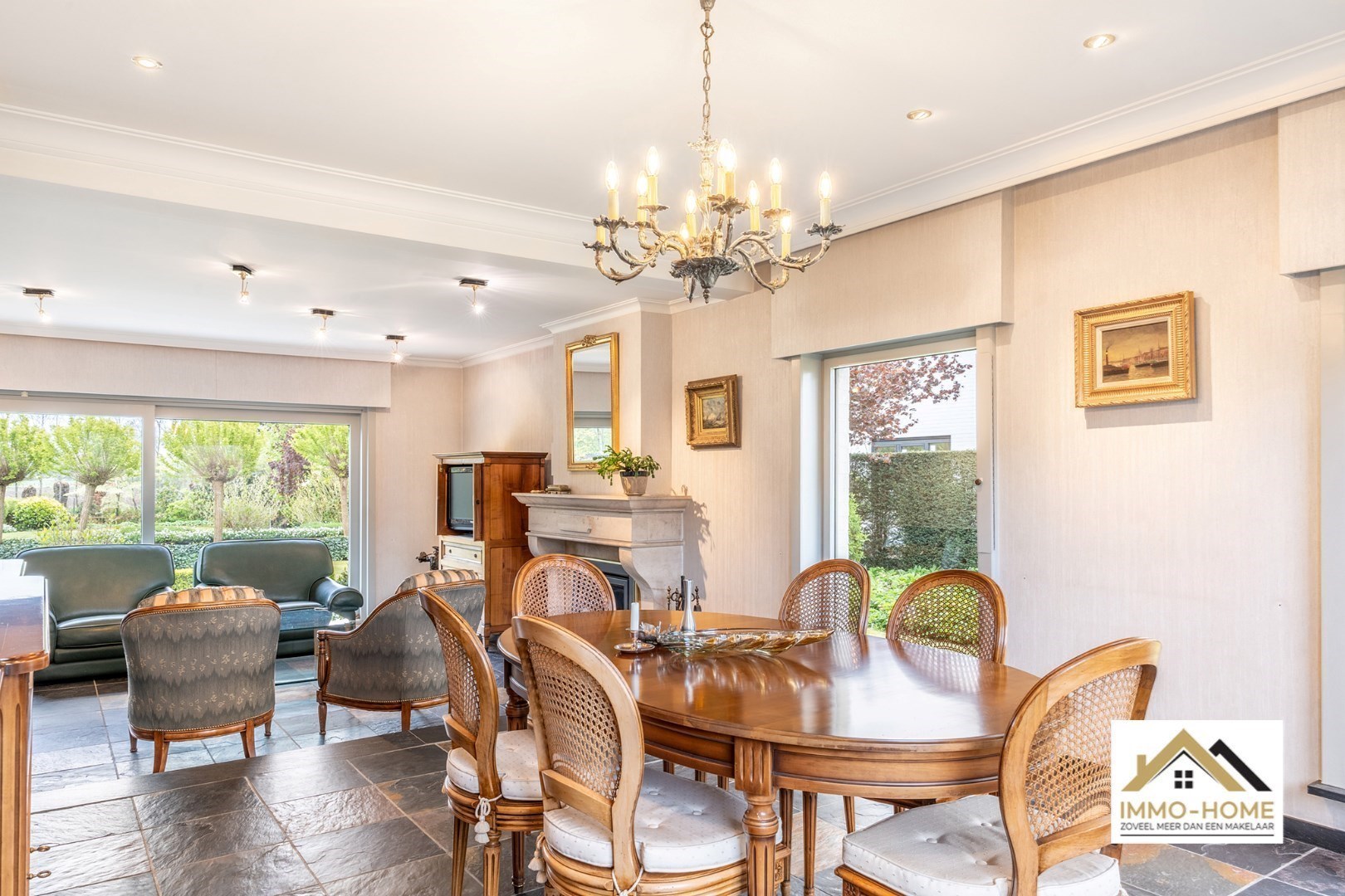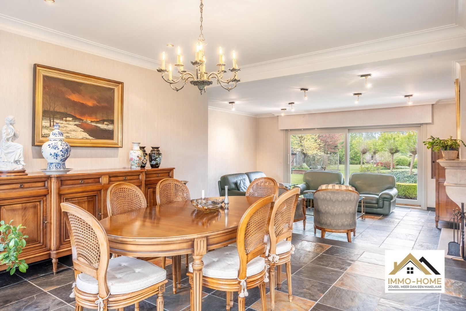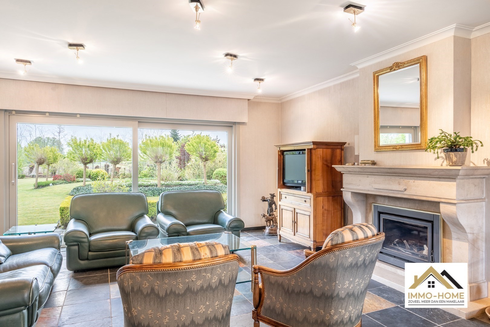 Schrijf u inOp zoek naar een riante villa met een fantastische agrarisch uitzicht ? Dan is dit allicht een uitgelezen kans ! De imposante inkomhal verbindt alle ruimtes op het gelijkvloers, te beginnen met de prachtige leefruimte. De grote raampartijen zorgen voor een bijzonder contact met de omgeving en dan vooral met de schitterende tuin. Een mooie haard geeft een bijzondere extra toets aan het geheel. De aanpalende keuken is praktisch ingericht en ook van hieruit heb je alweer een mooi zicht op het achterland. Het grote terras is bereikbaar via de schuiframen, maar ook via de wasplaats met bijhorende koele berging. Langs deze weg kom je ook tot in de zeer ruime dubbele garage. Verder op het gelijkvloers : een handige bureelruimte en een gastentoilet. Op de eerste verdieping is er rond de leuke overloop plaats voor vier slaapkamers en een badkamer met ligbad en douche. Vanuit bijna alle kamers heb je eveneens de bijzondere extra van het landelijke zicht. Er zijn ook nog twee zolderruimtes aanwezig, die eveneens tot slaapkamer kunnen worden omgevormd. Genieten van het buitenleven vormt met deze woning geen enkel probleem. Bovenop het uitzicht geniet je van de zon vanuit alle mogelijke hoeken, relaxen op het ruime terras is hier dagelijkse kost !