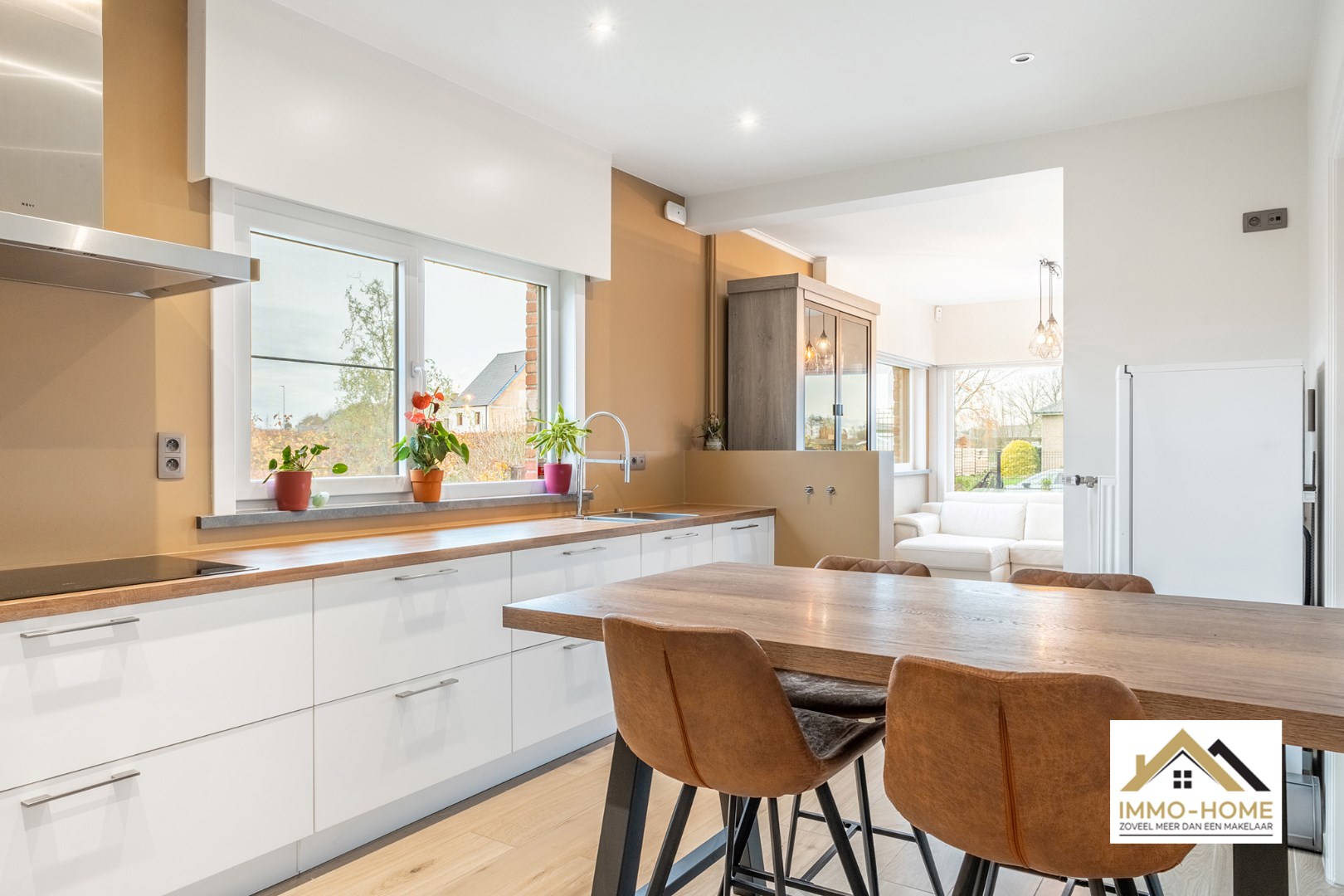 Schrijf u inDeze grotendeels prachtig gerenoveerde woning ontvangt je in een stijlvolle inkomhal, met plaats voor een vestiaire. Zo kom je verder tot in de zeer lichtrijke leefruimte die naadloos overvloeit in de tijdloze keuken, waar je eveneens een aangenaam contact met de omgeving behoudt. Deze is niet alleen praktisch ingericht, inclusief veel kastruimte, maar ook de net ernaast gelegen koele berging/kelder is hier zeker een mooie meerwaarde. Aan de linkerkant van de inkomhal bevindt zich een ruim bureel, dat ook rechtstreeks via de oprit toegankelijk is. Van hieruit kom je tot in het enige nog verder af te werken achterste gedeelte van de woning, bestaande uit een tweede inkomhal met toegang tot de tuin, een ruime badkamer en wasplaats/berging, en een technische ruimte. Het reeds mooi afgewerkte gastentoilet bevindt zich hier ook, en helemaal achterin kan je genieten van de omgeving in de gezellige tuinkamer. Op de eerste verdieping is er rond de grote overloop voorzien in drie mooie slaapkamers, waarbij de master bedroom beschikt over een dressing. Een handige opbergkamer maakt het plaatje hier compleet. Op het einde van de lange oprit (met vooraan de woning extra parkeerplaatsen) is er een ruime vrijstaande garage, met plaats voor maar liefst vijf wagens. Bezoekdag 30/11: Inschrijvingen via mail naar tommy@immo-home.be Volg ons op Fb en insta. Voor meer info: www.immo-home.be GRATIS SCHATTING - GRATIS FINANCIEEL ADVIES