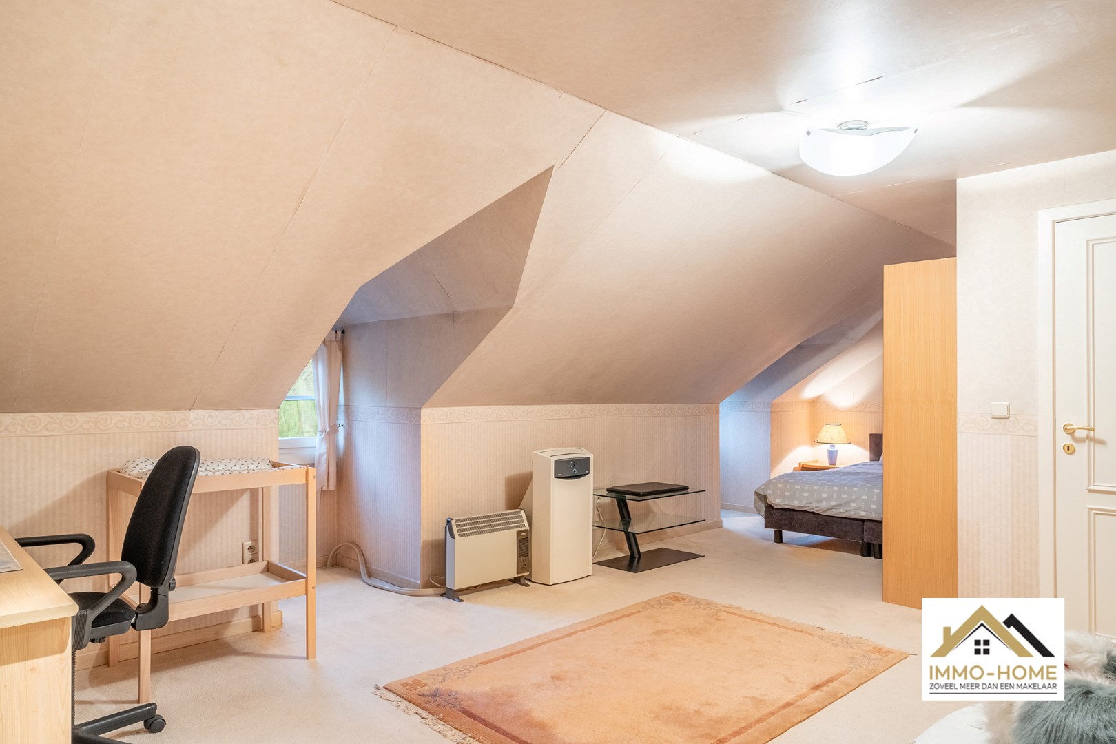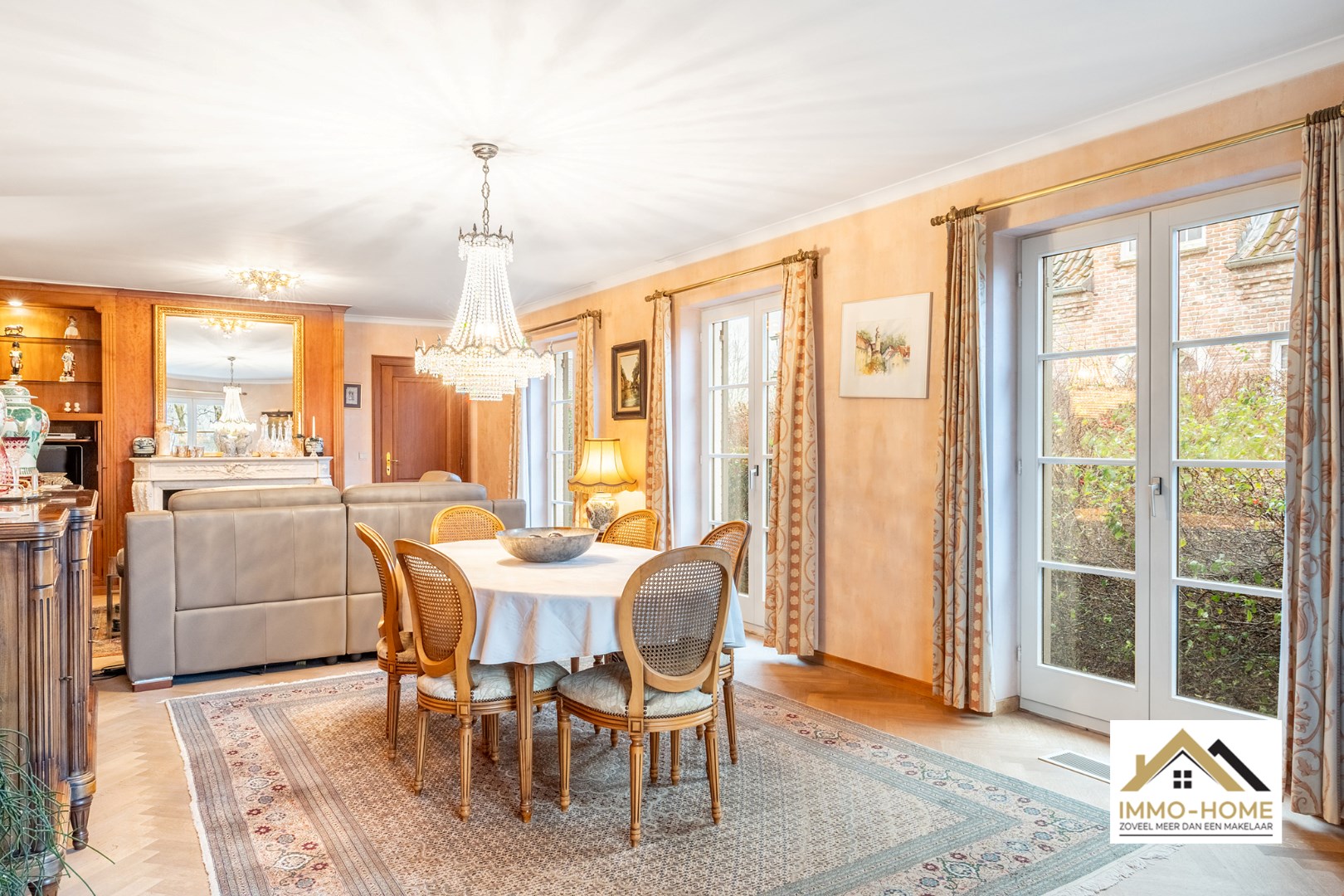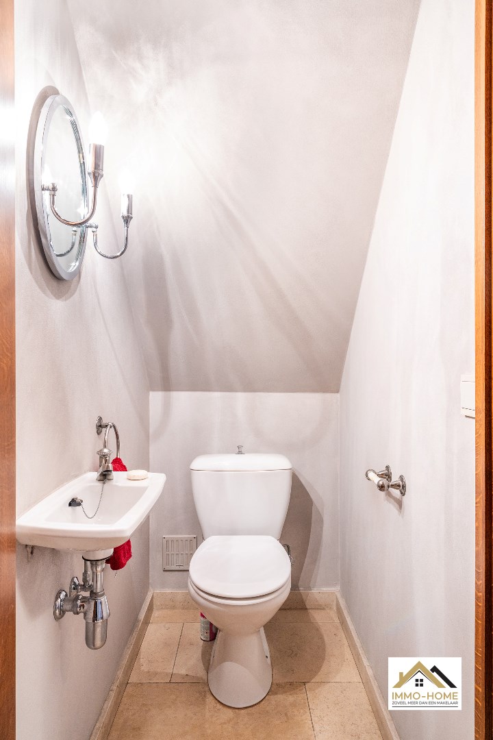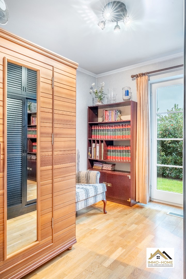 Schrijf u inDeze instapklare woning ontvangt je in een ruime inkomhal, met een ingemaakte vestiaire en een gastentoilet. Deze hall vormt ook de centrale as op de benedenverdieping, die alle vertrekken met elkaar verbindt. De leefruimte is zeer ruim en lichtrijk door de vele raampartijen, die er eveneens voor zorgen dat er steeds een leuk contact is met de tuin en de omgeving. De grote haard vormt een ideaal kader om van de gezelligheid te genieten in de donkere wintermaanden. De aanpalende keuken is heel praktisch en ruimtelijk ingericht, aan werkruimte is hier zeker geen gebrek. Ook hier heb je een mooie connectie met het terras en de tuin, die je eveneens kan bereiken via de handige dubbele berging/wasplaats net naast de keuken. Vooraan de woning is er plaats voor twee mooie slaapkamers, een bureelruimte (waar momenteel ook de sauna staat die in het pand blijft staan) en een zeer ruime badkamer met ligbad én douche. De grote dubbele garage met schuifpoort maakt het plaatje compleet. Op de eerste verdieping is er momenteel één zeer grote slaapkamer ingericht, maar op de zolderruimtes is er nog plaats voor drie extra kamers (met elk invallend natuurlijk licht). Van het buitenleven genieten doe je in alle rust op het knusse terras en in de zeer mooie tuin, van waaruit je bovendien uitkijkt over landelijk groen. Extra opbergruimte is er in het tuinhuis, helemaal achterin de tuin. Inschrijvingen via mail naar larissa@immo-home.be, geen telefonische inschrijvingen! Volg ons op Fb en Insta. Voor meer info: www.immo-home.be. GRATIS SCHATTING GRATIS FINANCIEEL ADVIES