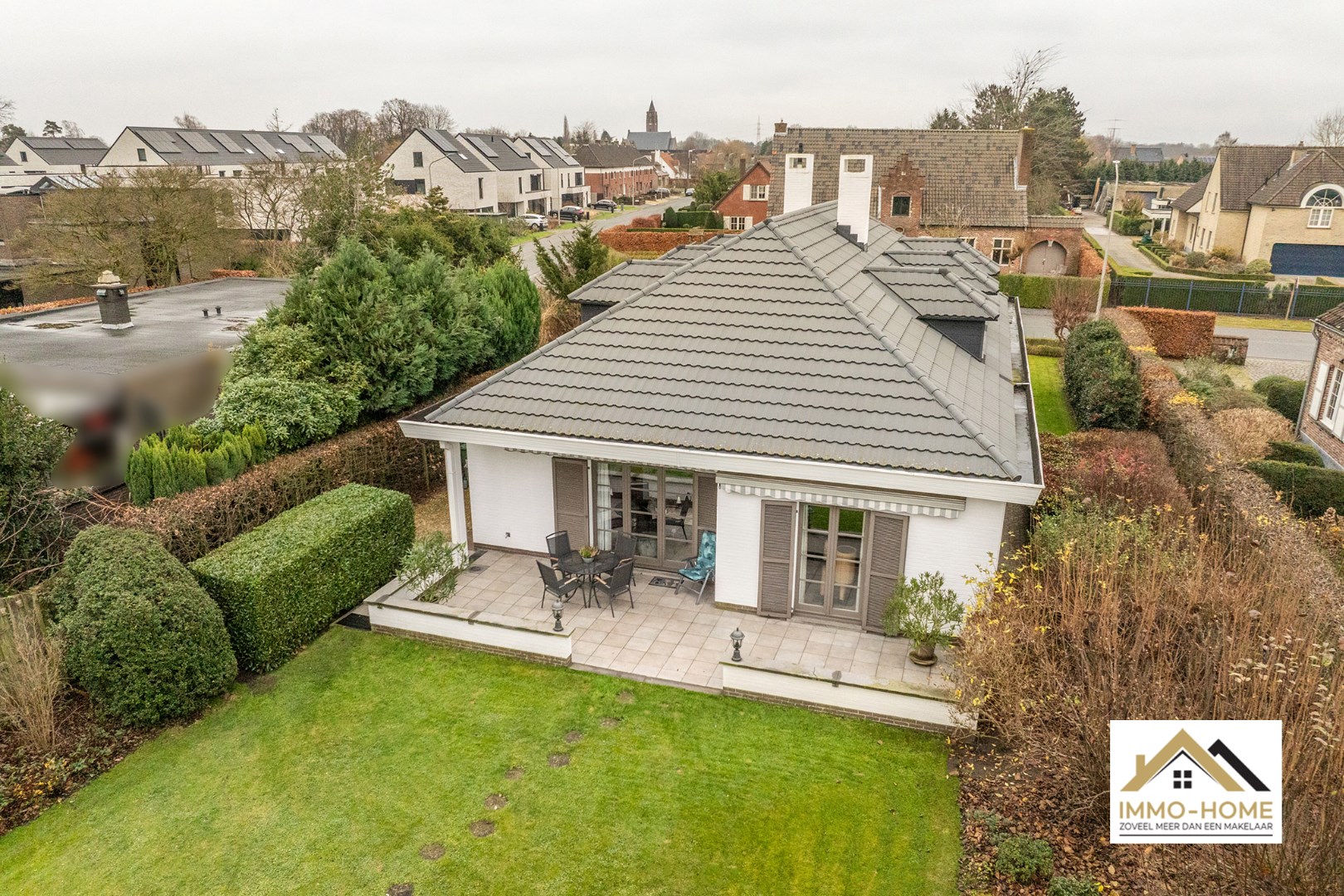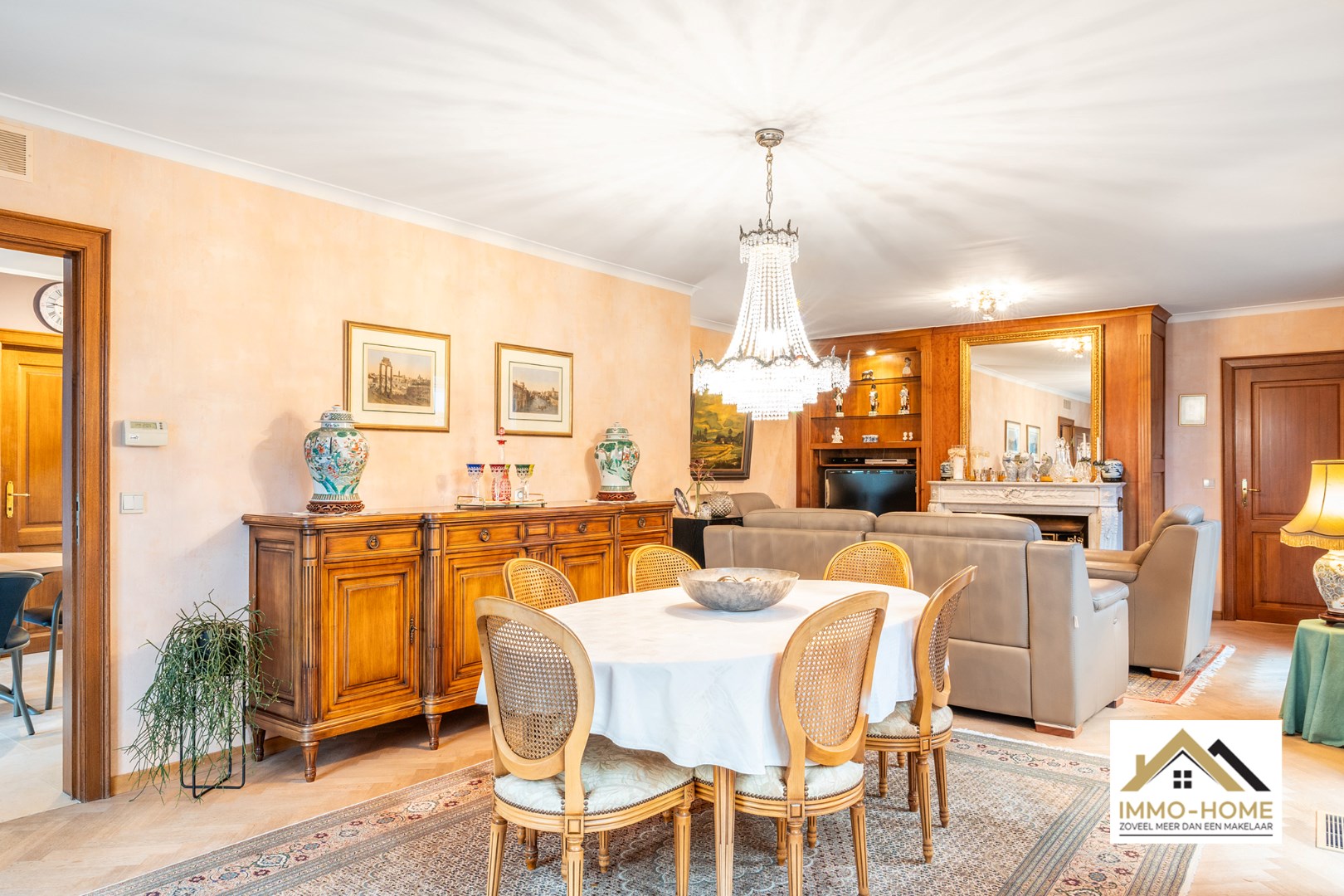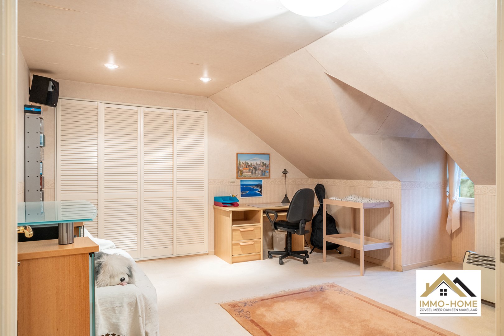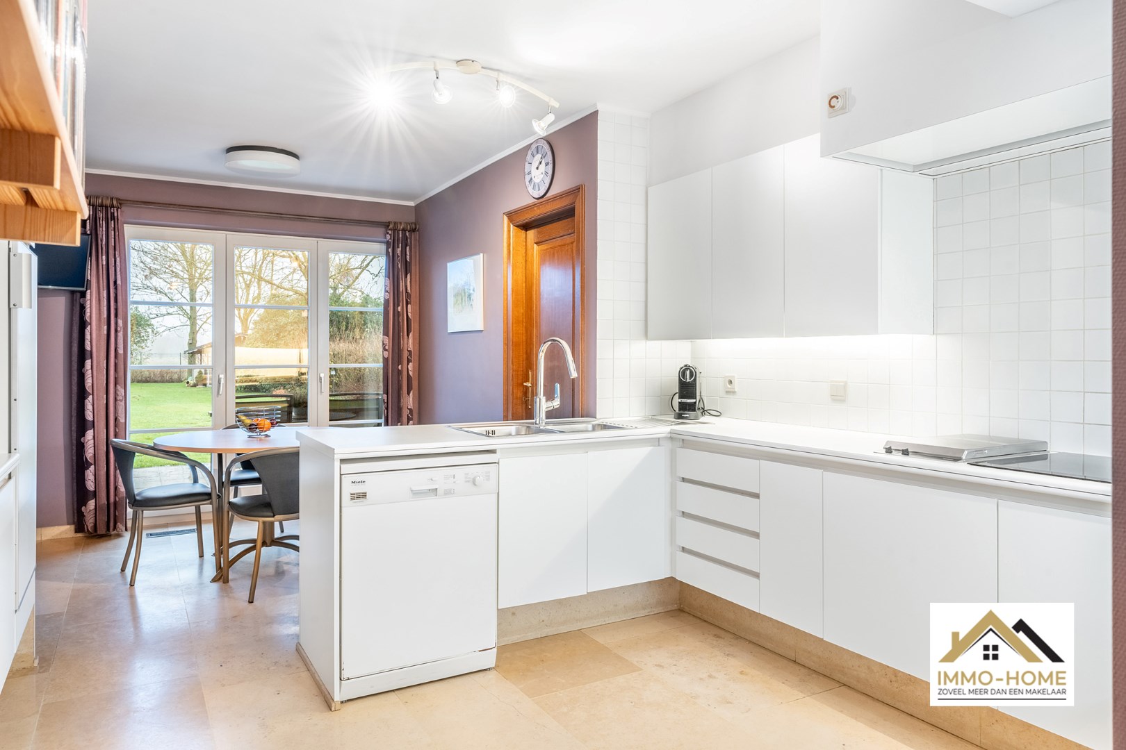 Schrijf u inDeze instapklare woning ontvangt je in een ruime inkomhal, met een ingemaakte vestiaire en een gastentoilet. Deze hall vormt ook de centrale as op de benedenverdieping, die alle vertrekken met elkaar verbindt. De leefruimte is zeer ruim en lichtrijk door de vele raampartijen, die er eveneens voor zorgen dat er steeds een leuk contact is met de tuin en de omgeving. De grote haard vormt een ideaal kader om van de gezelligheid te genieten in de donkere wintermaanden. De aanpalende keuken is heel praktisch en ruimtelijk ingericht, aan werkruimte is hier zeker geen gebrek. Ook hier heb je een mooie connectie met het terras en de tuin, die je eveneens kan bereiken via de handige dubbele berging/wasplaats net naast de keuken. Vooraan de woning is er plaats voor twee mooie slaapkamers, een bureelruimte (waar momenteel ook de sauna staat die in het pand blijft staan) en een zeer ruime badkamer met ligbad én douche. De grote dubbele garage met schuifpoort maakt het plaatje compleet. Op de eerste verdieping is er momenteel één zeer grote slaapkamer ingericht, maar op de zolderruimtes is er nog plaats voor drie extra kamers (met elk invallend natuurlijk licht). Van het buitenleven genieten doe je in alle rust op het knusse terras en in de zeer mooie tuin, van waaruit je bovendien uitkijkt over landelijk groen. Extra opbergruimte is er in het tuinhuis, helemaal achterin de tuin. Inschrijvingen via mail naar larissa@immo-home.be, geen telefonische inschrijvingen! Volg ons op Fb en Insta. Voor meer info: www.immo-home.be. GRATIS SCHATTING GRATIS FINANCIEEL ADVIES