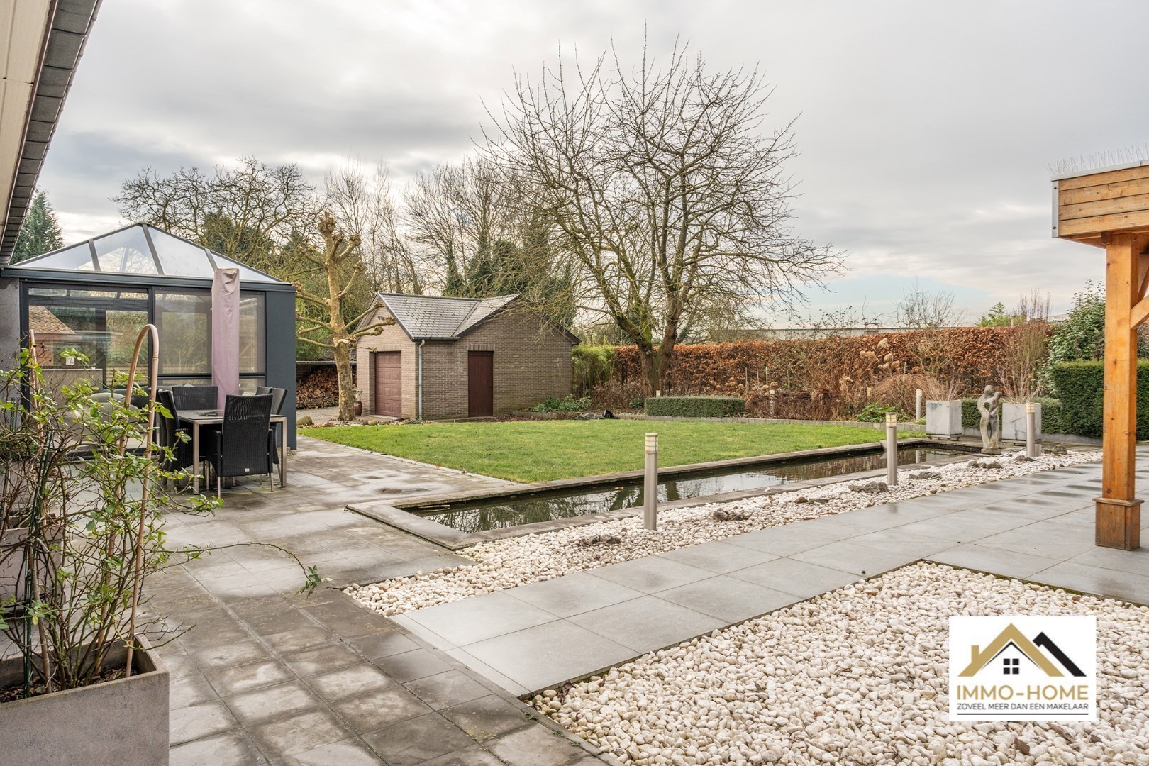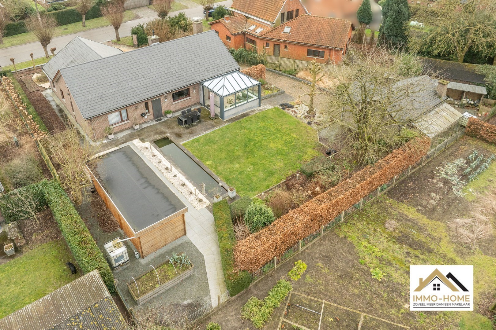 Schrijf u inDeze riante bungalow is gelegen in een rustige en groene omgeving in de buitenrand van Lokeren. Ze ontvangt je in een ruime inkomhal (met gastentoilet), en via deze weg bereik je alle ruimtes op het gelijkvloers. De eerste is de mooie leefruimte, waar de grote raampartijen voor- en achteraan niet alleen zorgen voor veel lichtinval, ze vormen ook letterlijk een venster op het buitenleven. De aangebouwde veranda is een echte tuinkamer die je op een beschutte manier het jaar rond doet genieten van de omgeving. De aanpalende keuken is praktisch ingericht en voorzien van uitgebreid modern kookcomfort. Via de ernaast gelegen bijkeuken kom je tot op het ruime terras en in de zeer mooi aangelegde tuin. De strakke vijver vormt samen met de lounge het perfecte plekje om tijdens de zomer van het leven te genieten van de natuur rond je. De woning beschikt momenteel over twee ruime slaapkamers, een dressing en een badkamer met stijlvolle inloopdouche. Op de nog ongebruikte zolderverdieping is er bovenop de betonnen gewelven ruimte voor minstens twee extra slaapkamers. De inpandige garage is voorzien van een elektrische poort en biedt extra ruimte voor een wasplaats, en in de vrijstaande tweede garage achteraan in de tuin is er plaats voor een koele berging en een leuke werkplaats. Daarnaast is er nog meer opbergplaats in het ruime tuinhuis. Inschrijvingen via mail naar tommy@immo-home.be, geen telefonische inschrijvingen! Volg ons op Fb en Insta. Voor meer info: www.immo-home.be. GRATIS SCHATTING & GRATIS FINANCIEEL ADVIES