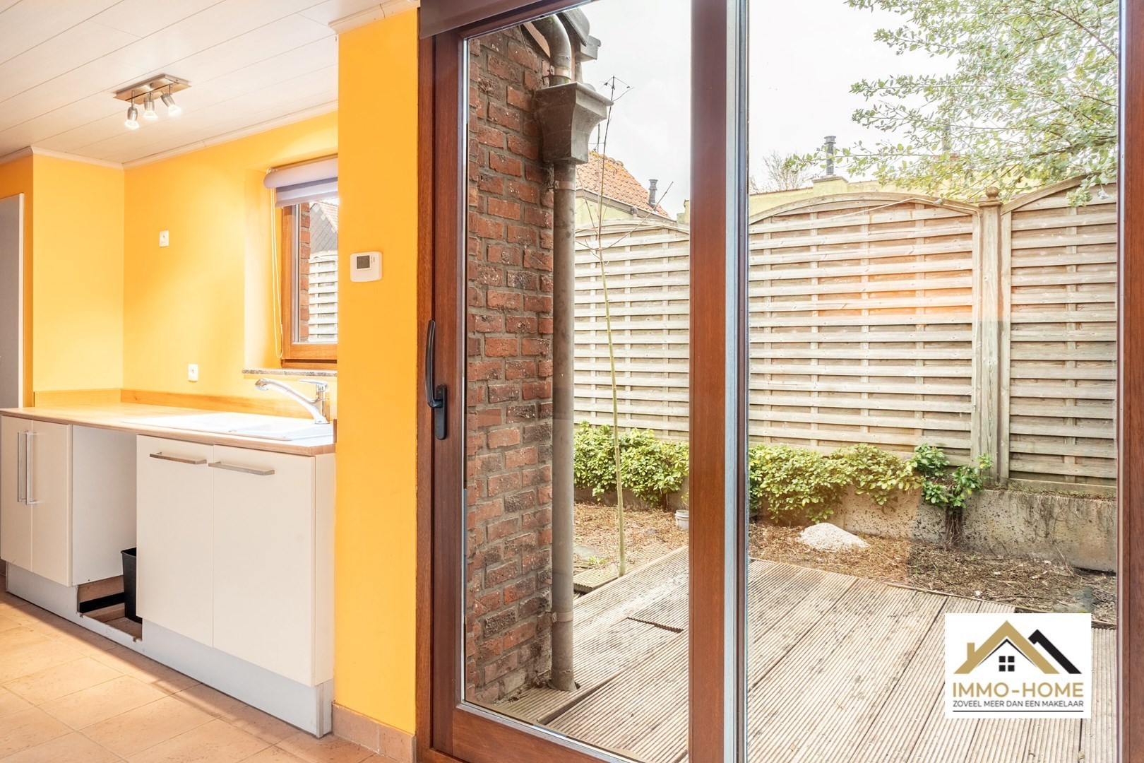 Schrijf u inDeze leuke starterswoning is gelegen op de rand van het centrum van Merelbeke. Via de ruime inkomhal kom je tot in de leefruimte, bestaande uit een zithoek en een eetplaats. De raampartijen voor- en achteraan zorgen voor zowel een aangename lichtinval als een goed contact met het terras en de tuin, die je via twee schuifdeuren kan bereiken. De aanpalende keuken is praktisch ingericht, en ook hier heb je zicht op de tuin. Helemaal achterin bevindt zich de badkamer met ligbad en een apart toilet. Op de eerste verdieping is er voorzien in twee zeer ruime slaapkamers, en op de zolderverdieping (bereikbaar via een vaste trap) bevindt zich een derde riante polyvalente ruimte, die ook perfect als slaapkamer kan gebruikt worden. De knusse tuin is bereikbaar via een aparte overdekte doorgang naast de woning, deze kan je eveneens als bijkomende berging gebruiken. Achteraan in de tuin is er nog een handige opbergplaats aanwezig, en in de voortuin is er een eigen parkeerplaats voorzien.
