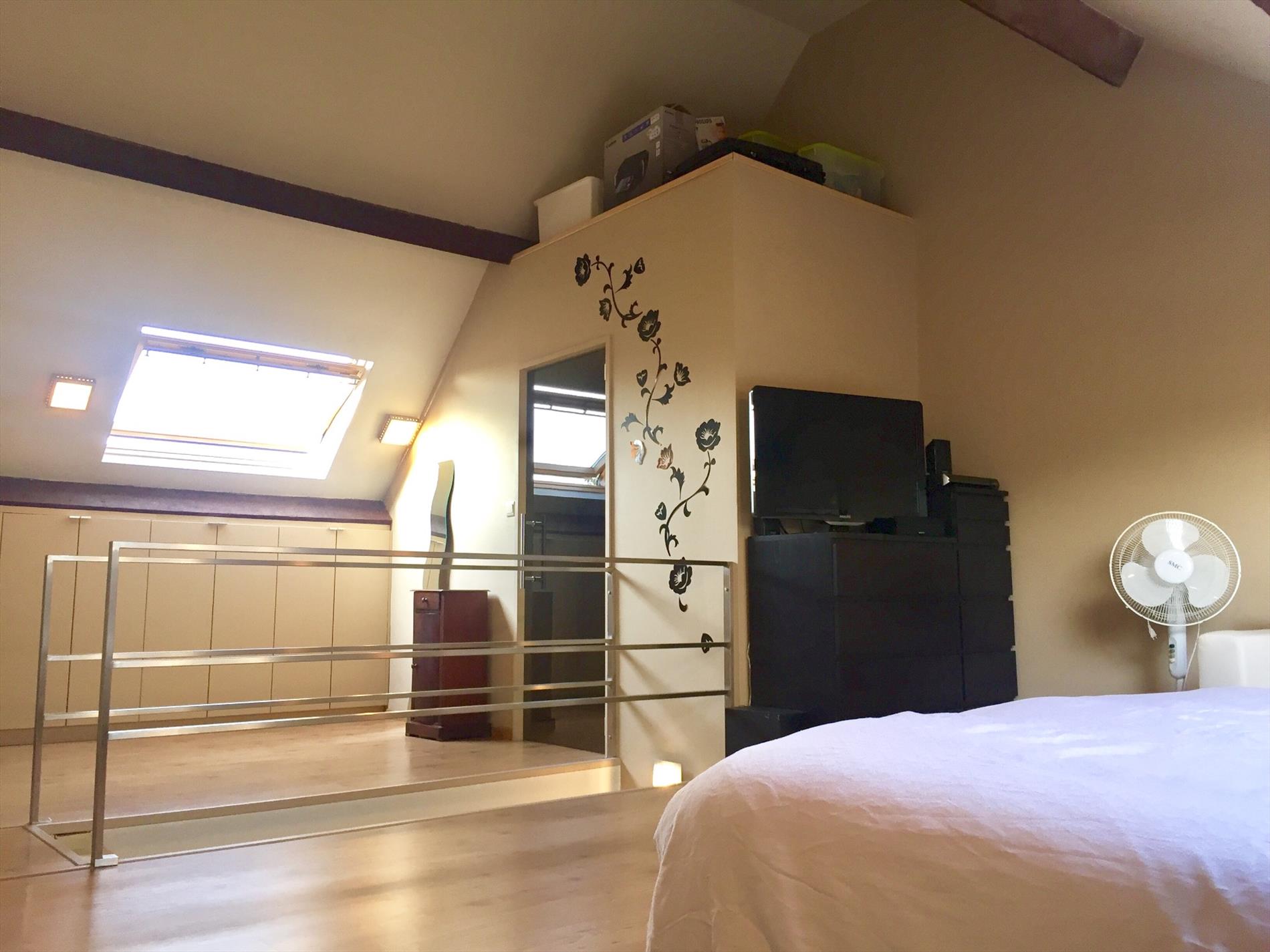 Op de eerste verdieping bevinden zich 2 grote slaapkamers (13m2-20m2). Op de 2de verdieping komt u via een vaste trap naar de master bedroom (34m2) met bijhorende 2de badkamer met douche, lavabomeubel,kolomkast en een 2de toilet. In alle slaapkamers zijn zeer ruime opbergkasten voorzien en is er overal verwarming aanwezig en licht er een stevige nieuwe laminaat. De hele woning is voorzien van dubbel glas.