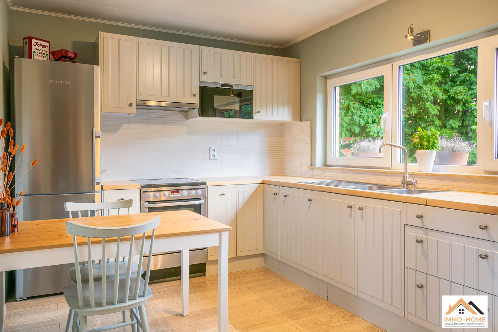 Schrijf u inDeze mooi gerenoveerde en instapklare woning in bel-etage-stijl is gelegen in een rustige straat met veel groen in de omgeving. Grote invalswegen en openbaar vervoer zijn bovendien vlakbij. De ruime en aangename inkomhal sluit aan op de grote garage met een lange kastenwand. Achteraan is er toegang tot de kleine maar gezellige tuin. Op de eerste verdieping kom je op een alweer aangename overloop terecht, die je naar de keuken en aanpalende leefruimte brengt. Beiden baden in het licht door de vele ramen en je hebt in deze ruimtes steeds een mooi uitzicht op de omgeving. Aan de trap bevindt zich een eerste toilet. Op de tweede verdieping beschik je over drie slaapkamers en een badkamer met ligbad en een tweede toilet. De woning heeft een grote oprit voor meerdere wagens. Bezoekdag zaterdag 18/06: inschrijvingen via mail naar nick@immo-home.be, geen telefonische inschrijvingen! Volg ons op Fb en insta. Voor meer info: www.immo-home.be