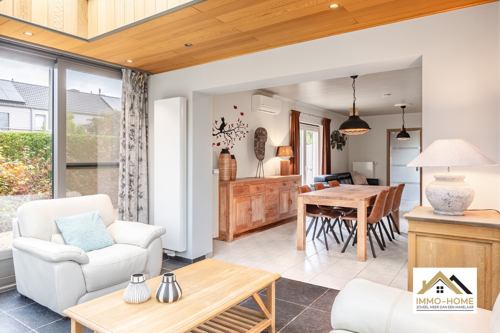 Schrijf u inIn het rustige Oostakker, aan de rand van Gent, bevindt zich deze prachtige hoekwoning in een serene woonwijk, met EPC B-label!! Het huis valt meteen op door de brede oprijlaan, die ruimte biedt voor meerdere voertuigen. Bij binnenkomst word je verwelkomd in een lichtrijke inkomhal, voorzien van een apart toilet en een houten trap naar de eerste verdieping. De glazen deur leidt naar een ruime leefruimte, waar de open woonkamer, eetkamer en keuken naadloos in elkaar overgaan. De moderne houtkachel zorgt voor warmte op koude dagen, terwijl de lichtrijke aangebouwde veranda een ideale wintertuin vormt. De houten afwerking en lichtkoepel versterken de knusse sfeer. De vernieuwde keuken, uitgerust met een stijlvol zwart accent en een kookeiland met zithoek, is volledig ingericht. Naast de keuken bevindt zich een praktische bijkeuken voor extra opbergruimte en elektrische apparaten. Deze ruimte geeft toegang tot de garage, waar nog meer bergruimte beschikbaar is. Op de eerste verdieping bevinden zich drie slaapkamers, waaronder een hoekkamer met dubbele ramen en ruimte voor een kledingkast, een ruime master bedroom met veel kastruimte, en een kleinere kamer die momenteel als dressing is ingericht. De badkamer vormt de kroon op het werk: recent gerenoveerd, straalt het een moderne en stijlvolle eenvoud uit, met een lavabomeubel in hout en een ruime inloopdouche. Daarnaast is er een apart toilet. De tuin, zowel voor als achter het huis, valt op door zijn royale oppervlakte. De achtertuin, voorzien van een grote houten toegangspoort voor extra privacy, herbergt een gezellig terras, een mooie vijver met bijpassende beplanting, en een charmant tuinhuisje voor opslag. Deze woning is uitgerust met zonnepanelen, met 2 thuisbatterijen en nog certificaten, en airconditioning, wat zorgt voor modern comfort. Dankzij de hedendaagse afwerking is dit huis een ideale keuze voor wie op zoek is naar een instapklare woning, zonder zorgen. Bezoekdag op 19/10 inschrijvingen via mail naar Larissa@immo-home.be, geen telefonische inschrijvingen! Volg ons op Fb en insta. Voor meer info: www.immo-home.be GRATIS SCHATTING GRATIS FINANCIEEL ADVIES