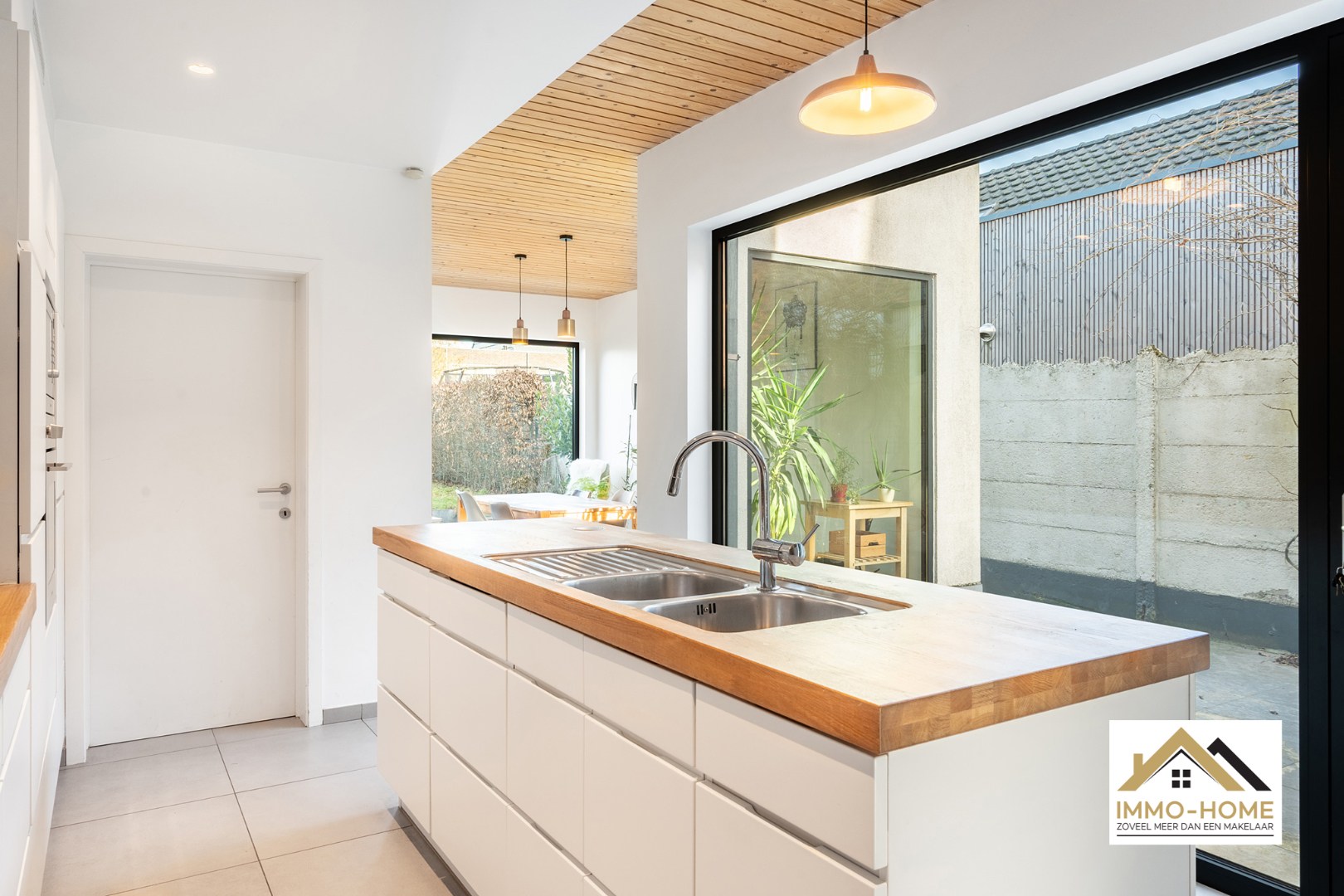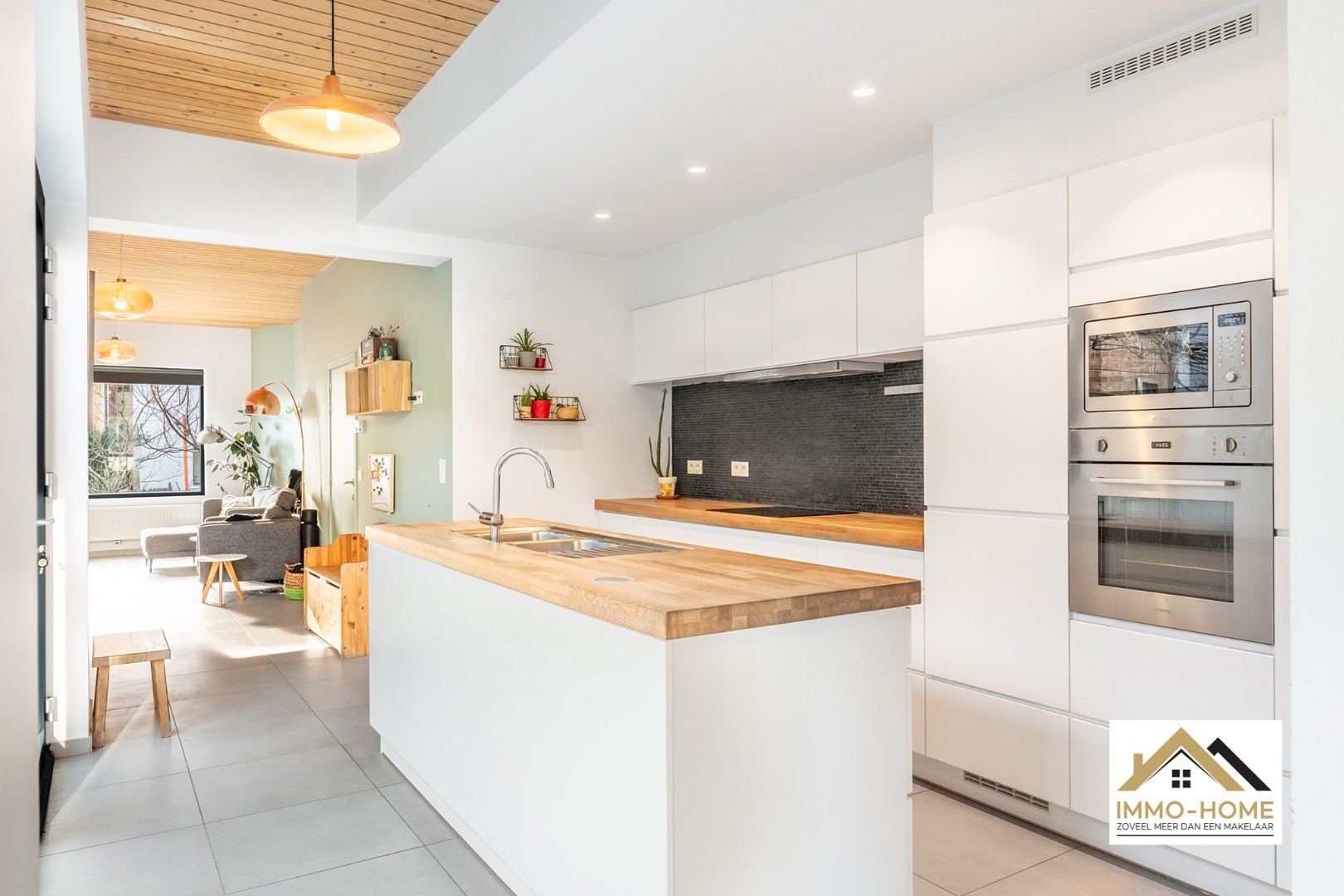 Deze instapklare en volledig gerenoveerde woning vinden we terug in een rustige wijk in Oostakker, dichtbij allerlei voorzieningen. Bij de renovatie werd gekozen voor een mooie mix tussen modern comfort en behoud van authentieke elementen, en dat merk je meteen in de ruime inkomhal (met ruimte voor een vestiaire en een gastentoilet). De benedenverdieping werd volledig open getrokken van aan de straatkant tot aan de tuin, wat zorgt voor een heel aangename en lichtrijke ervaring. Centraal bevindt zich de keuken, waar het op en rond het grote eiland comfortabel kokerellen is. De grote raampartijen zorgen voor veel natuurlijk licht en een goed contact met onder andere het afgeschermde eerste terras. Aan de straatkant is er een ruime leefplaats ingericht, en achteraan de woning bevindt zich een leuke eetplaats met alweer zicht op beide terrassen en de tuin. Die bereik je via een schuifdeur, maar ook langs de riante berging/wasplaats die zich net naast de keuken bevindt. Op de eerste verdieping is er voorzien in een badkamer met ligbad en inloopdouche, en de eerste twee ruime slaapkamers. Op de bovenste verdieping vinden we een derde slaapkamer terug, net als een mooi bureel met mezzanine. In de grote tuin is het in alle rust heerlijk vertoeven, en de toegang naast de woning is zeker een extra troef. Bezoekdag: 28/02 :Inschrijven via mail naar tommy@immo-home.be, geen telefonische inschrijvingen! Volg ons op Fb en Insta. Voor meer info: www.immo-home.be. GRATIS SCHATTING & GRATIS FINANCIEEL ADVIES