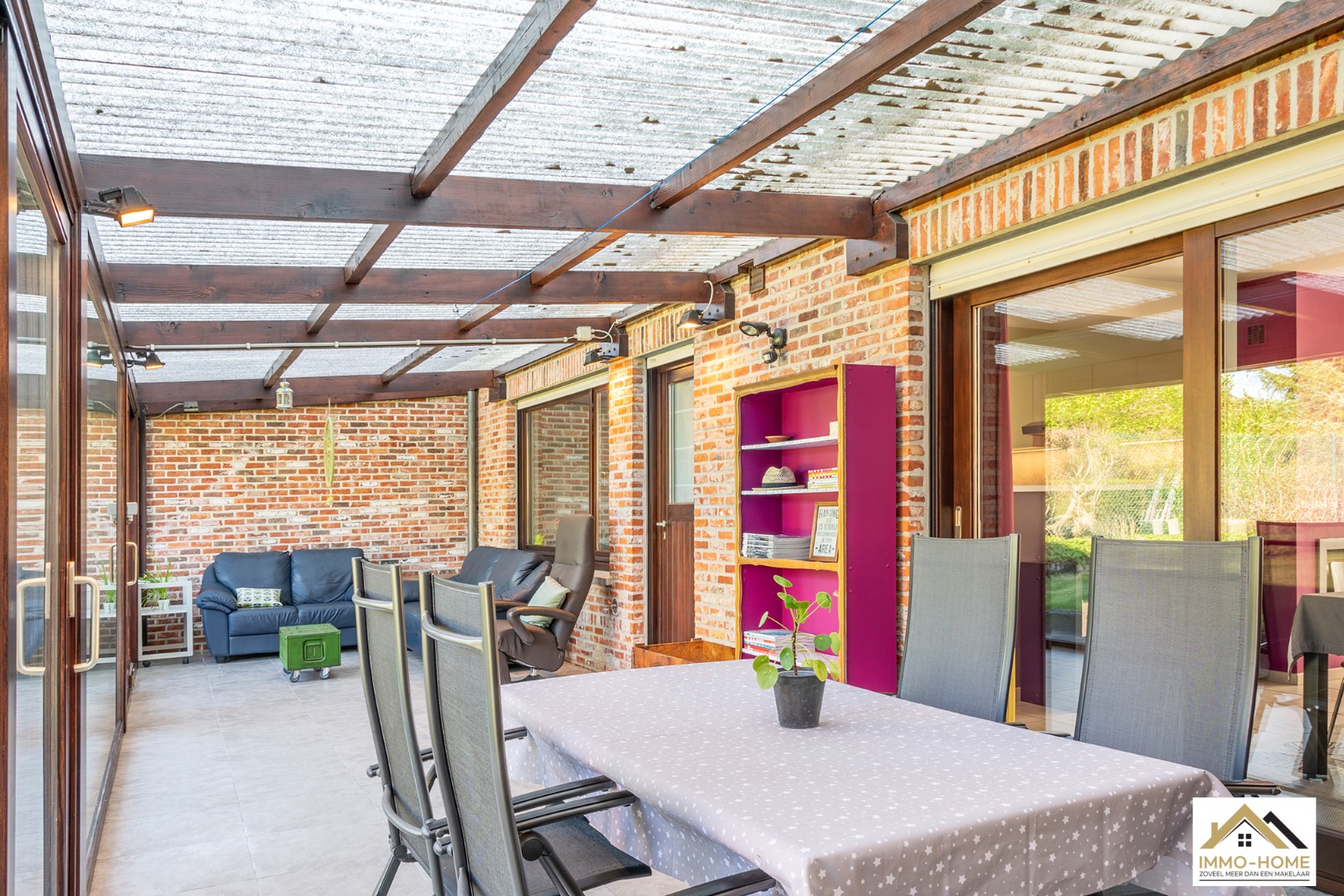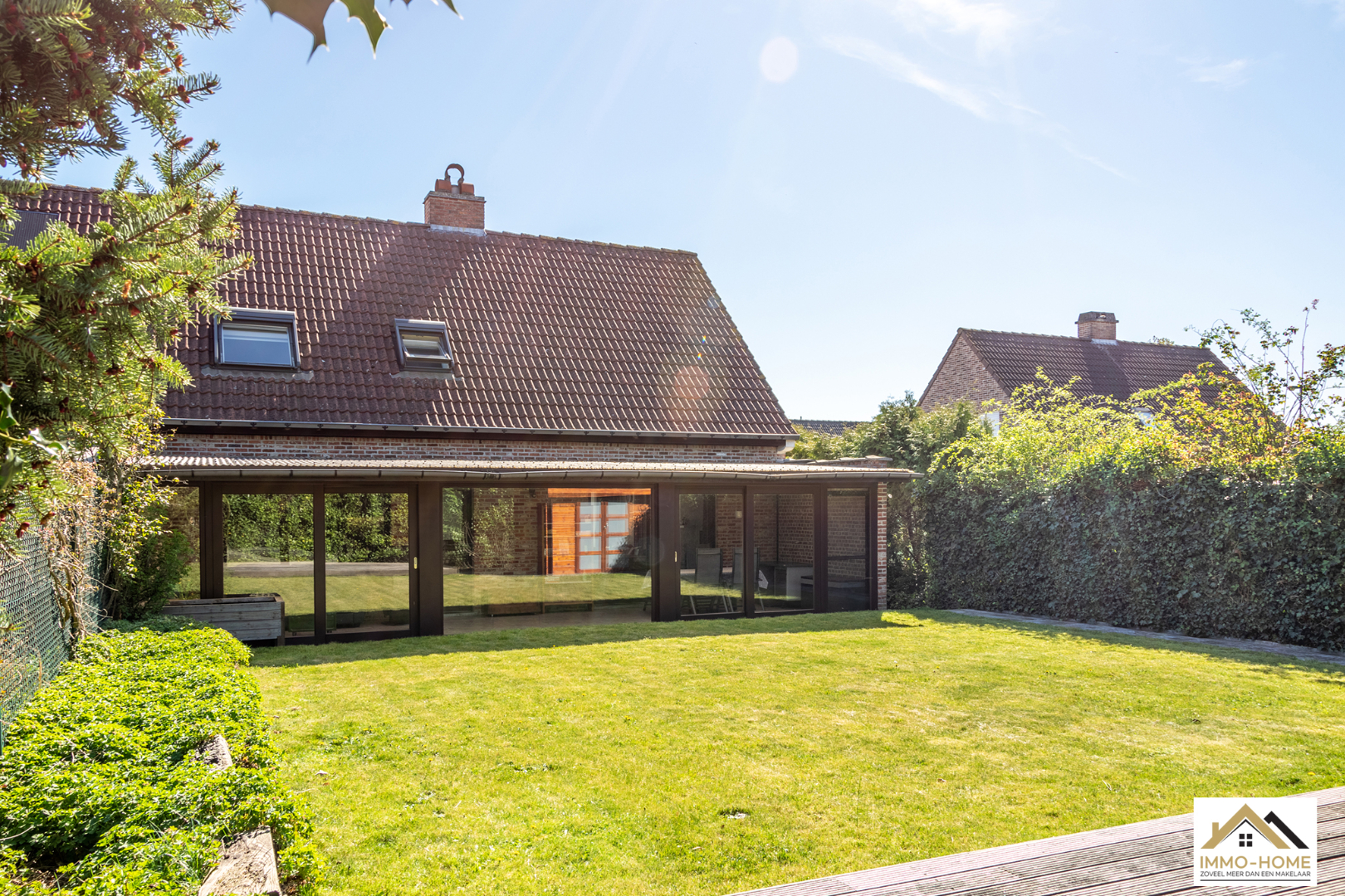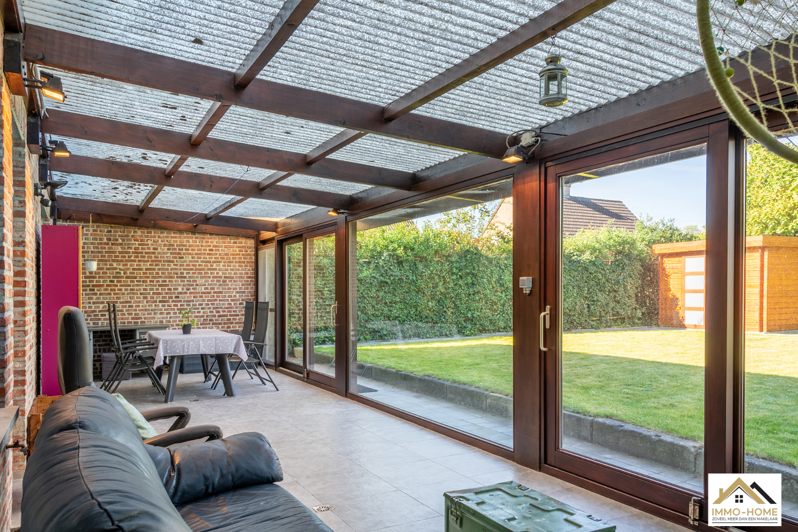 Schrijf u inDeze instapklare woning is gelegen in een zeer rustige wijk en dichtbij het centrum van Overmere. Via de gezellige inkomhal met gastentoilet en kleine berging kom je in de lichtrijke L-vormige leefruimte. Een ingebouwde haard brengt extra sfeer en via de grote schuiframen heb je een mooi zicht op de tuin. De halfopen keuken is voorzien van alle comfort en ook hier heb je een mooi zicht op de tuin. De inpandige garage met wasplaats komt ook uit in de keuken, wat héél handig is voor het uitladen van de boodschappen. Over de volledige breedte van de woning is een veranda aangebouwd, zodat je ook in de tussenseizoenen van het buitenleven kan genieten. Op de eerste verdieping beschik je over drie ruime slaapkamers. Centraal bevindt zich de badkamer met ligbad, douche, dubbele lavabo en een tweede toilet. Hierboven is er nog een grote bergzolder. Extra bergruimte is er in het strakke tuinhuis. Bezoekdag zaterdag 30/04: inschrijvingen via mail naar info@immo-home.be, geen telefonische inschrijvingen! Volg ons op Fb en insta. Voor meer info: www.immo-home.be