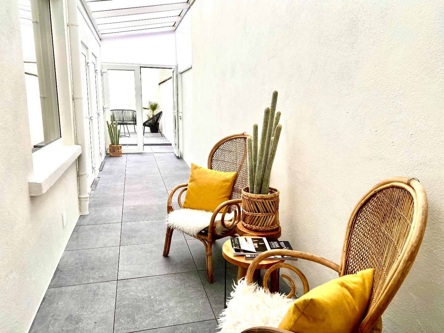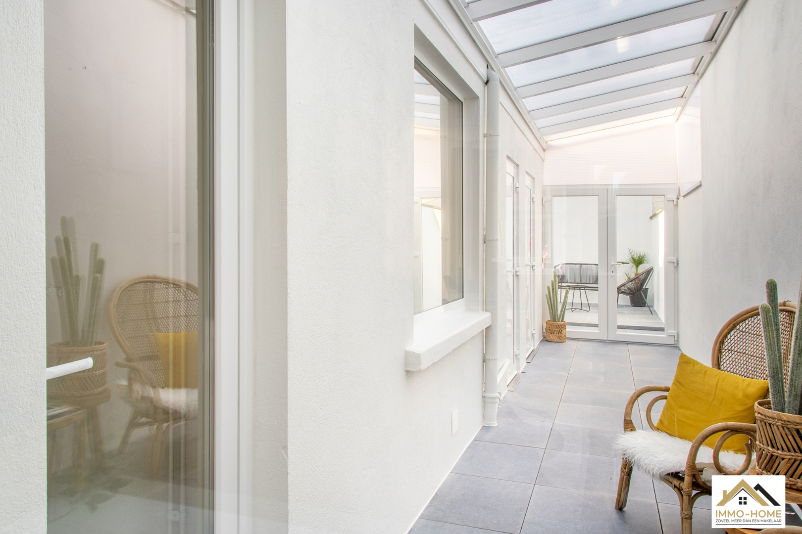 Schrijf u inDe klassevolle (onlangs gerenoveerde en geïsoleerde) gevel van deze woning verraadt al alles wat er zich achter bevindt : een stijlvol gerenoveerd gebouw, met veel bewaarde authentieke elementen zoals vloeren en deuren, én eigentijdse toetsen. De sfeervolle inkomhal zet al meteen de toon en ze brengt je gasten in stijl tot in de open leefruimte met een gezellige haard en een doorkijk naar het achterliggende overdekte terras. In de compleet nieuwe keuken die voorzien is van alle moderne comfort, mét alweer mooie originele vloeren heb je heel veel lichtinval. Daarnaast beschik je over een ruim overdekt terras dat volledig kan afgesloten worden. Hier heeft u toegang tot een gastentoilet en een handige bijkeuken voor buiten of wasplaats. Achteraan is het heerlijk vertoeven op het strakke ingesloten ruim terras. Op de eerste verdieping bevindt zich een zeer grote master bedroom met mooie erker en balkon. Daarnaast een riante badkamer met ligbad, nieuw lavabomeubel en nieuw tweede toilet.(Rond de verwarmingsketel zal het volledig afgewerkt zijn). Op de tweede verdieping zijn er nog twee zeer ruime slaapkamers. Extra bergruimte is er in de zeer grote, droge kelder tegenover de keuken in de inkomhal.