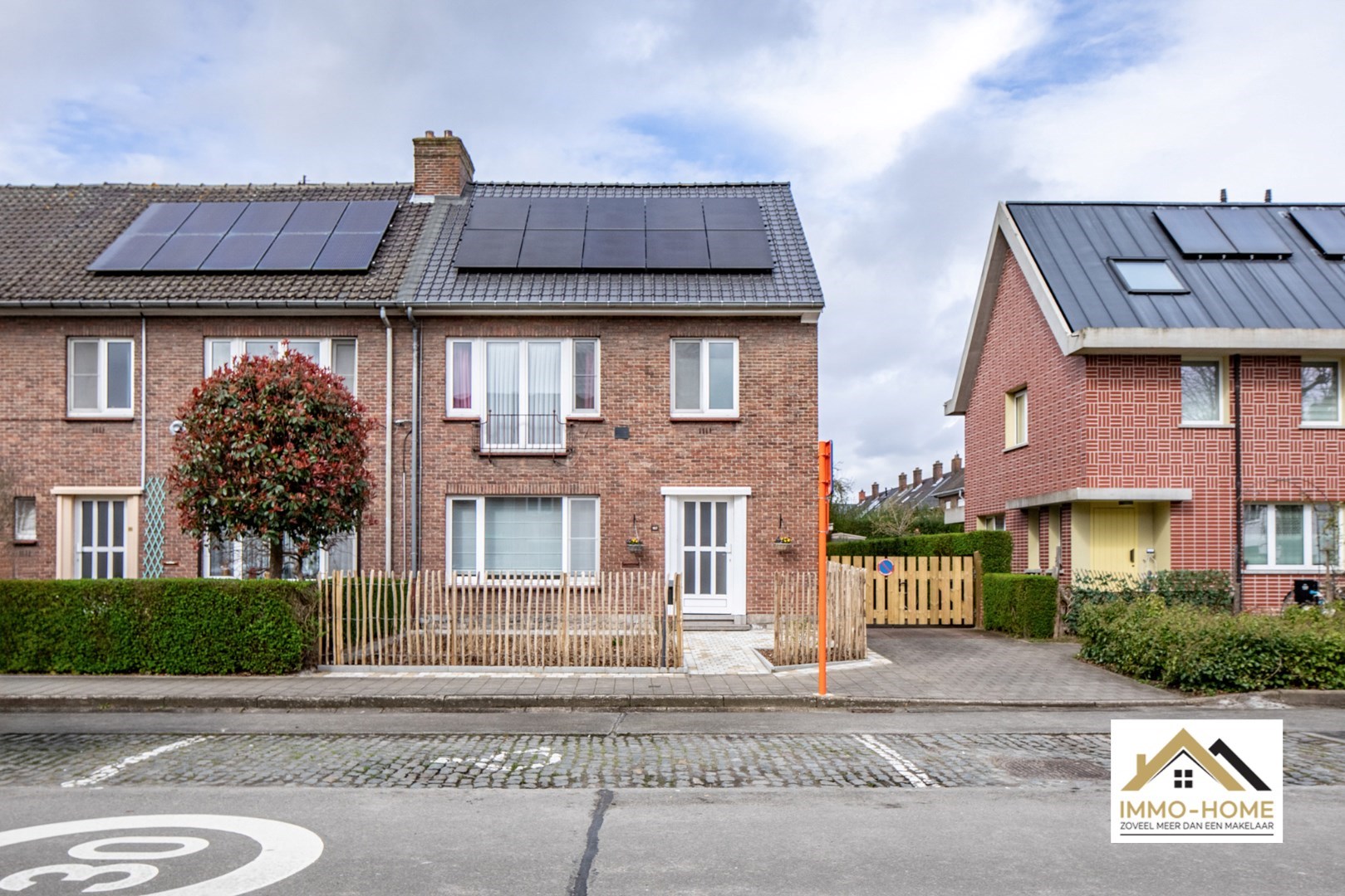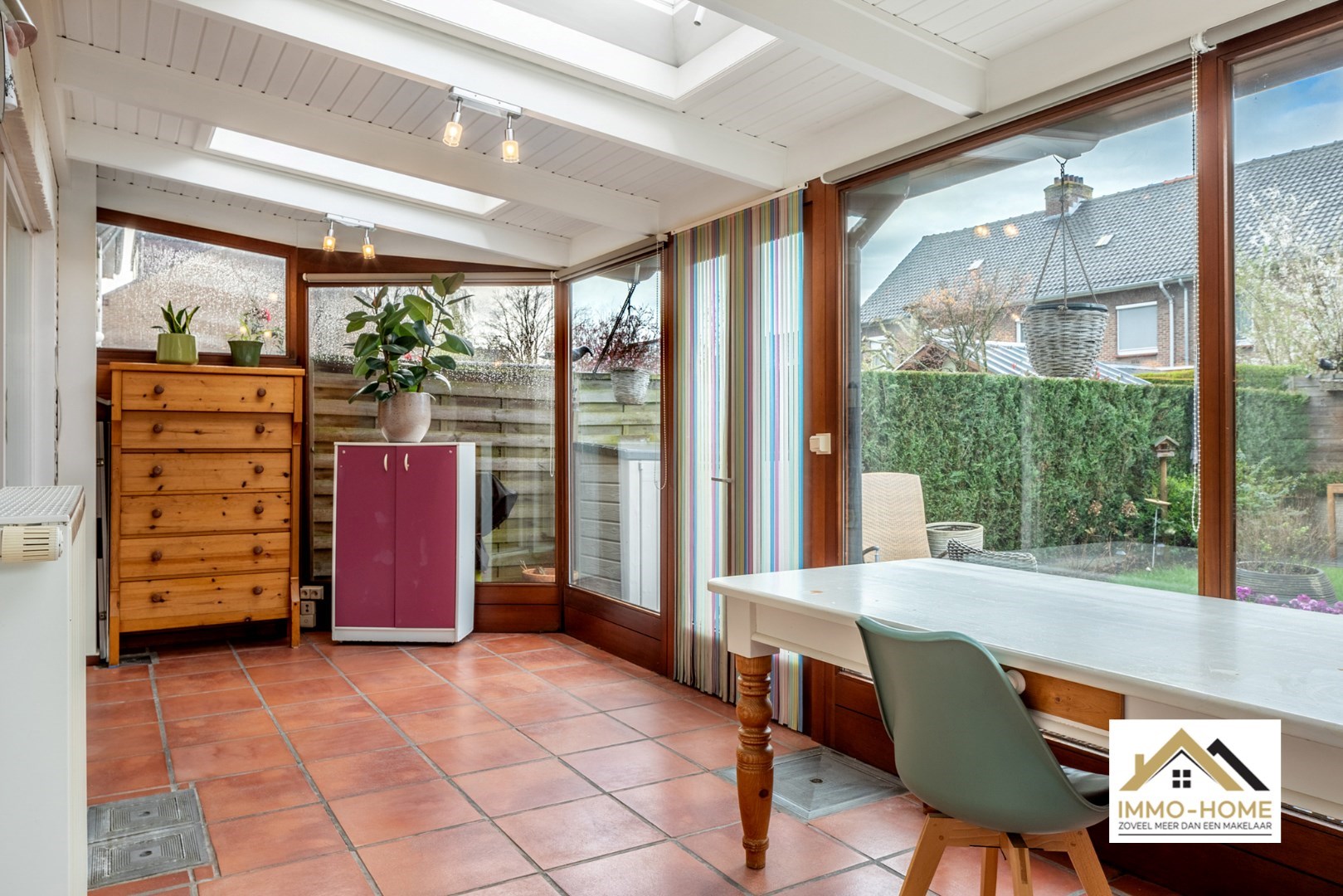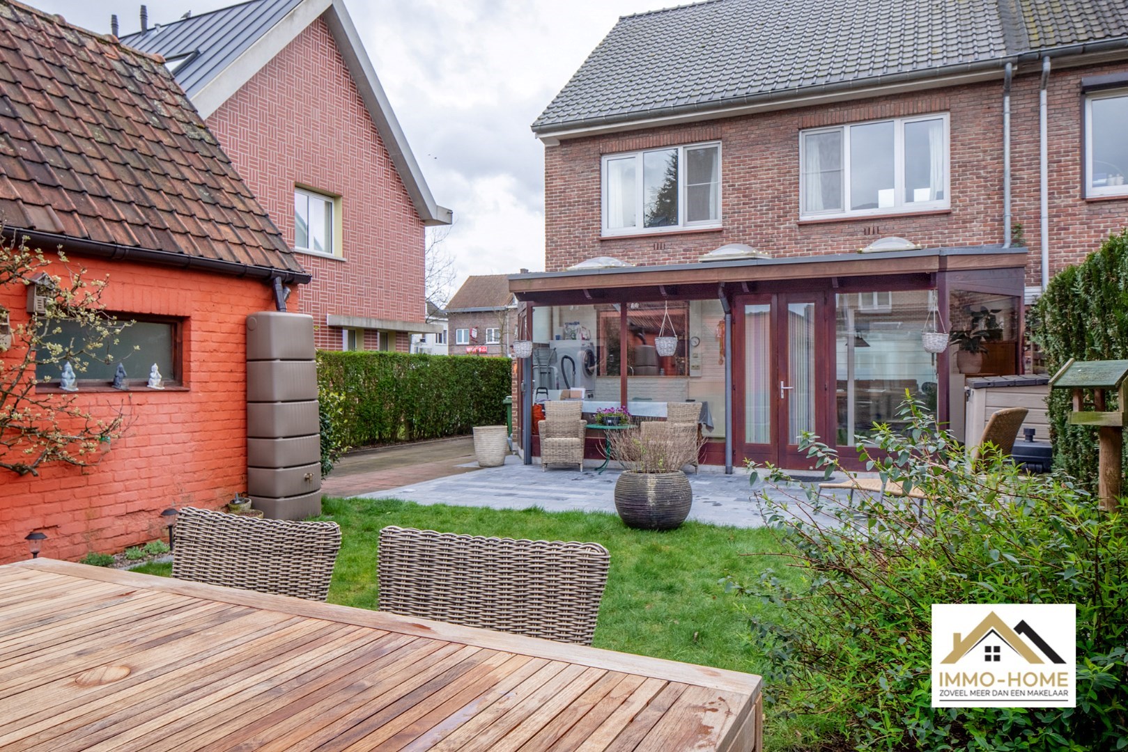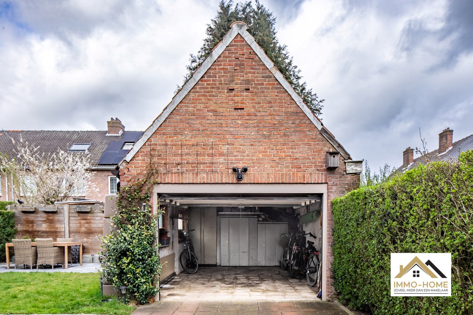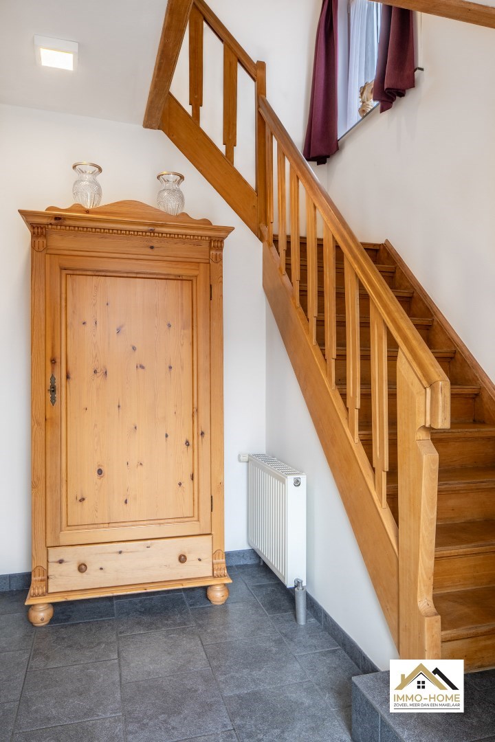 Schrijf u inGelegen in de randgemeente Sint-Amandsberg, nabij Gent, biedt deze halfopen bebouwing een aantrekkelijke woonomgeving. De woning bevindt zich in een prettige buurt, verrijkt met enkele buurtwinkels op korte afstand. Aan de voorzijde is een kleine tuin, met daarnaast een houten zijpoort met oprit die toegang biedt tot de tuin en garage, waardoor er ook parkeergelegenheid is naast de woning. Bij binnenkomst leidt de hal met een toilet naar de woonkamer, voorzien van een parketvloer en een decoratieve schouw die een huiselijke sfeer creëert. De aangrenzende eetkamer staat in verbinding met een praktische veranda, badend in natuurlijk licht dankzij grote vensterdeuren en een houten plafond met lichtkoepels. Vanuit de leefruimte heb je zicht op de keuken, uitgerust met een gasfornuis en een doorgeefruimte die uitkijkt op de veranda en waarlangs veel licht de keuken gezellig maakt. Een deur in de keuken geeft toegang tot een handige kelder. Op de eerste verdieping bevinden zich drie slaapkamers, waaronder een master bedroom met ingenieuze opbergruimte achter een valse wand, en een recent vernieuwde badkamer met een dubbele wastafel en een douchecabine met schuifdeur. De andere kamers zijn ruim en licht, en een extra kamer dient als aanvullende dressingruimte. Een uitschuiftrap leidt naar een ruime zolder, die extra bergruimte biedt. De tuin, met twee terrassen en een vrijstaande garage, nodigt uit tot ontspanning, zeker wanneer de zon schijnt. Het goed onderhouden gazon en de groene hagen zorgen voor een aangename buitenruimte. Dit huis met zonnepanelen combineert praktisch wooncomfort met de charme van een gezellige en goed gelegen woonomgeving. Inschrijvingen via mail naar tommy@immo-home.be, geen telefonische inschrijvingen! Volg ons op Fb en insta. Voor meer info: www.immo-home.be GRATIS SCHATTING GRATIS FINANCIEEL ADVIES