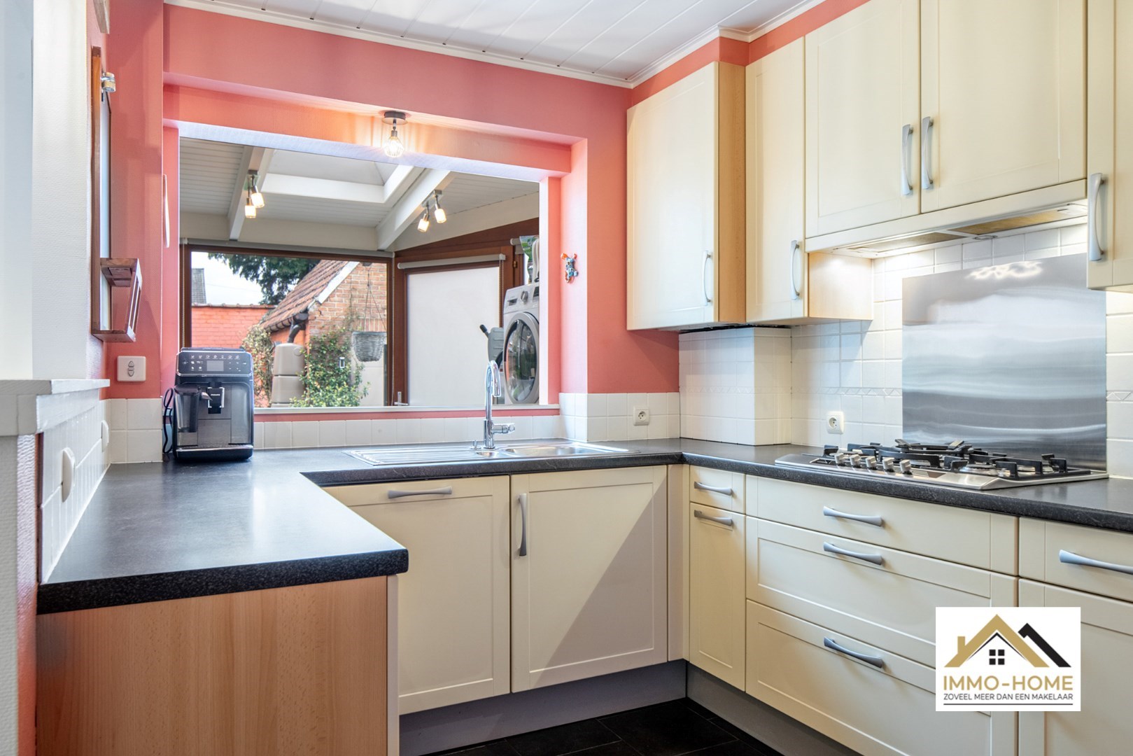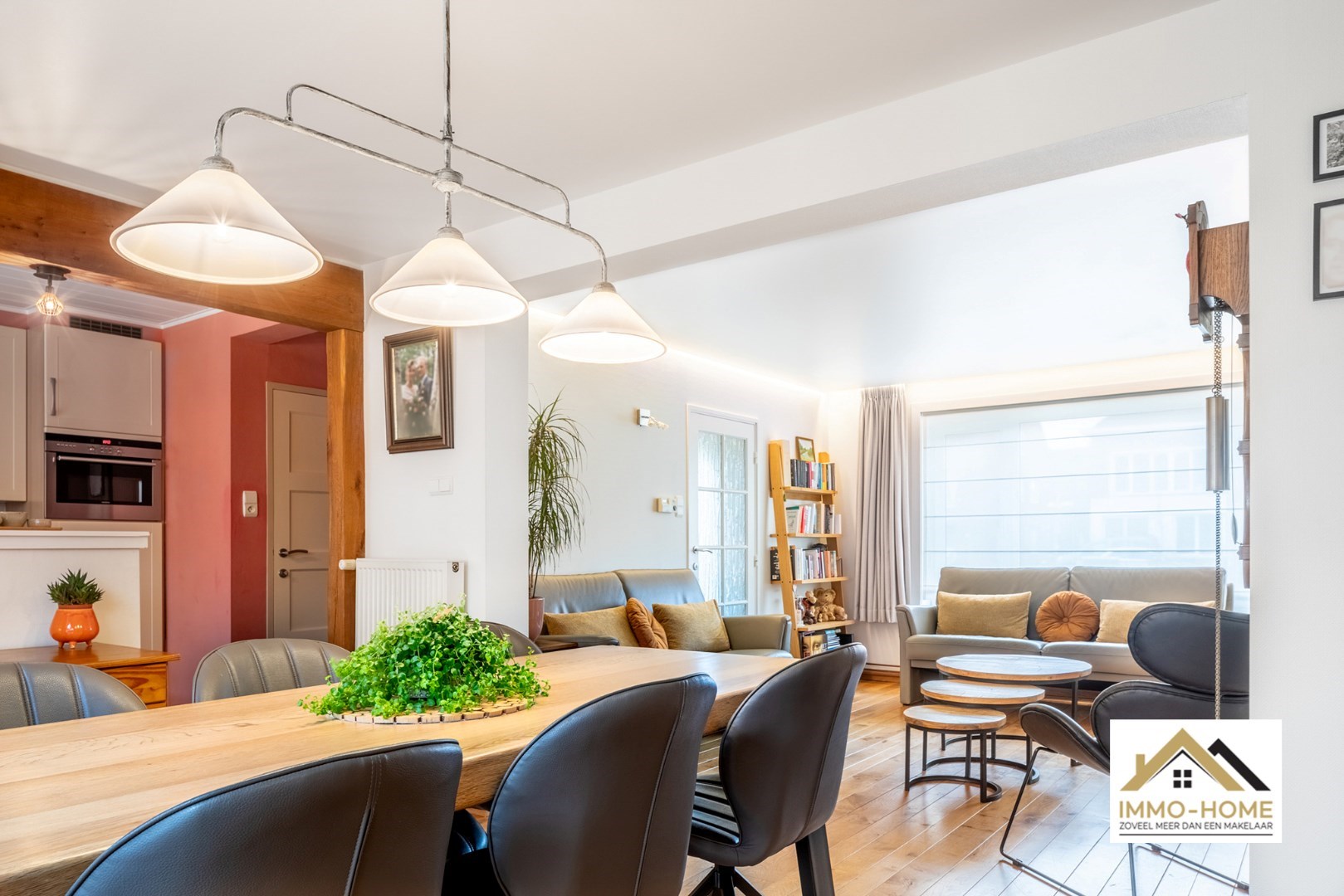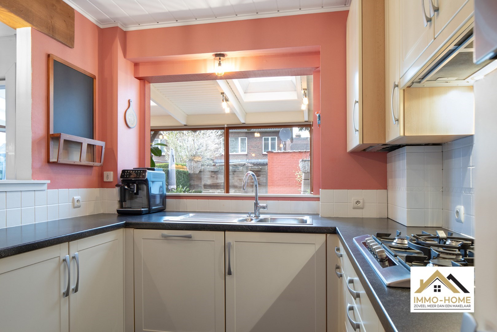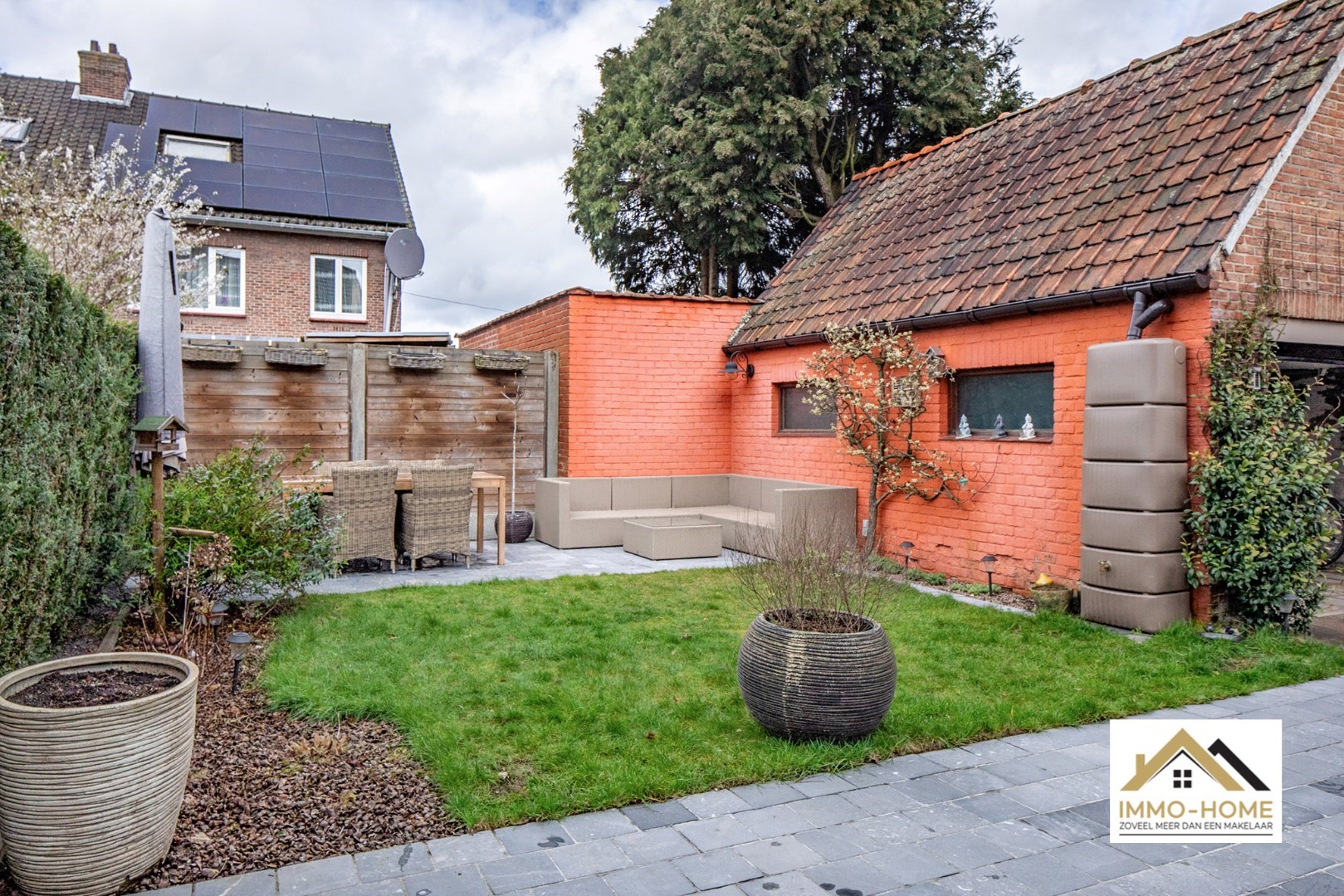 Schrijf u inGelegen in de randgemeente Sint-Amandsberg, nabij Gent, biedt deze halfopen bebouwing een aantrekkelijke woonomgeving. De woning bevindt zich in een prettige buurt, verrijkt met enkele buurtwinkels op korte afstand. Aan de voorzijde is een kleine tuin, met daarnaast een houten zijpoort met oprit die toegang biedt tot de tuin en garage, waardoor er ook parkeergelegenheid is naast de woning. Bij binnenkomst leidt de hal met een toilet naar de woonkamer, voorzien van een parketvloer en een decoratieve schouw die een huiselijke sfeer creëert. De aangrenzende eetkamer staat in verbinding met een praktische veranda, badend in natuurlijk licht dankzij grote vensterdeuren en een houten plafond met lichtkoepels. Vanuit de leefruimte heb je zicht op de keuken, uitgerust met een gasfornuis en een doorgeefruimte die uitkijkt op de veranda en waarlangs veel licht de keuken gezellig maakt. Een deur in de keuken geeft toegang tot een handige kelder. Op de eerste verdieping bevinden zich drie slaapkamers, waaronder een master bedroom met ingenieuze opbergruimte achter een valse wand, en een recent vernieuwde badkamer met een dubbele wastafel en een douchecabine met schuifdeur. De andere kamers zijn ruim en licht, en een extra kamer dient als aanvullende dressingruimte. Een uitschuiftrap leidt naar een ruime zolder, die extra bergruimte biedt. De tuin, met twee terrassen en een vrijstaande garage, nodigt uit tot ontspanning, zeker wanneer de zon schijnt. Het goed onderhouden gazon en de groene hagen zorgen voor een aangename buitenruimte. Dit huis met zonnepanelen combineert praktisch wooncomfort met de charme van een gezellige en goed gelegen woonomgeving. Inschrijvingen via mail naar tommy@immo-home.be, geen telefonische inschrijvingen! Volg ons op Fb en insta. Voor meer info: www.immo-home.be GRATIS SCHATTING GRATIS FINANCIEEL ADVIES